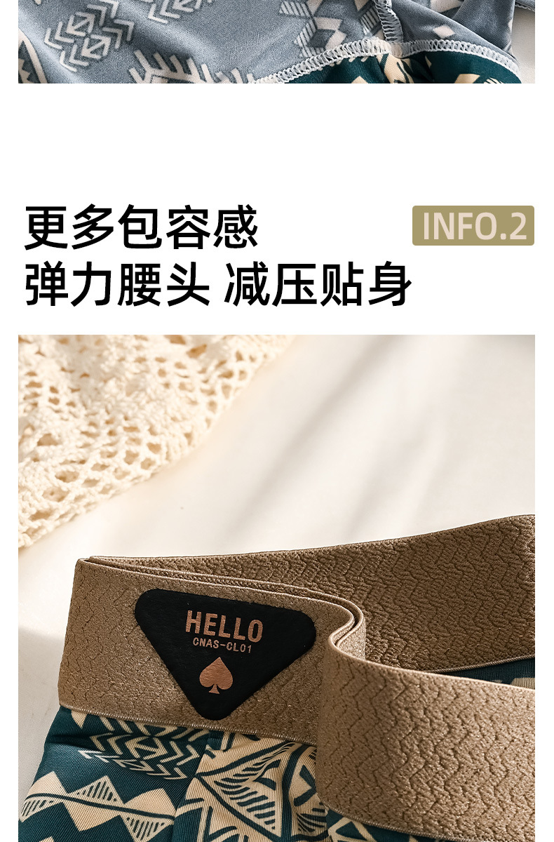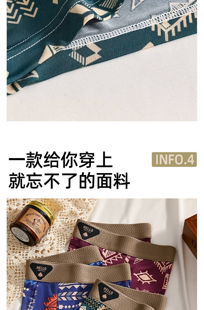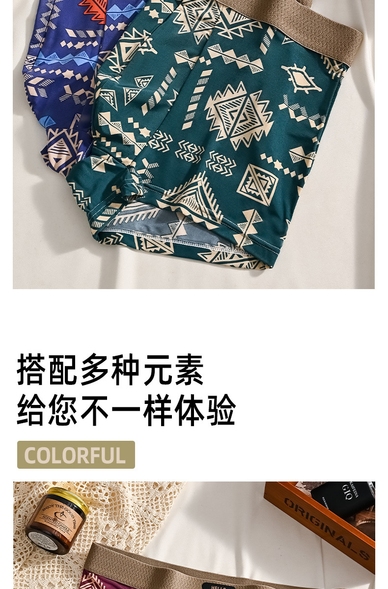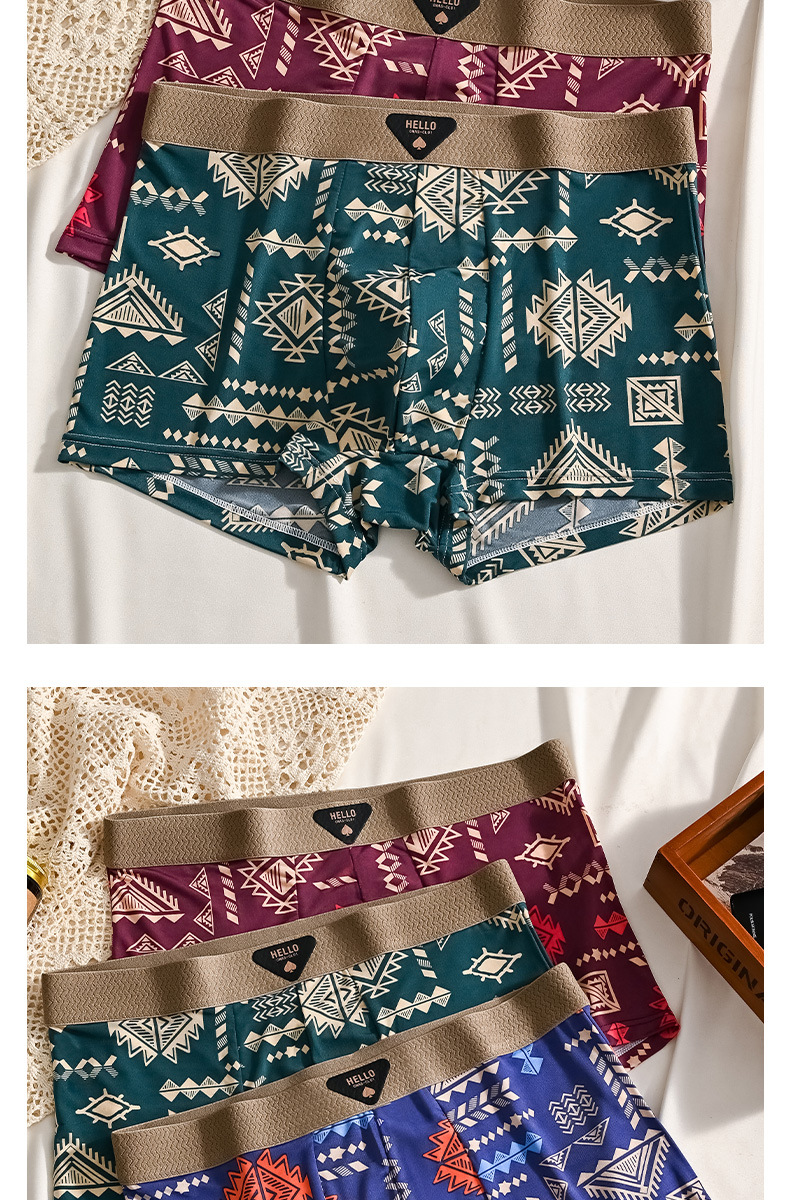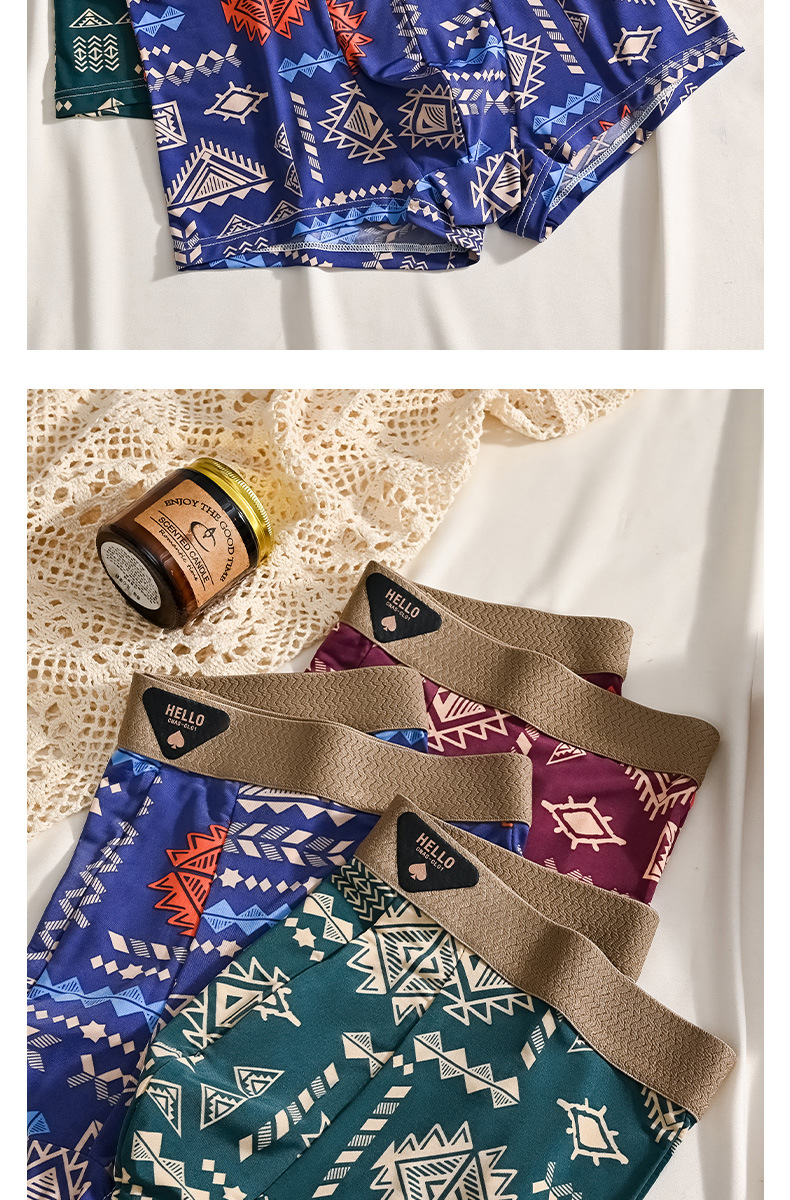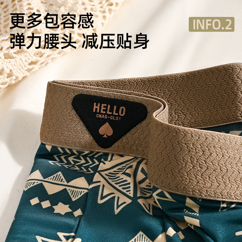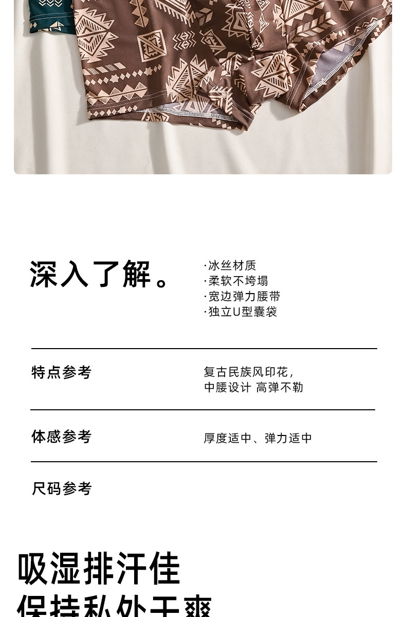 Мужское нижнее белье из ледяного шелка, спортивное молодежное тонкое дышащее летнее легкое и среднее талии, крутой большой размер, этнический стиль с принтом
