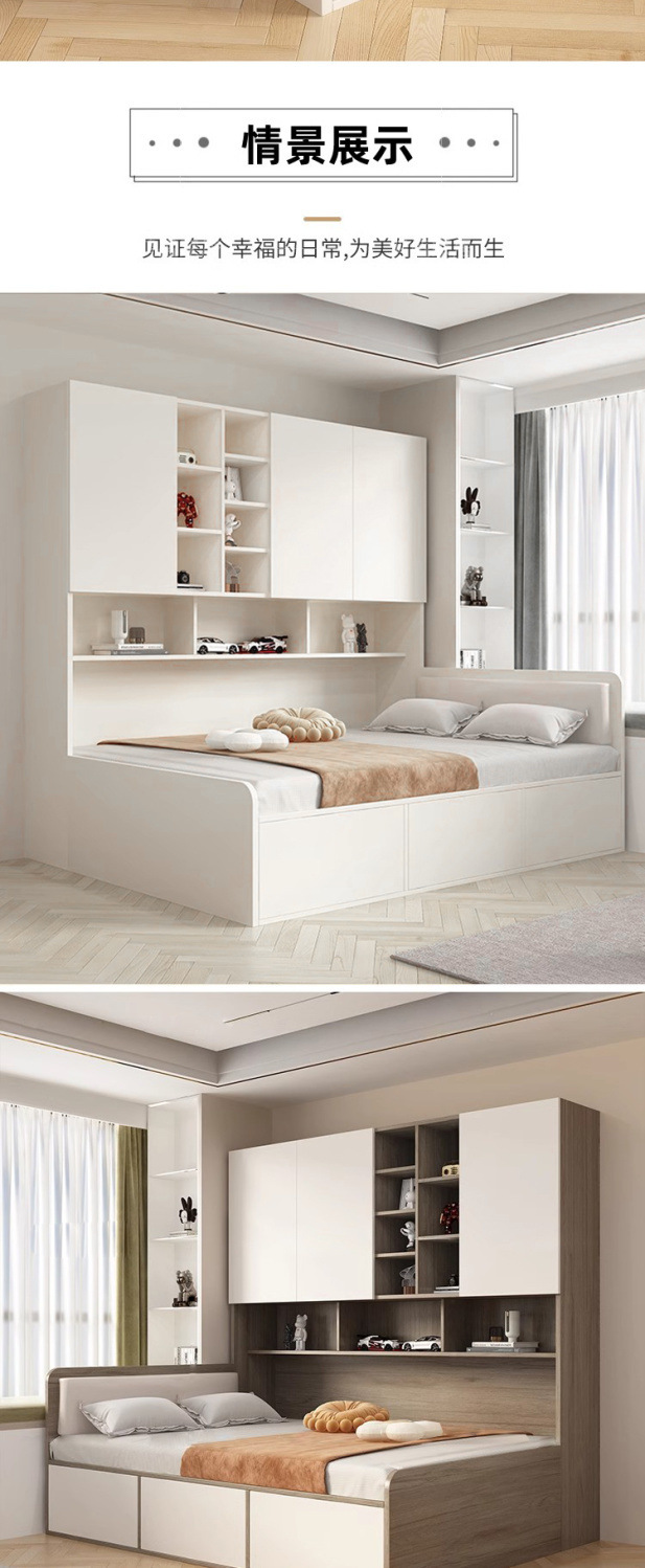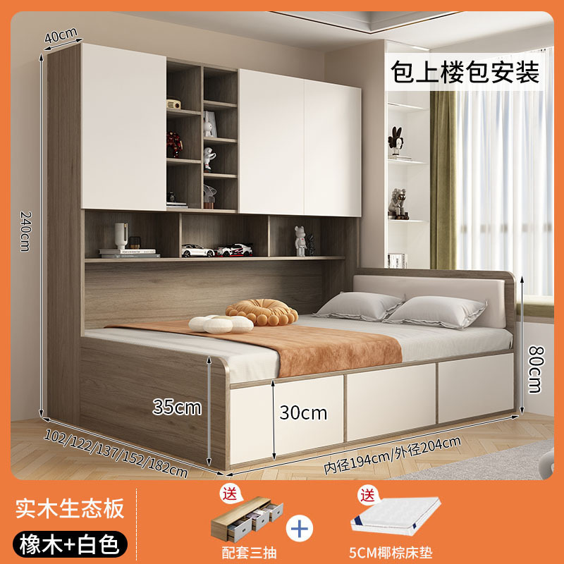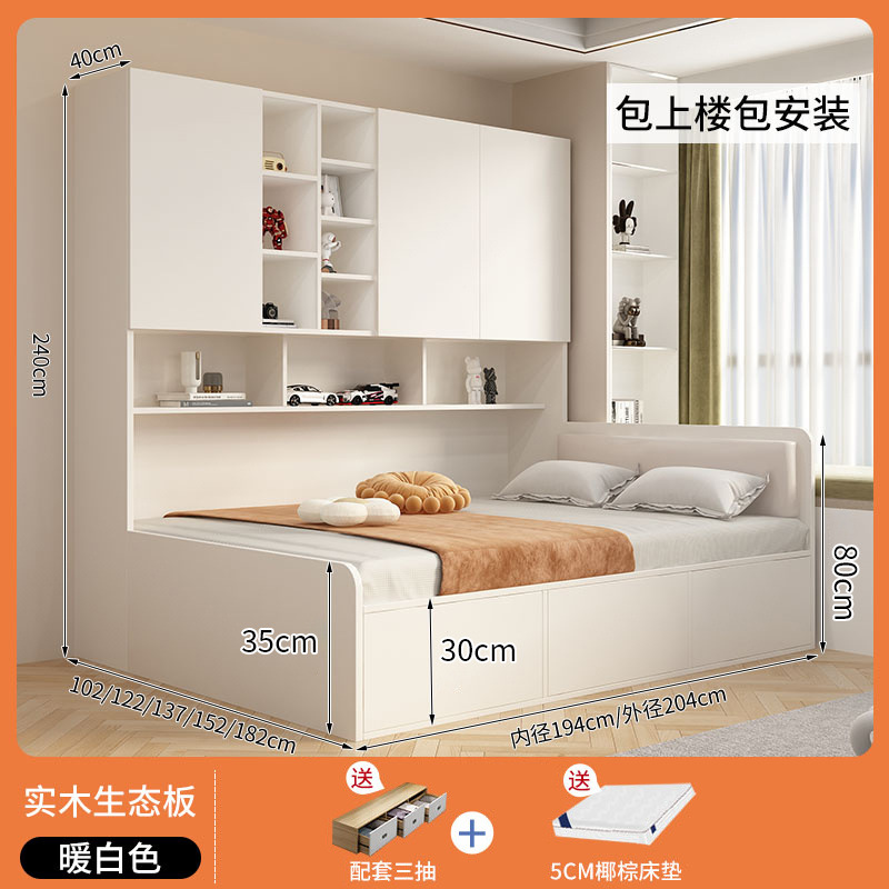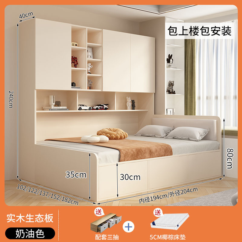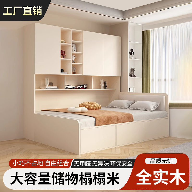 Кровать-татами с интегрированным шкафом, многофункциональная комбинированная кровать для малогабаритной квартиры, домашняя спальня, кремовый стиль, кровать из массива дерева