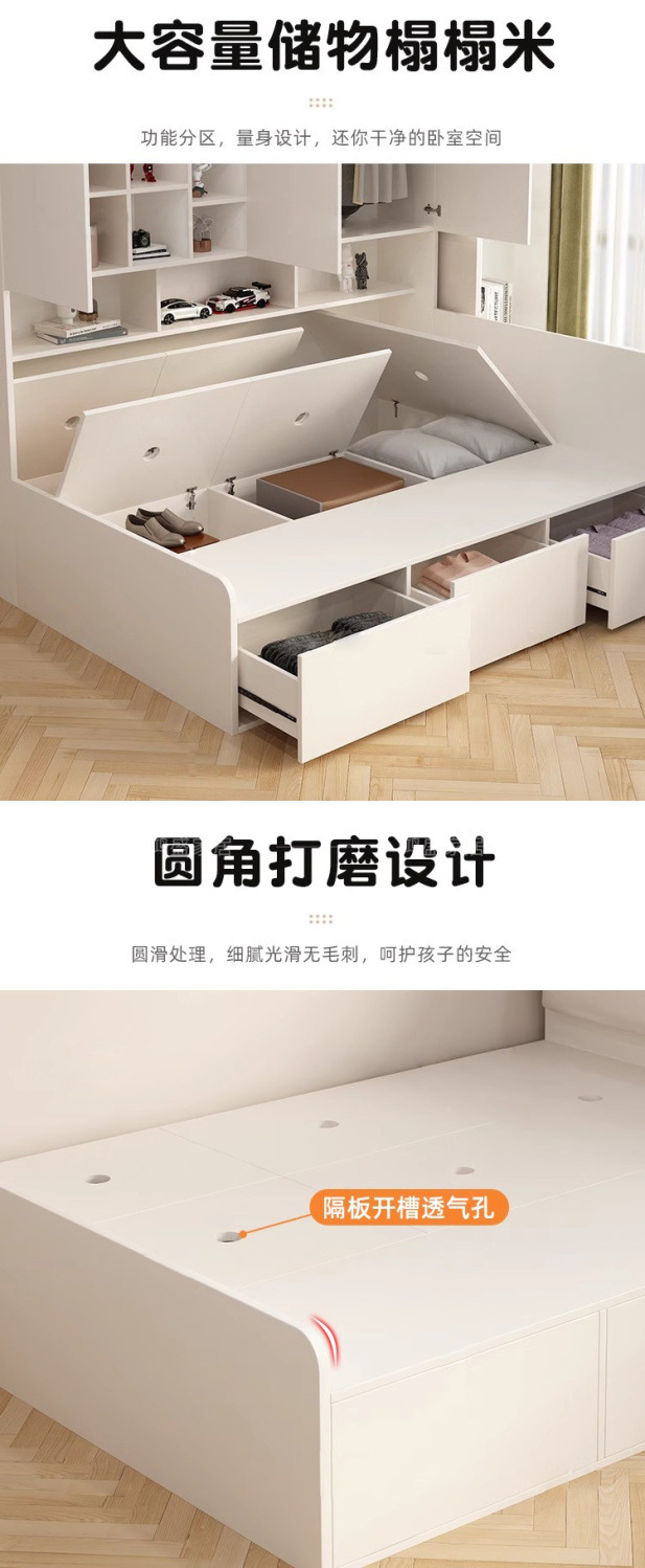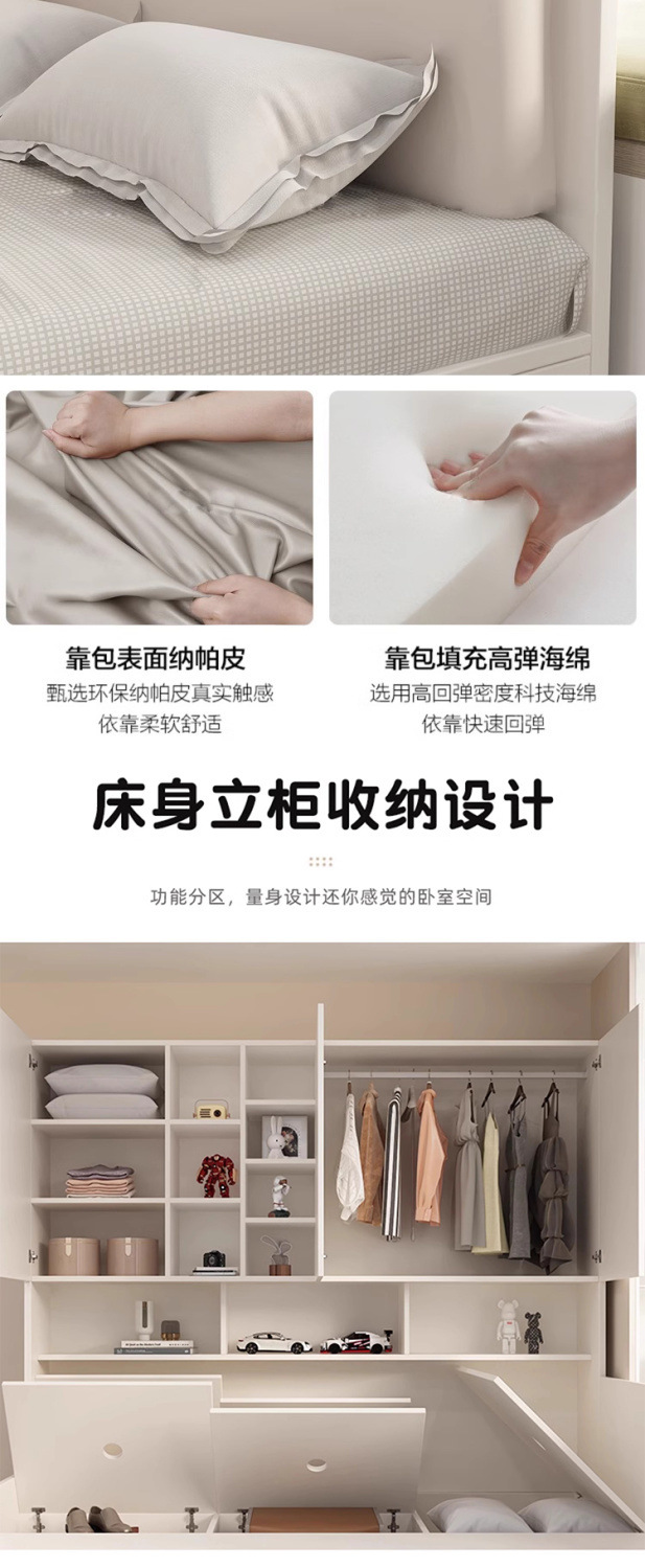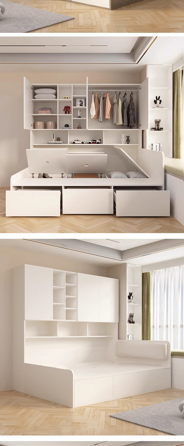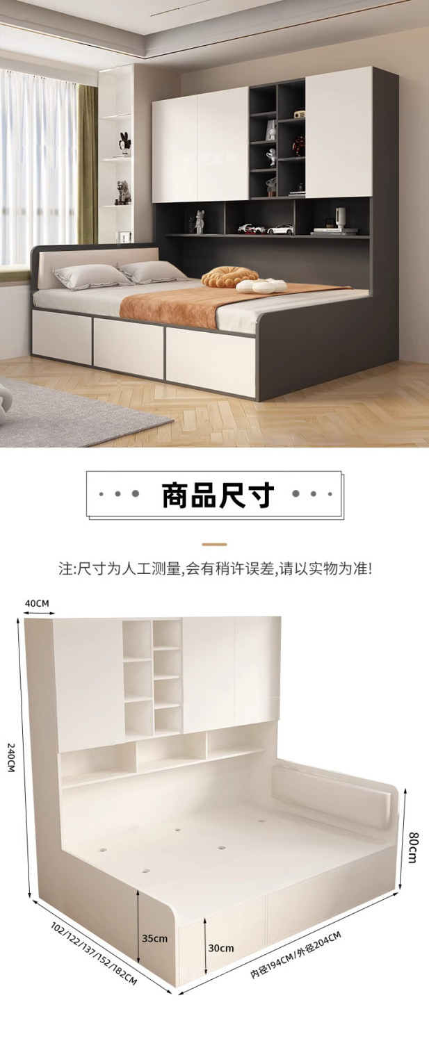Кровать-татами с интегрированным шкафом, многофункциональная комбинированная кровать для малогабаритной квартиры, домашняя спальня, кремовый стиль, кровать из массива дерева