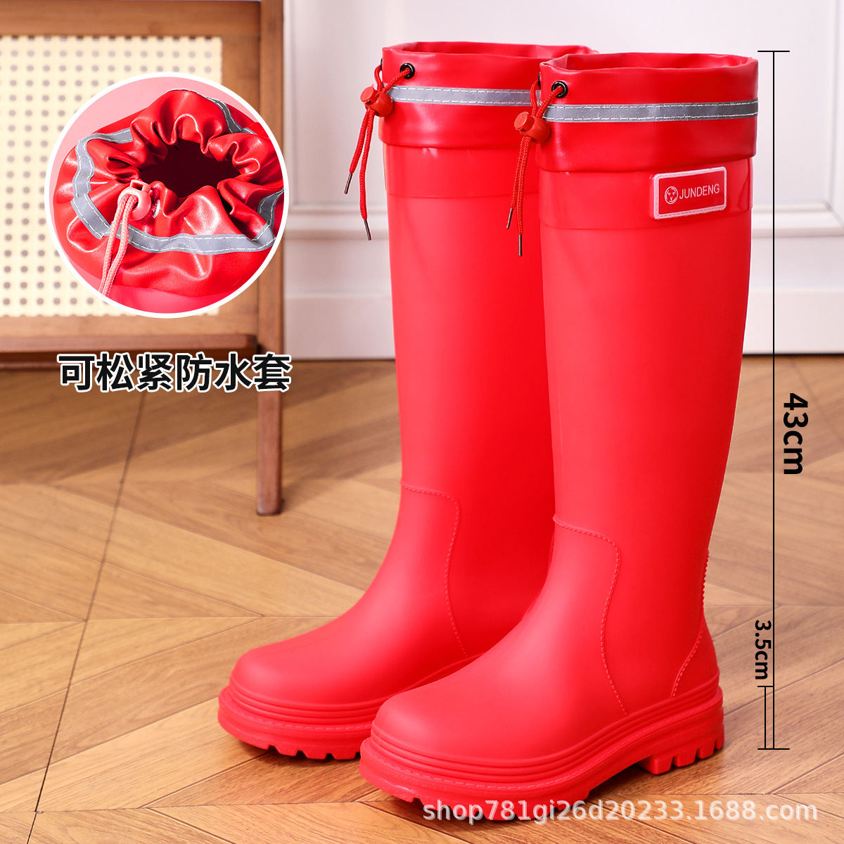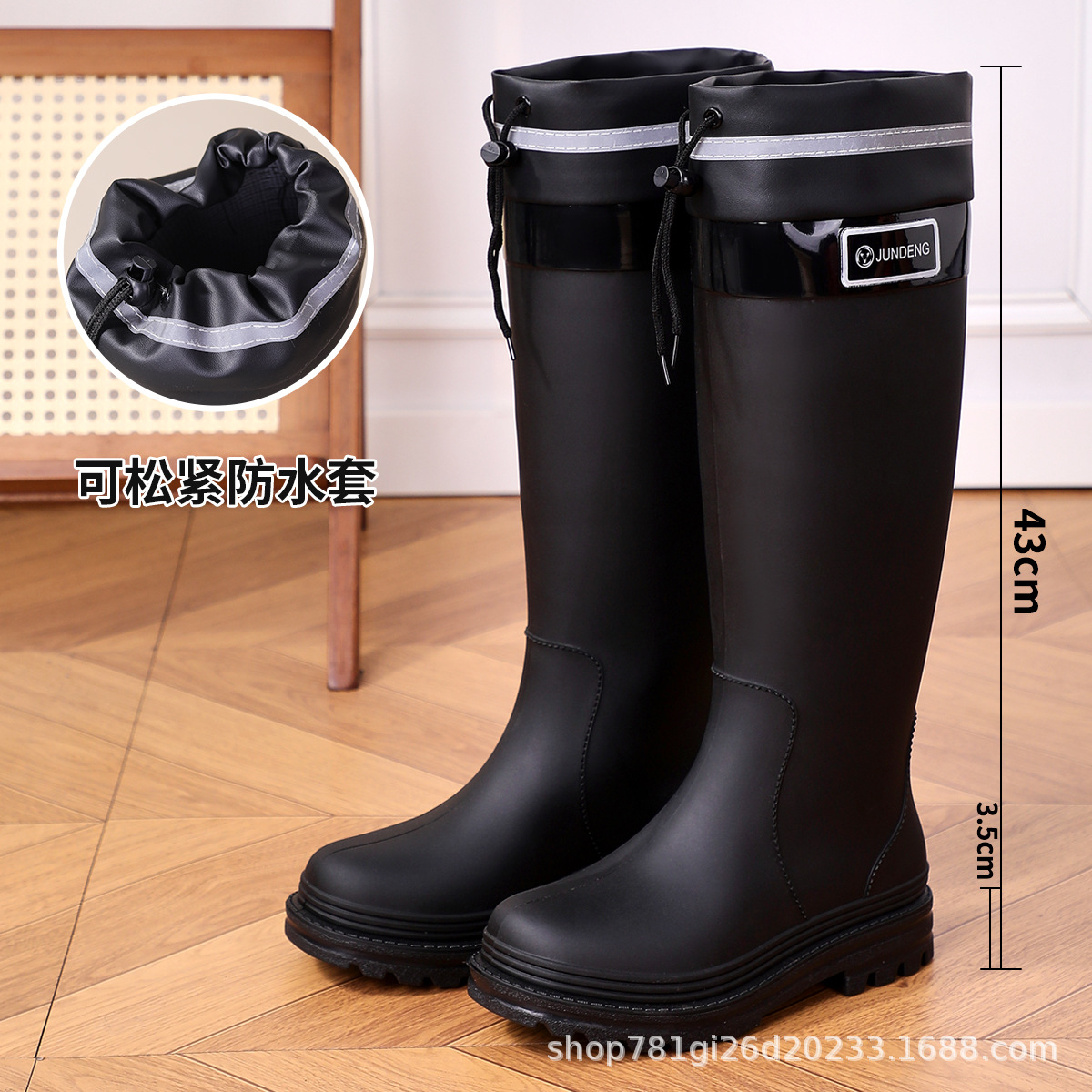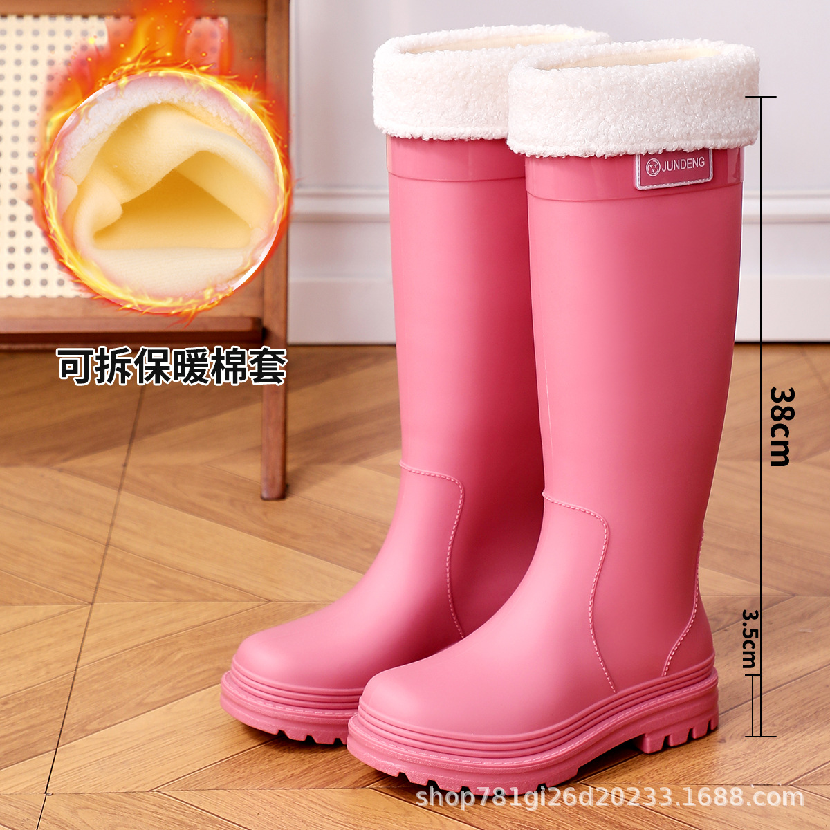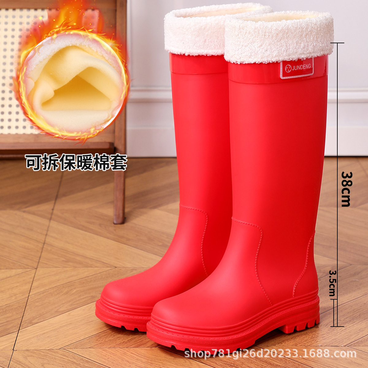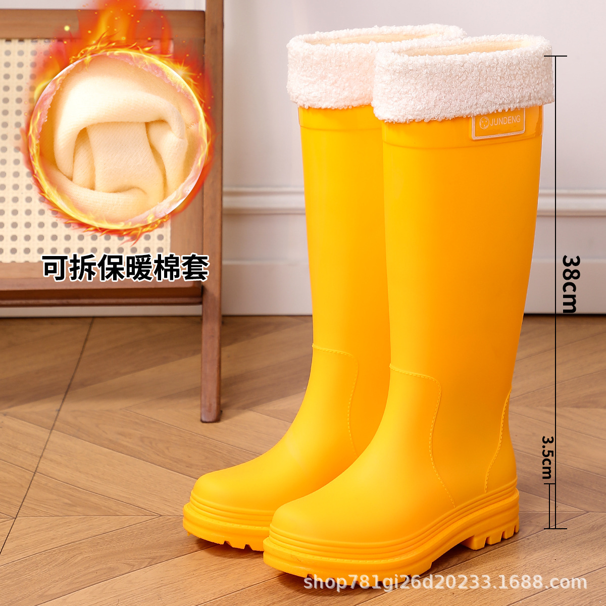 Женские высокие резиновые сапоги, резиновые сапоги выше колена для взрослых 38cm года, водонепроницаемые, нескользящие, модные резиновые туфли наружной обработки, водные туфли с бархатом для мужчин.