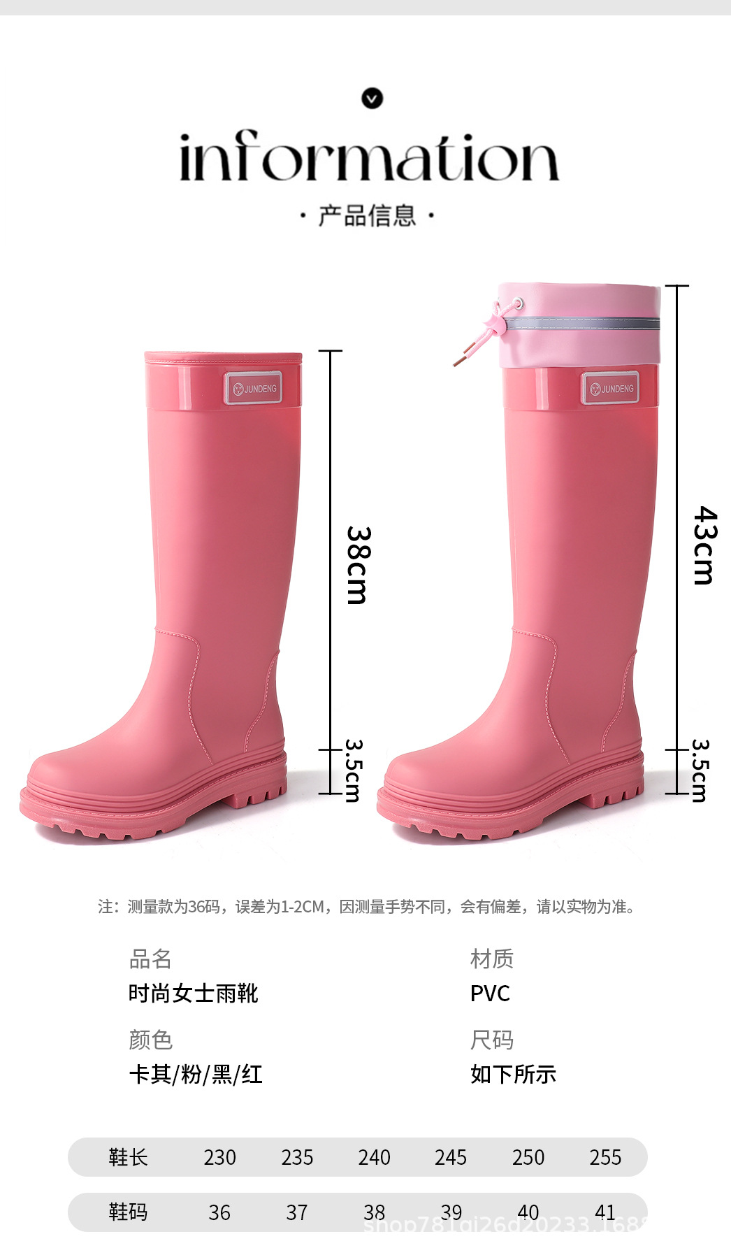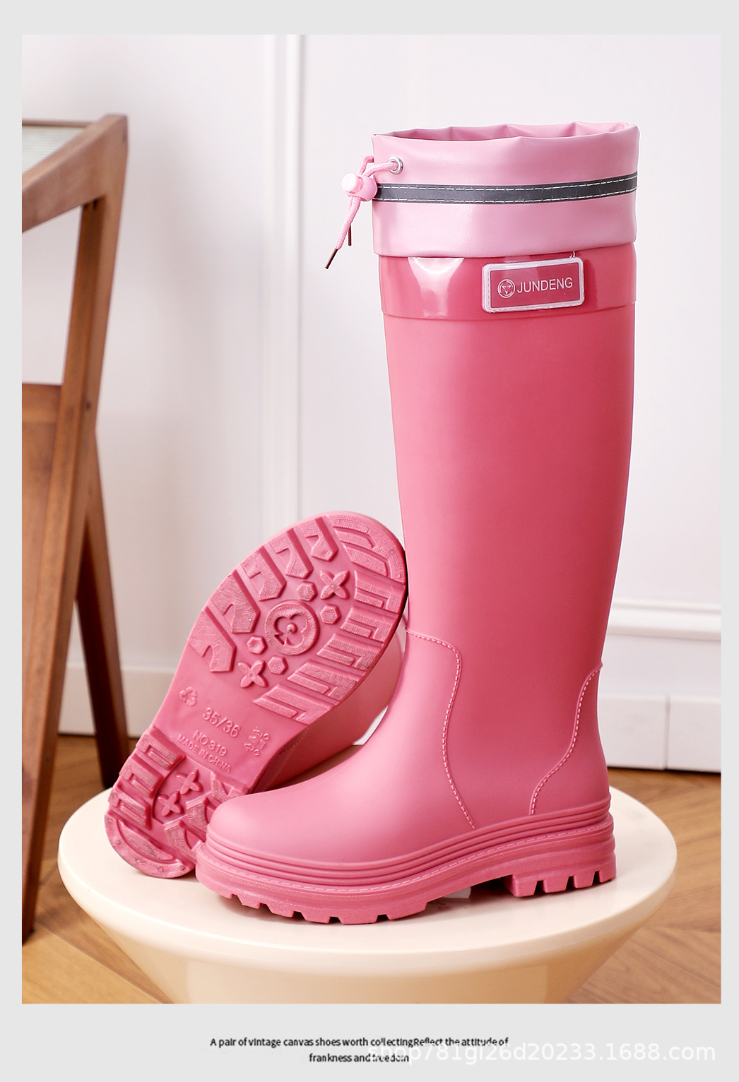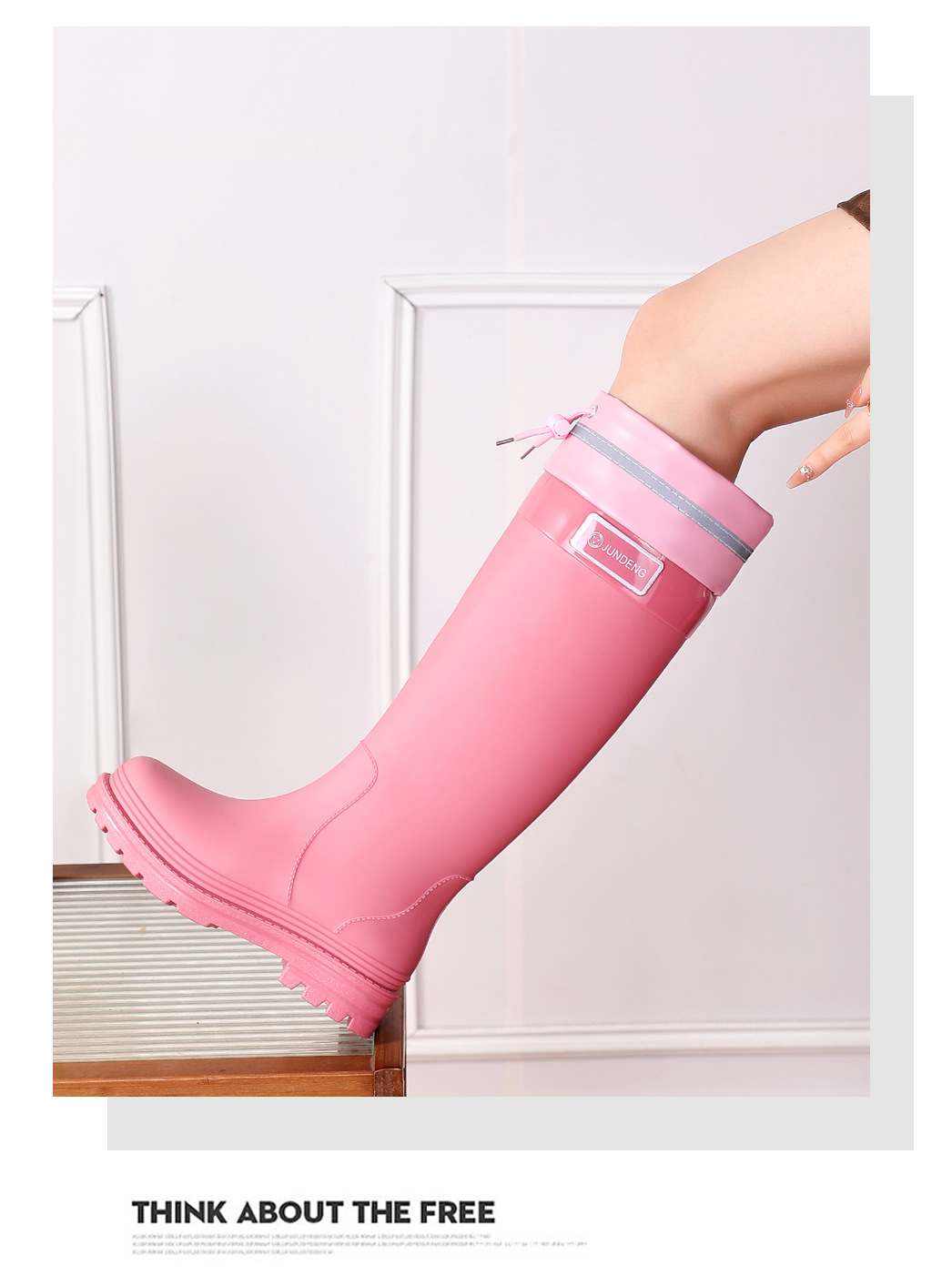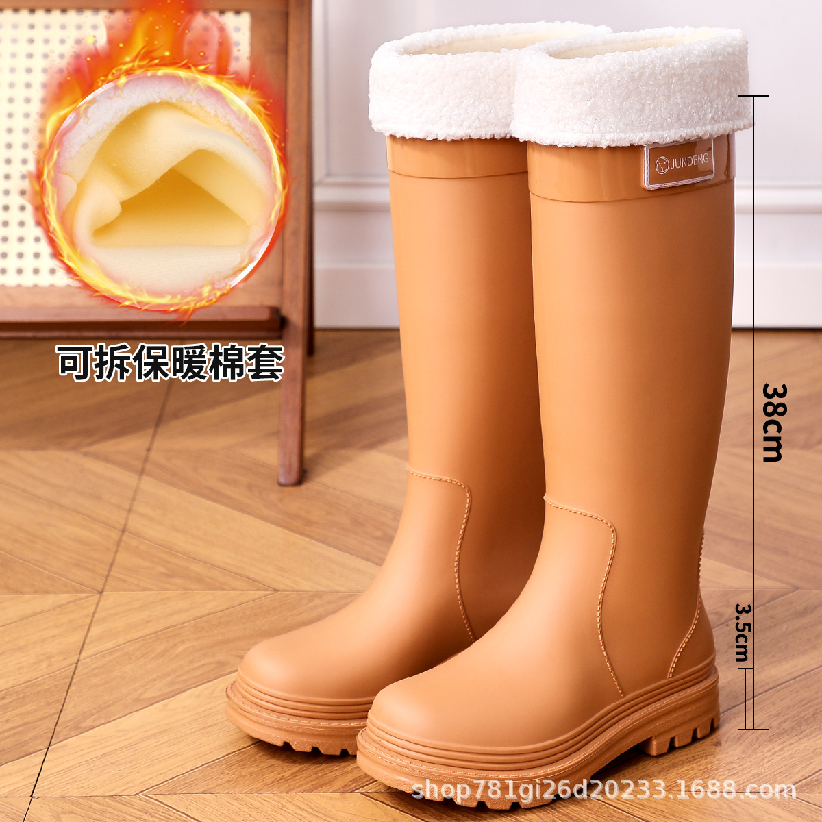Женские высокие резиновые сапоги, резиновые сапоги выше колена для взрослых 38cm года, водонепроницаемые, нескользящие, модные резиновые туфли наружной обработки, водные туфли с бархатом для мужчин.
