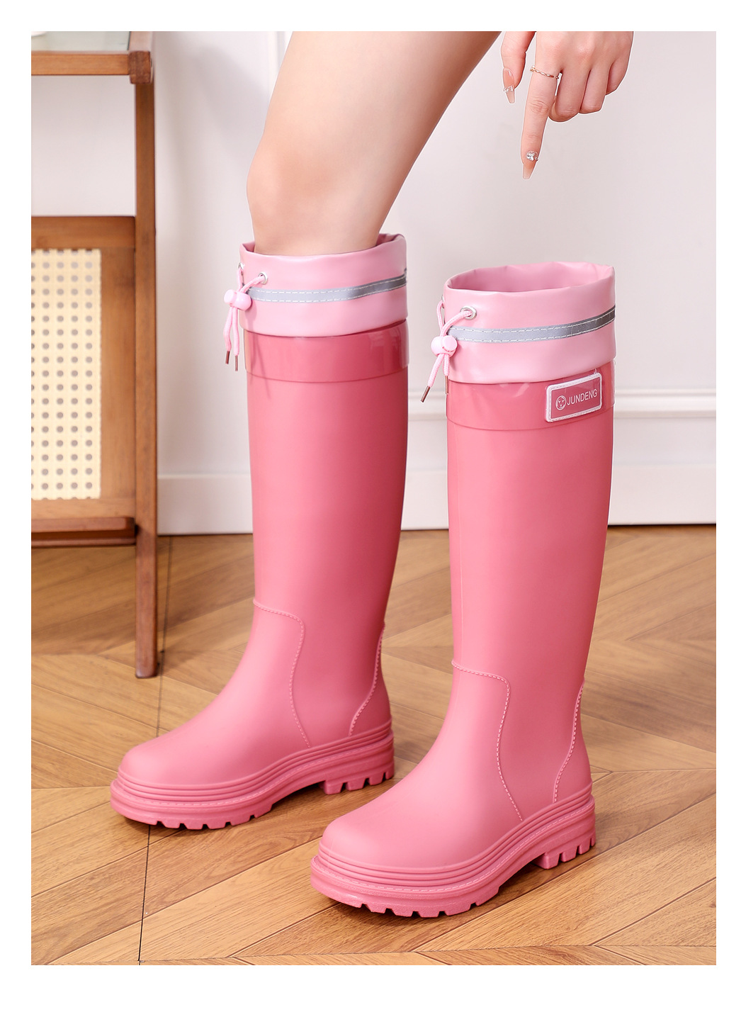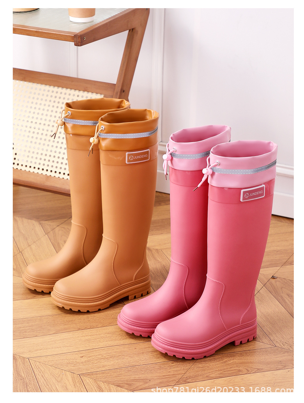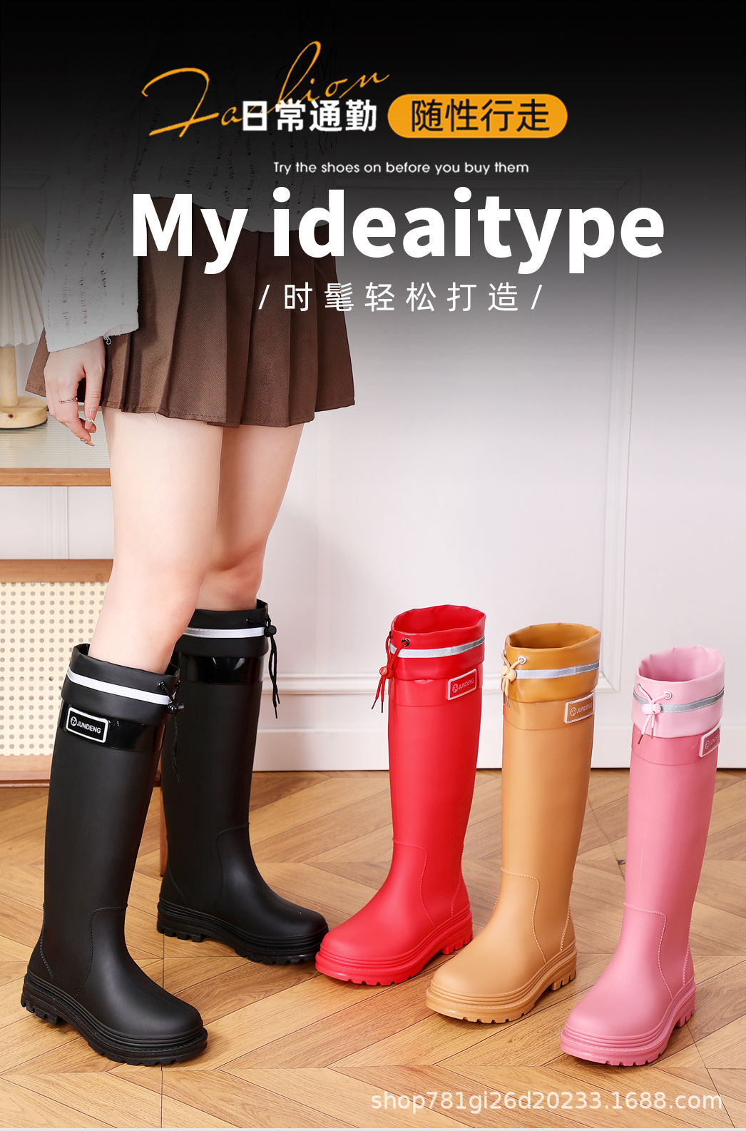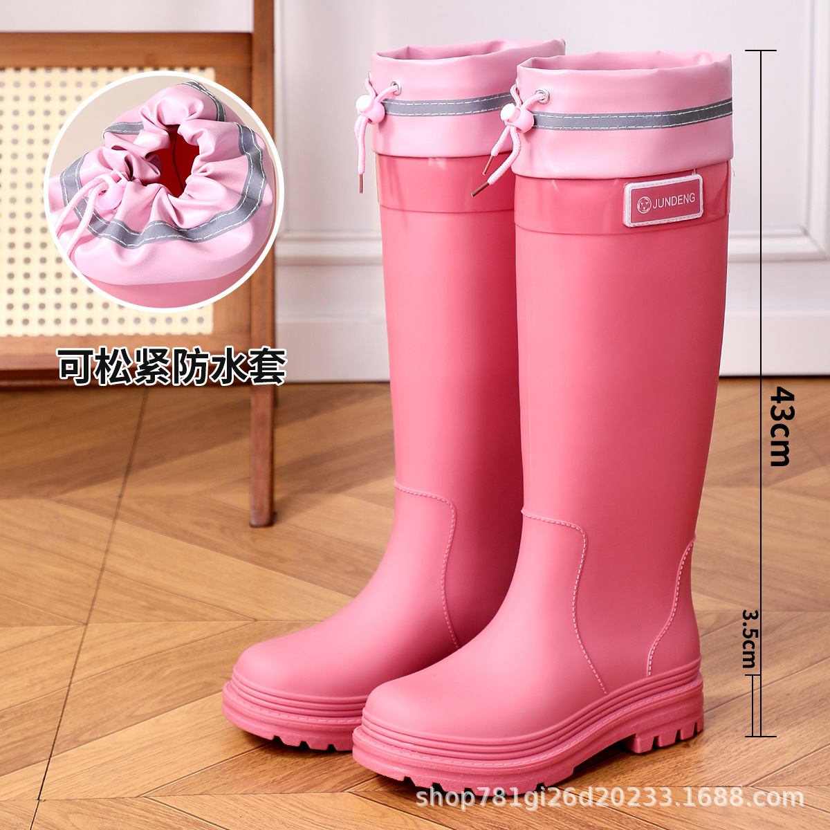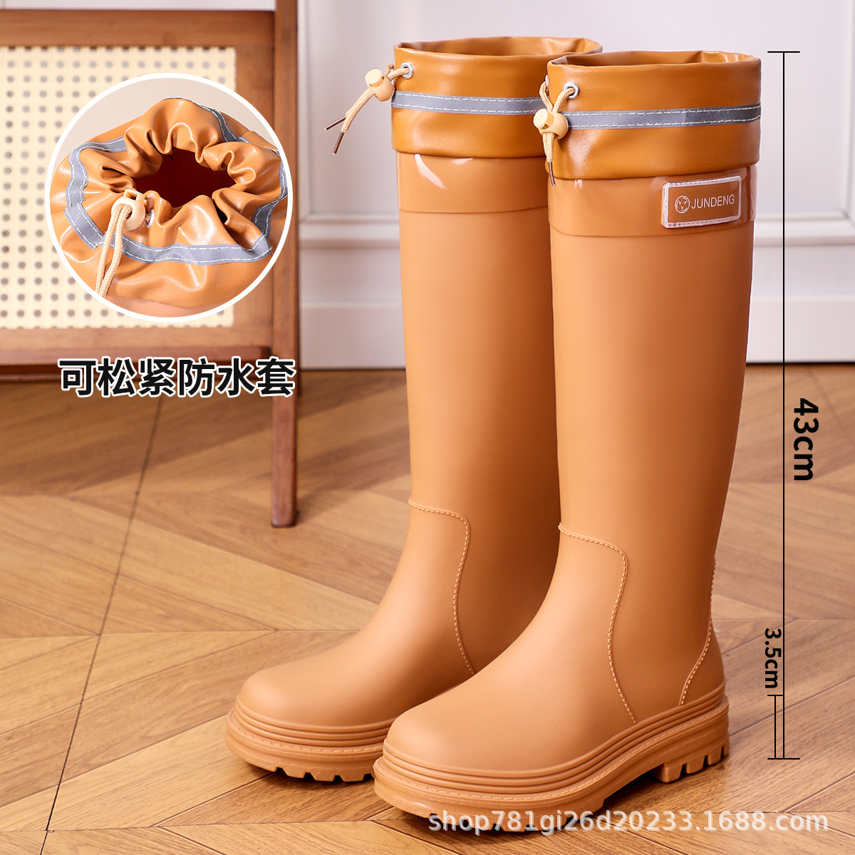 Женские высокие резиновые сапоги, резиновые сапоги выше колена для взрослых 38cm года, водонепроницаемые, нескользящие, модные резиновые туфли наружной обработки, водные туфли с бархатом для мужчин.