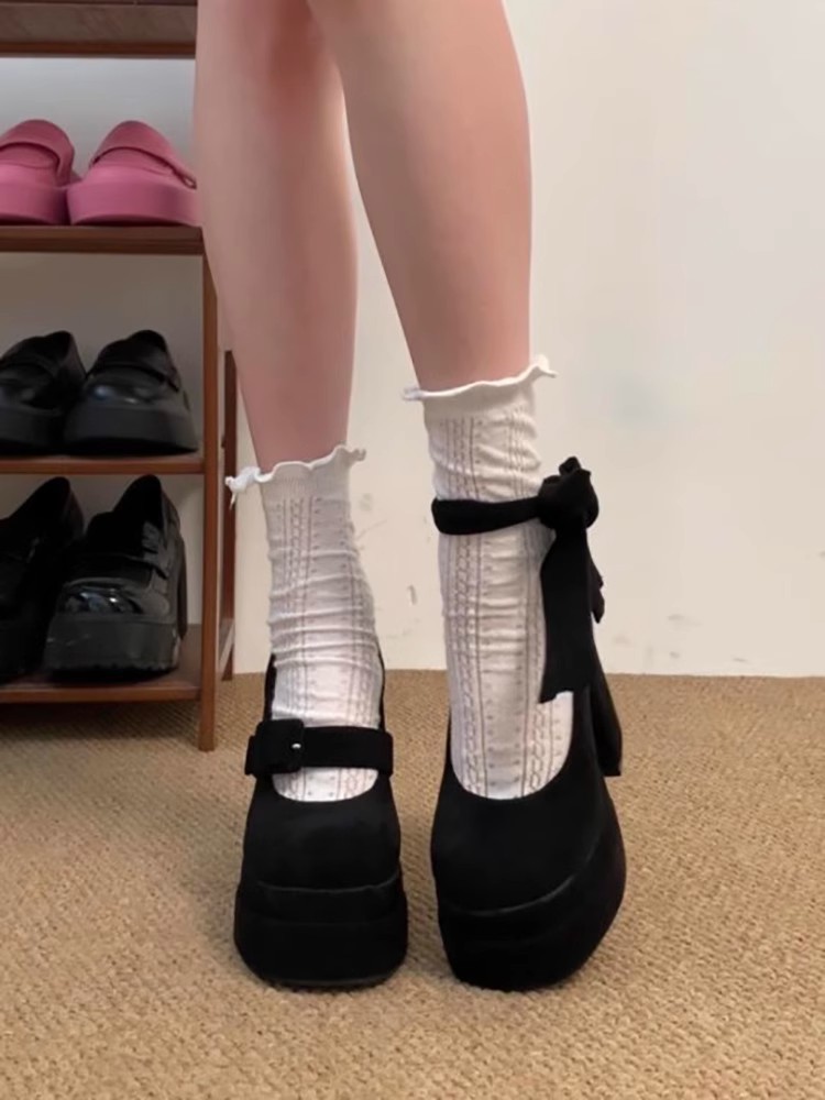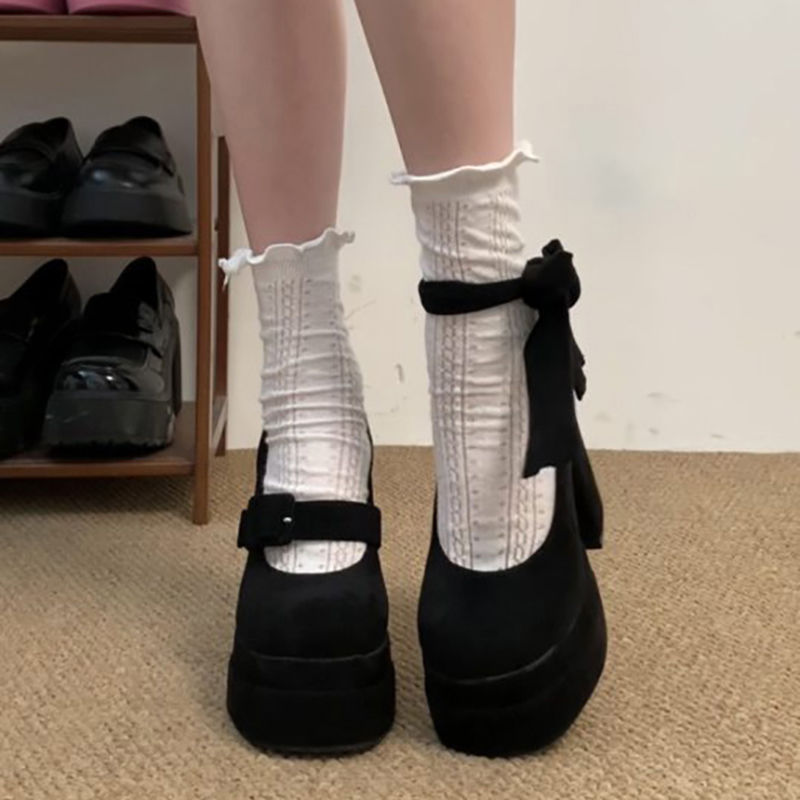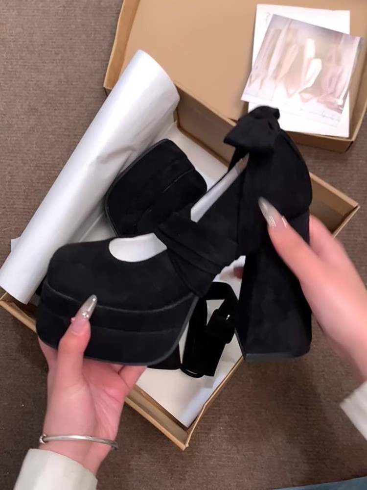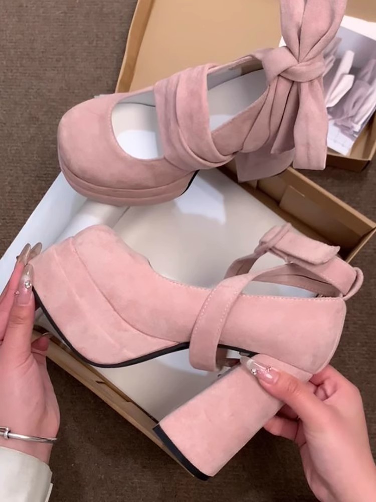 Туфли Мэри Джейн из замши на одной кнопке, весна 2025, новые, на толстом каблуке, с французскими перекрестными ремешками, водонепроницаемые, на платформе, высокие каблуки