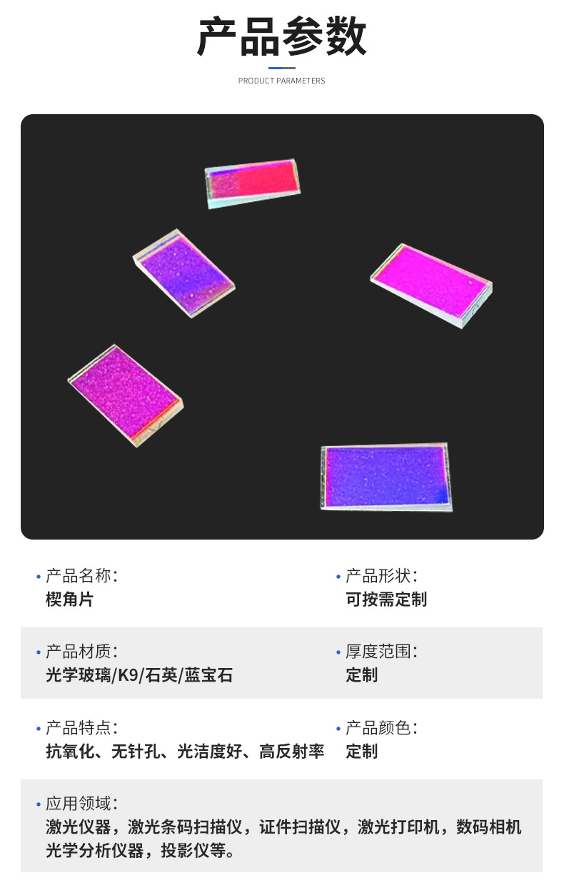 Угловой кусок клина, оригинальные компоненты оптической системы, продающиеся напрямую с завода, в форме наклонной призмы для управления направлением оптического пути, оптическое стекло