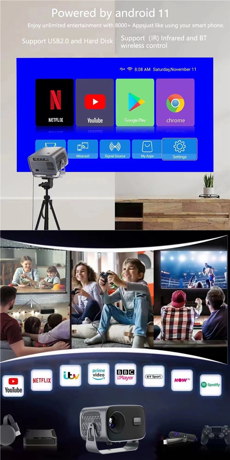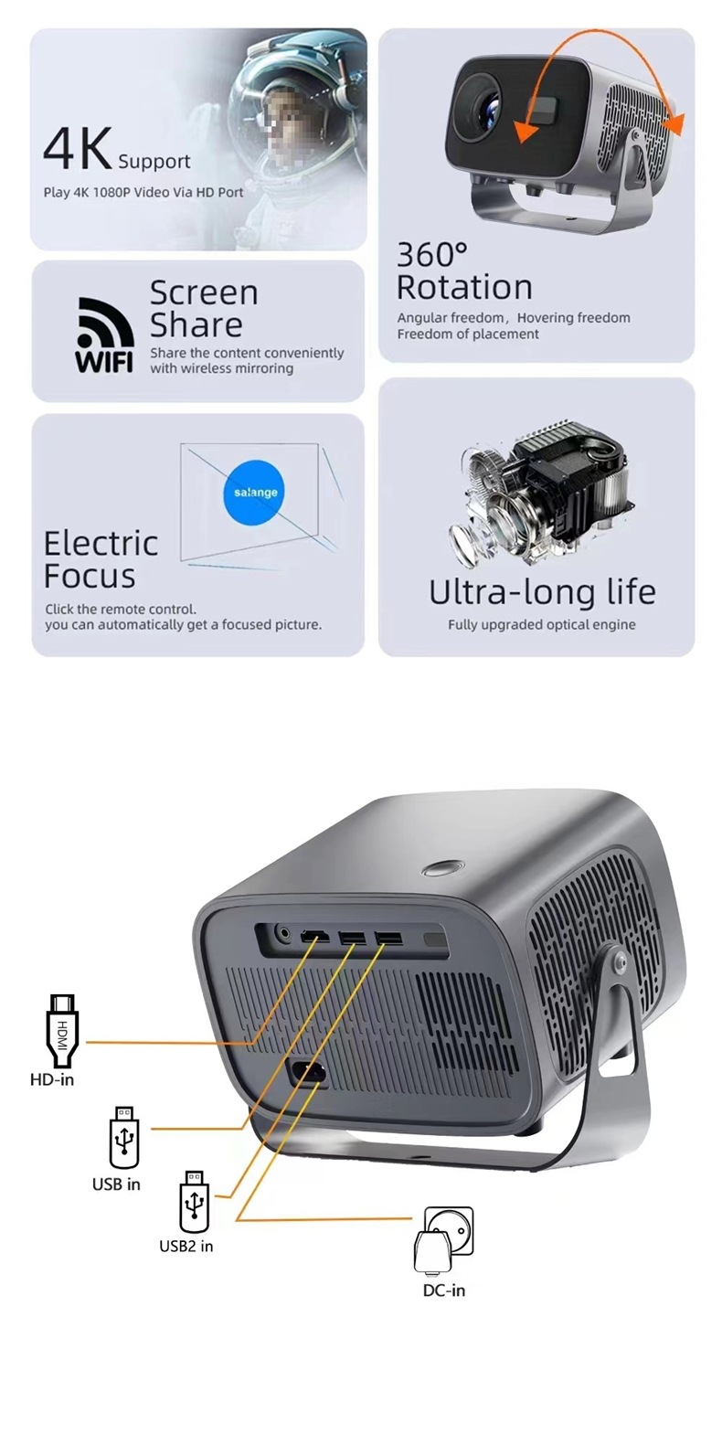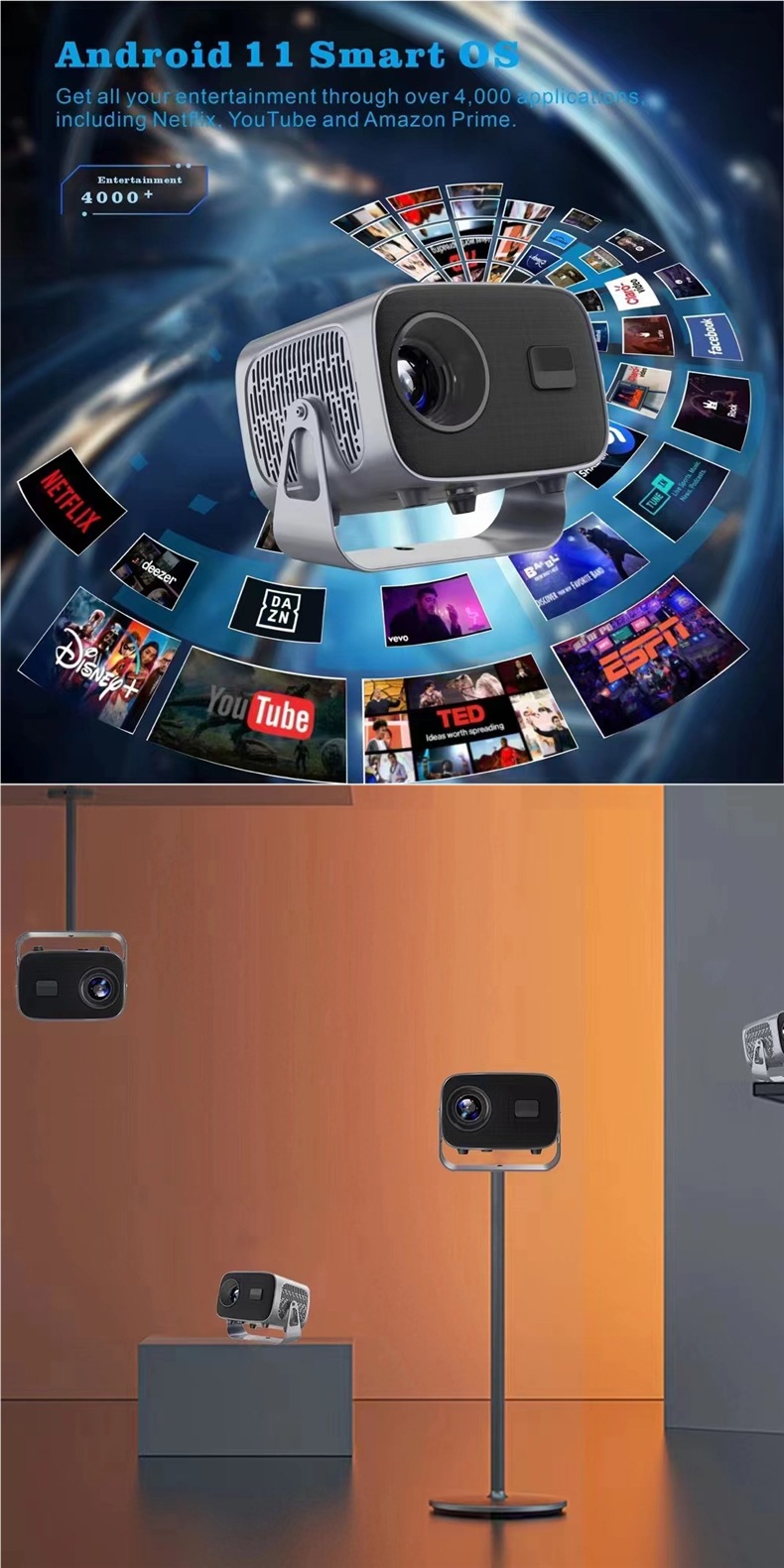 PTZ-проектор Android-система проектор домашний портативный проектор белая стена HD проектор автоматическая трапеция