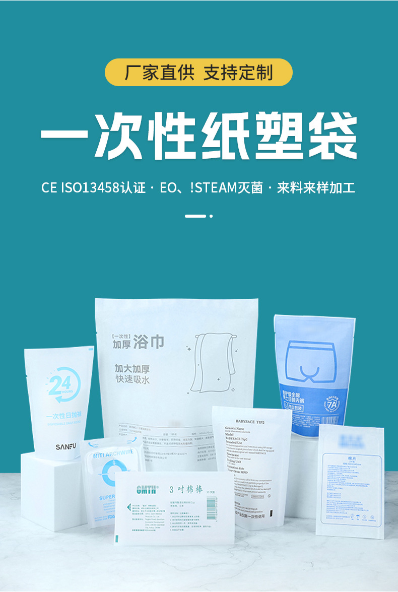 Бумажный пластиковый пакет на заказ OEM одноразовый упаковочный пакет для банных полотенец этиленоксид высокотемпературная и высоконапорная стерилизация герметичный пакет OEM