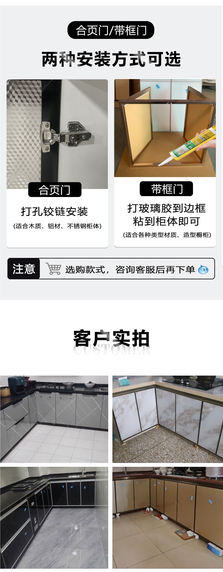 Дверная панель кухонного шкафа с рамкой из закаленного стекла, кристаллическая стальная дверь, встроенная дверь шкафа из алюминиевого сплава, самостоятельная установка