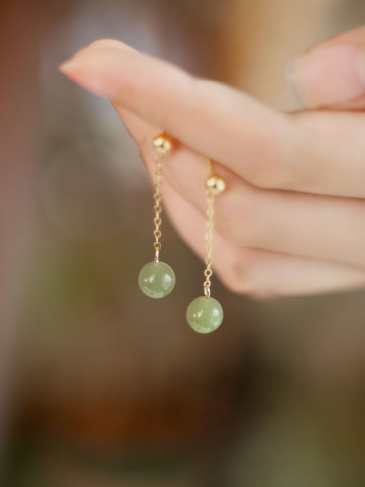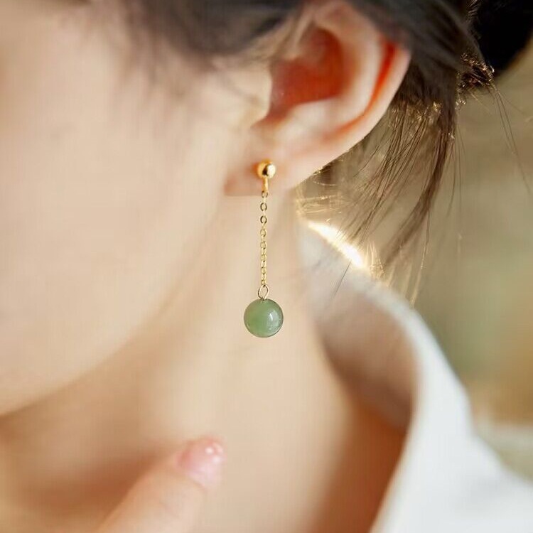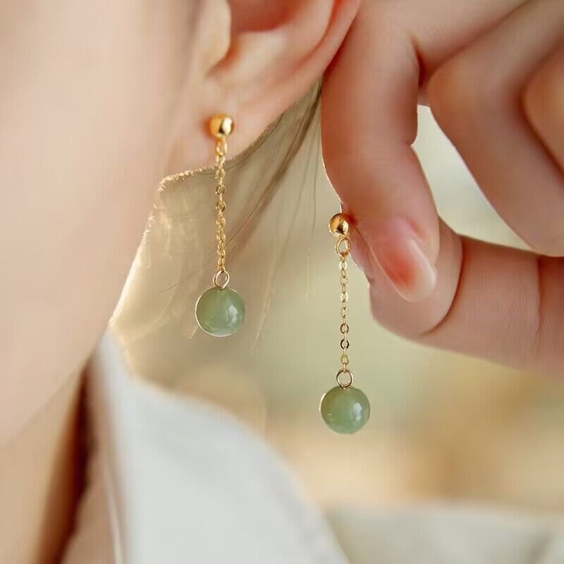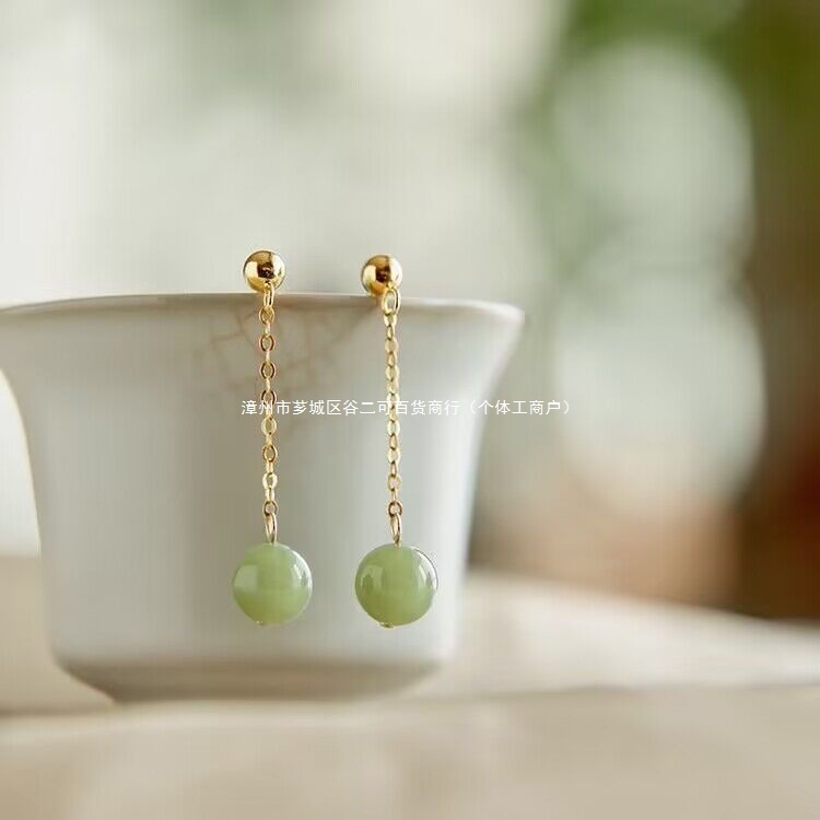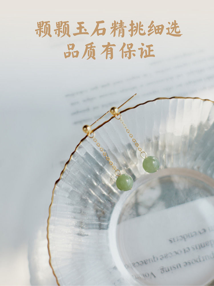 Популярные интернет-знаменитости, серьги из нефрита Хэтиан, женские серьги из прозрачного зеленого нефрита, нишевый дизайн, высококачественные ретро-серьги для женщин