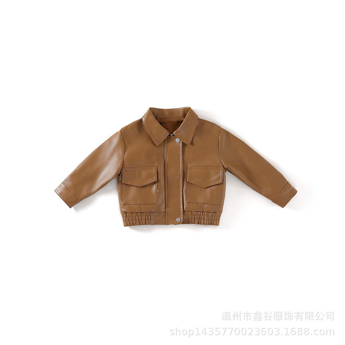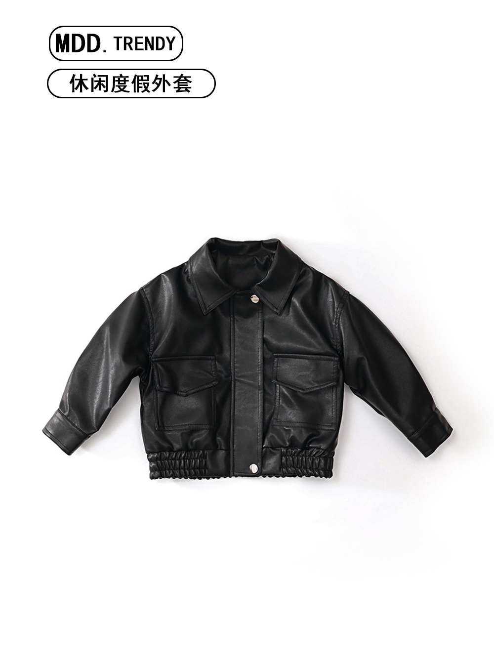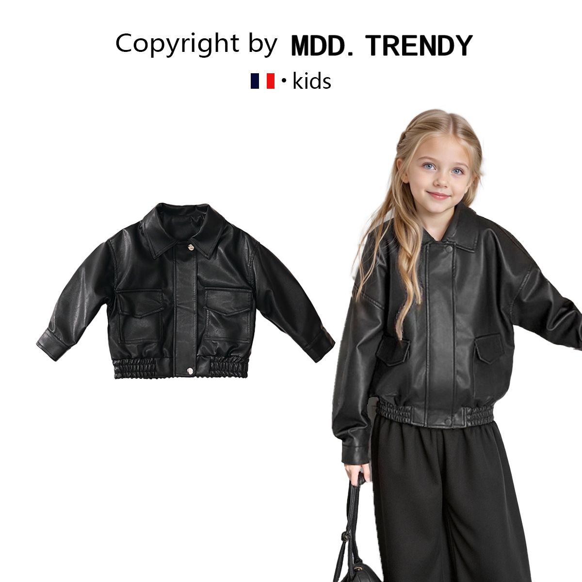 Детская кожаная куртка MDD, весна-осень 2025, однотонная кожаная куртка с лацканами для мальчиков и девочек, мотоциклетная куртка в корейском стиле для мальчиков