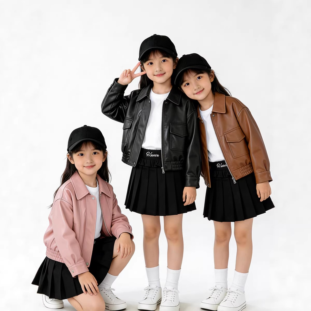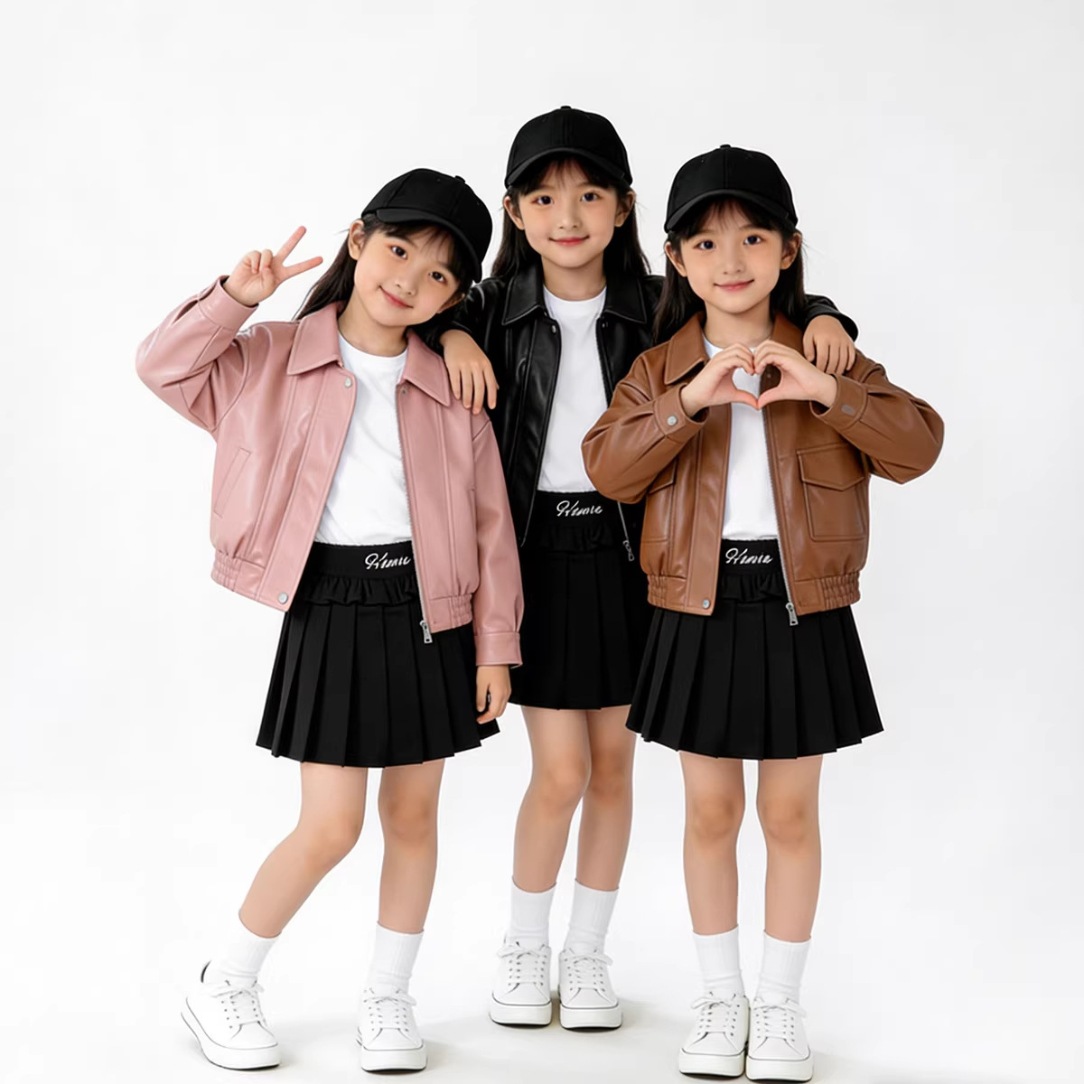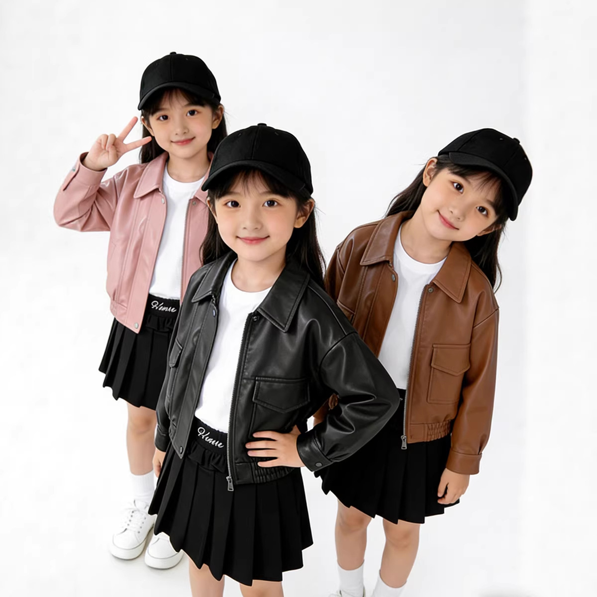 Детская кожаная куртка MDD, весна-осень 2025, однотонная кожаная куртка с лацканами для мальчиков и девочек, мотоциклетная куртка в корейском стиле для мальчиков