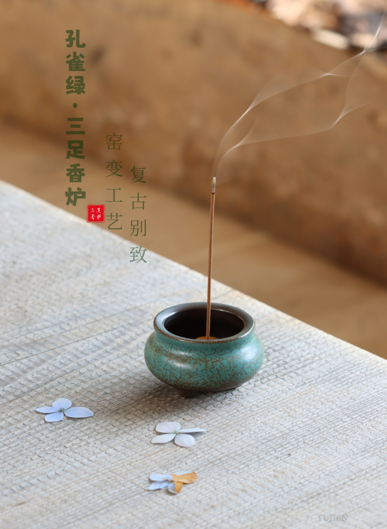 Ретро японская курильница дзен ручной работы, тигельная бирюзово-зеленая глазурованная керамика, маленькая трехногая вставка для благовоний, бытовые украшения для благовоний