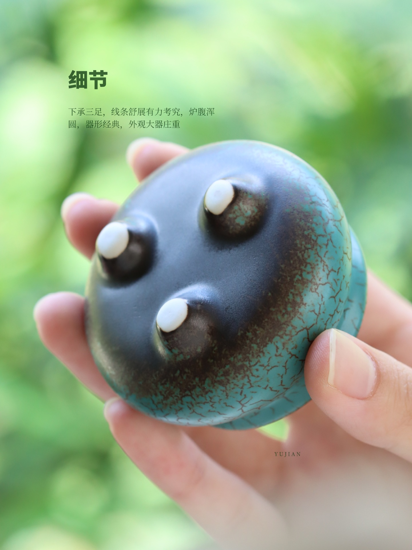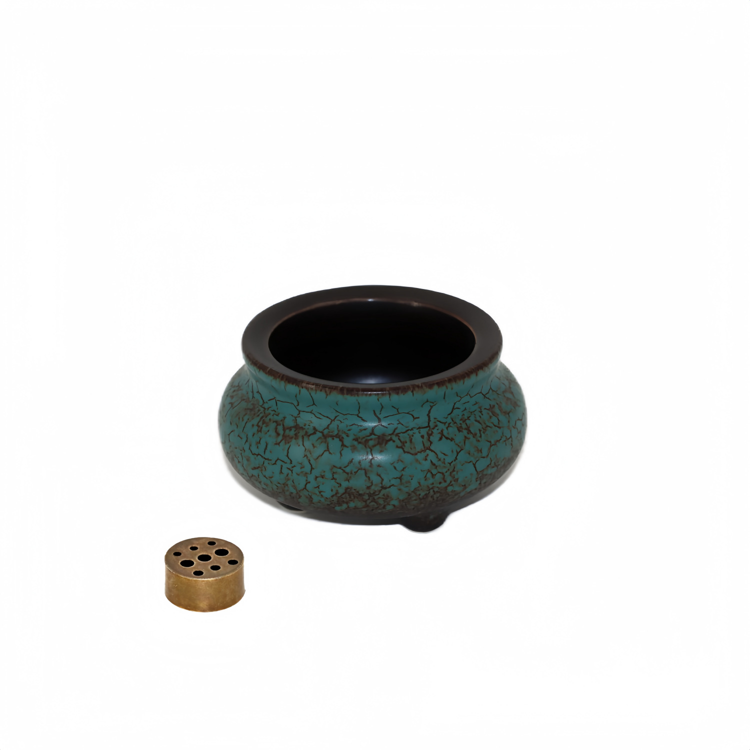 Три-legged курильница из бирюзы, вывернутая в печи