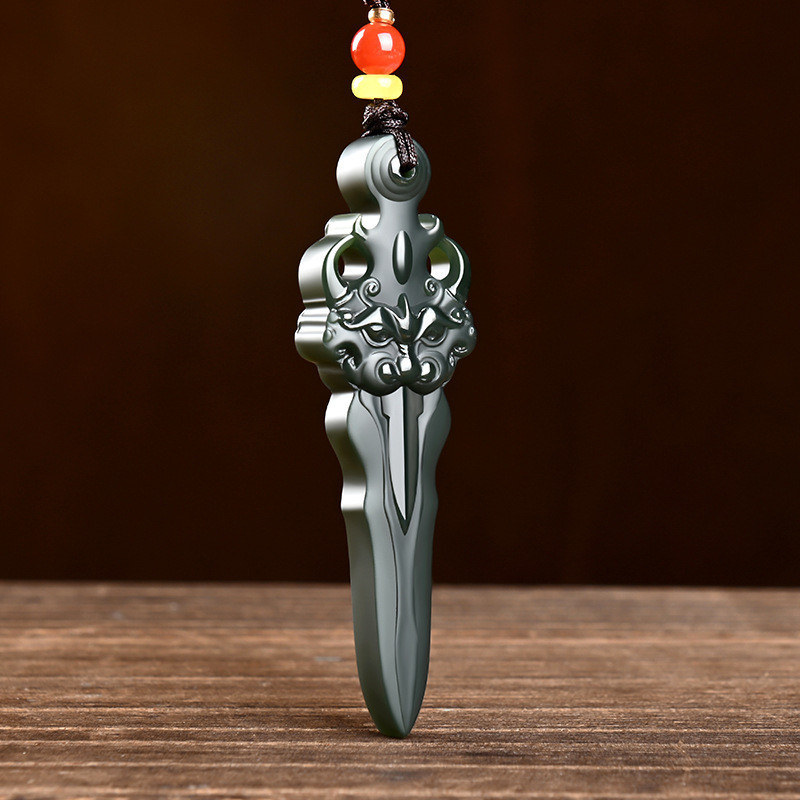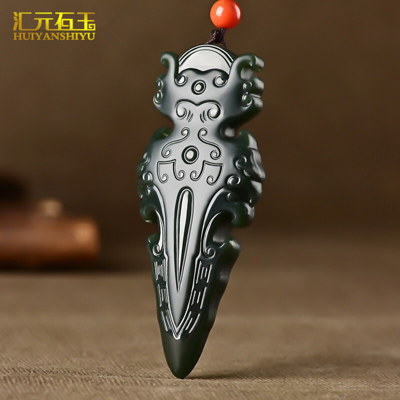 Подвеска из нефрита Хэтиан Синьцзян, меч с звериной мордой, изысканный материал, сапфир, талисман на год рождения, нефритовая подвеска, быстрая доставка, источник