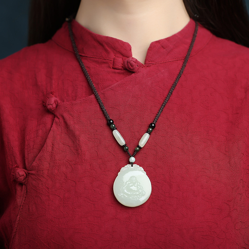 Подвеска Будды Майтрейи из нефрита Хэтиань Синьцзян, смущающий Будда Гуаньинь, нефритовый Будда, нефритовый кулон, мужское ожерелье, женский нефритовый кулон