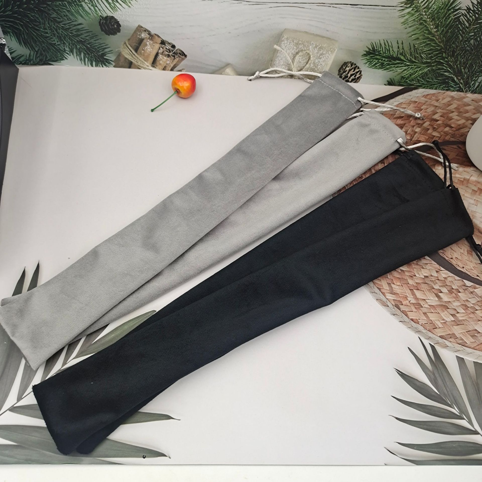 Изготовленная на заказ бархатная сумка на шнурке для инструмента рекордера, модной палки для селфи, щипцов для завивки волос, зеркала, сумки для хранения помады.