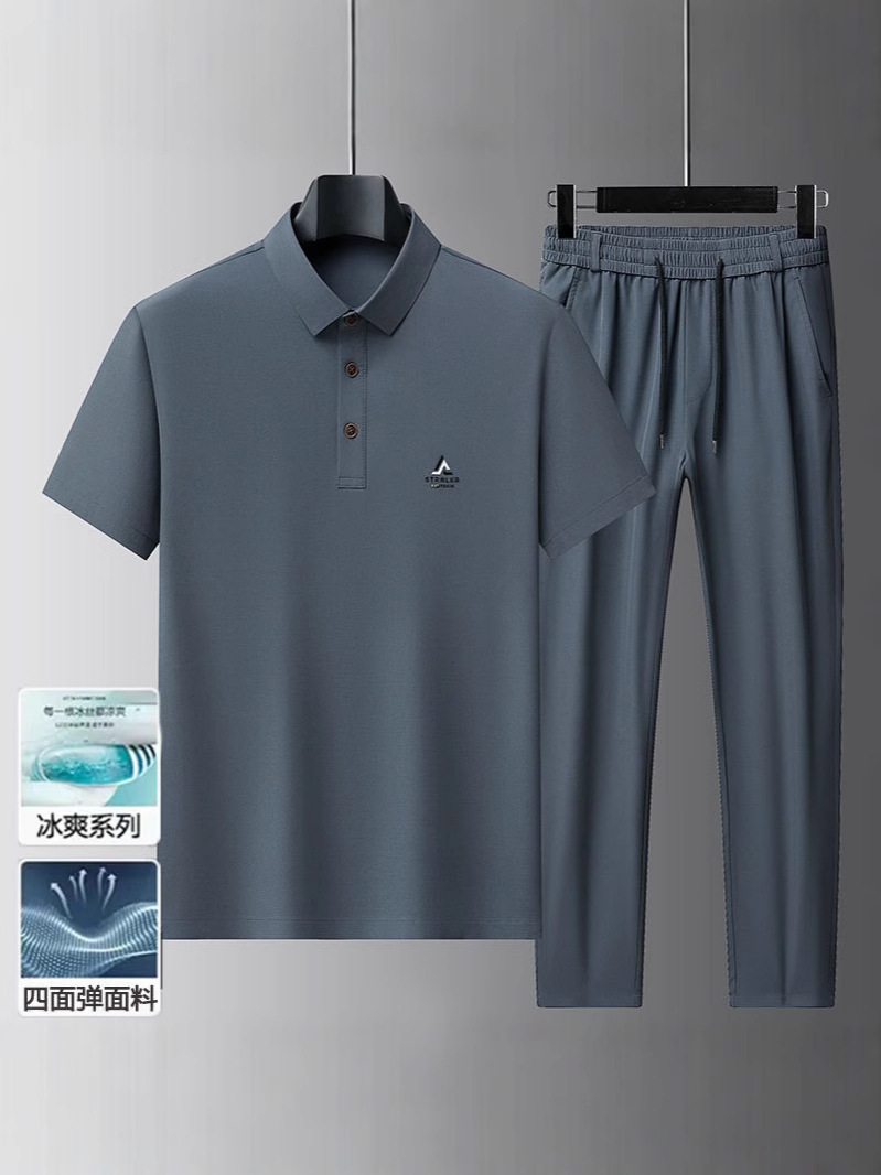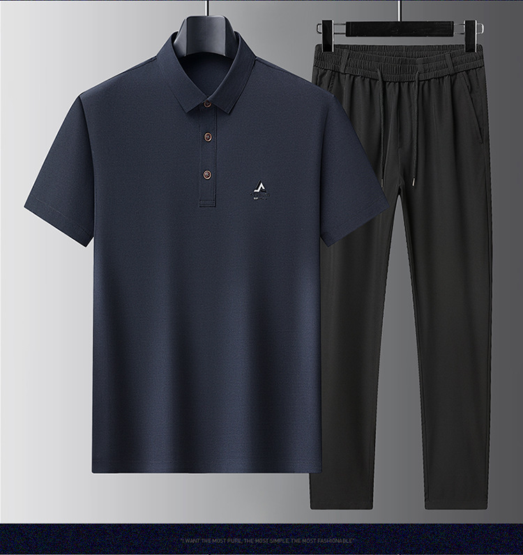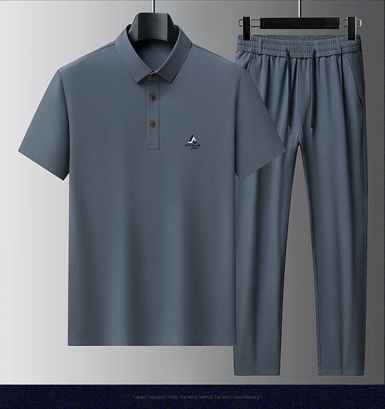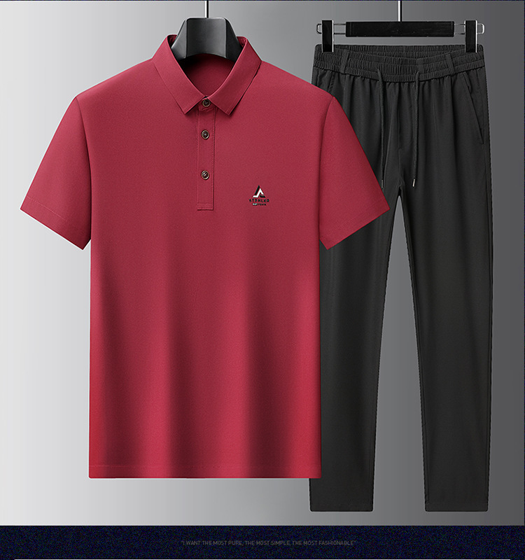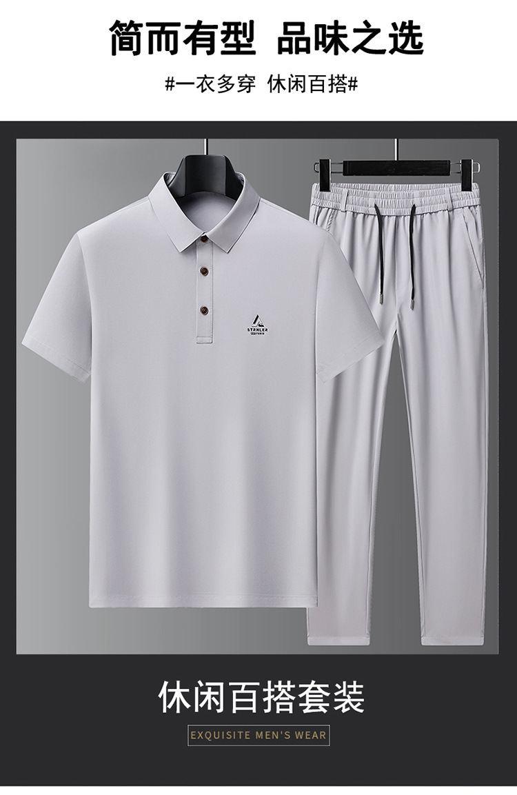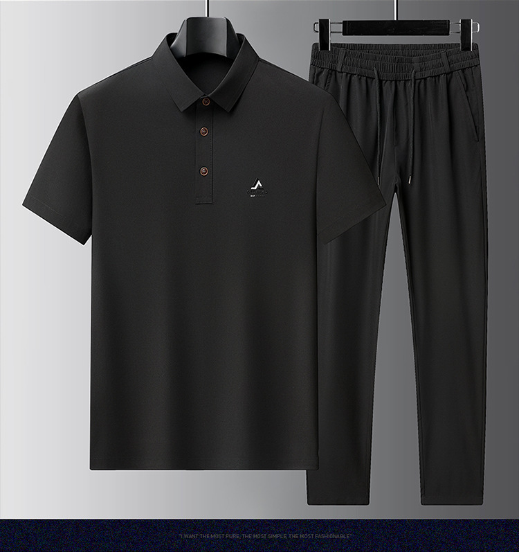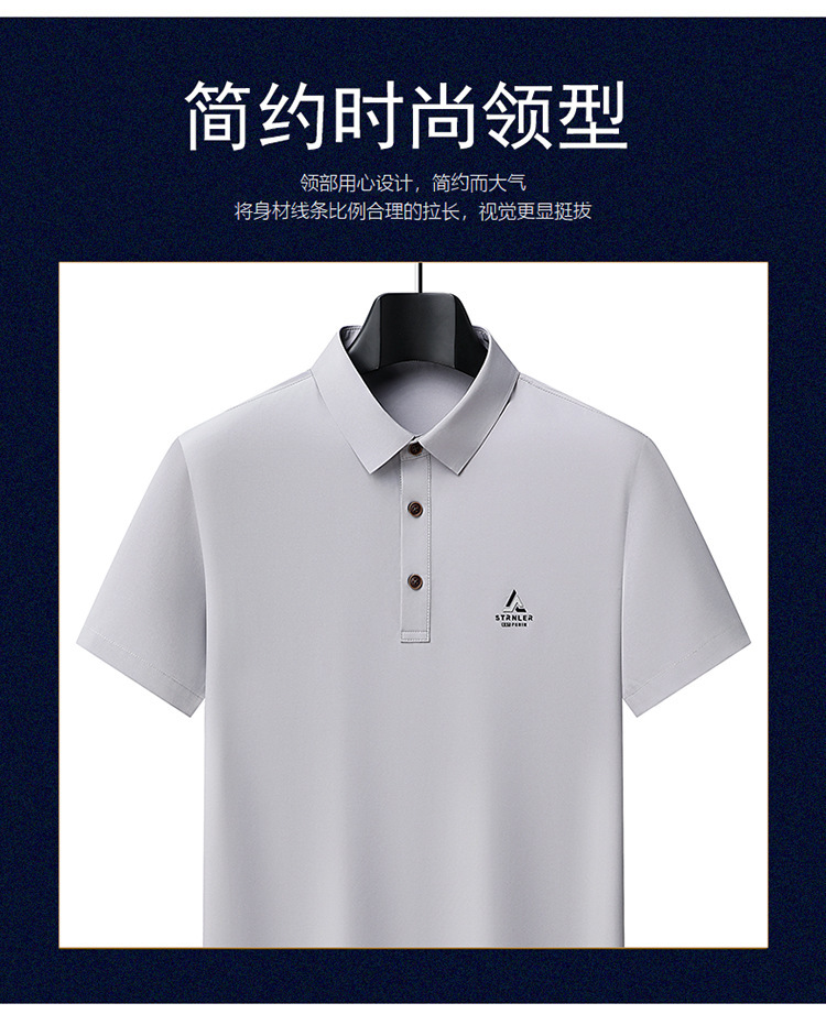 Летняя эластичная элегантная бесшовная мужская рубашка-поло из ледяного шелка, тонкая футболка с короткими рукавами и лацканами среднего возраста, деловая повседневная футболка