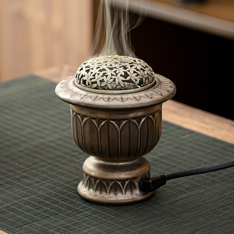 Электронная ароматерапевтическая печь, деревянный блок, ароматерапия, высокая температура, сухое горение, керамическая аромалампа с таймером, ароматерапия, карбонизированный блок из сандалового дерева с пряностями