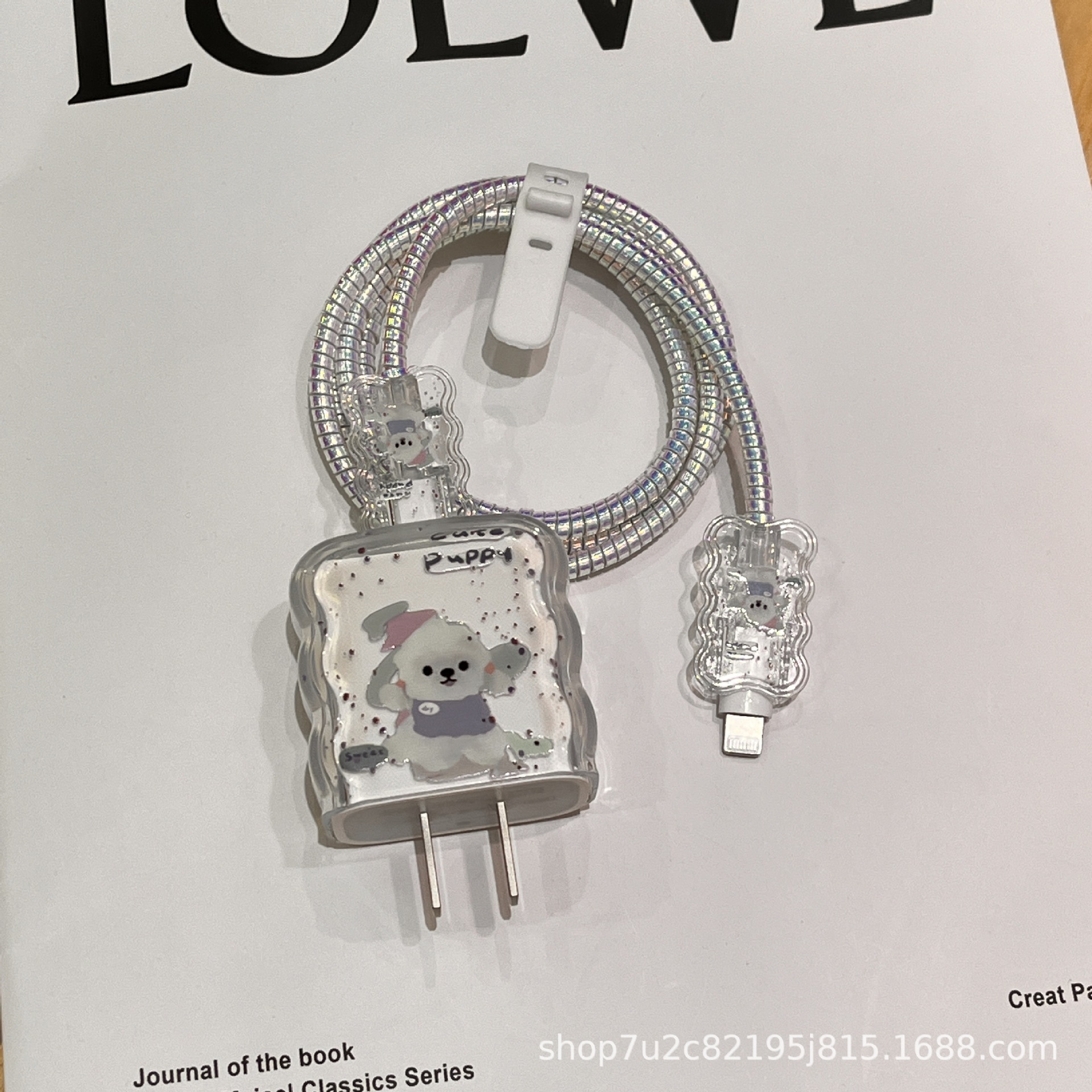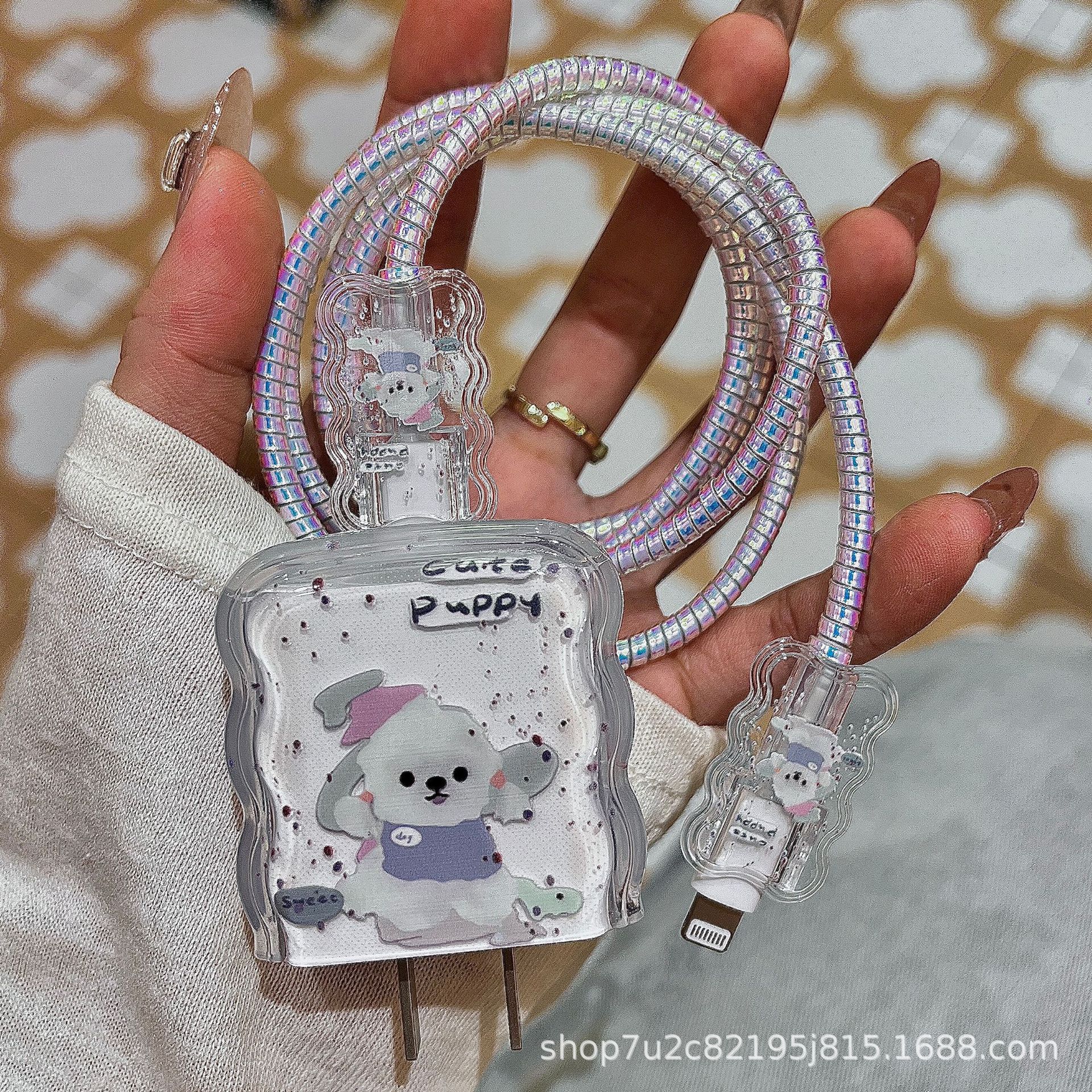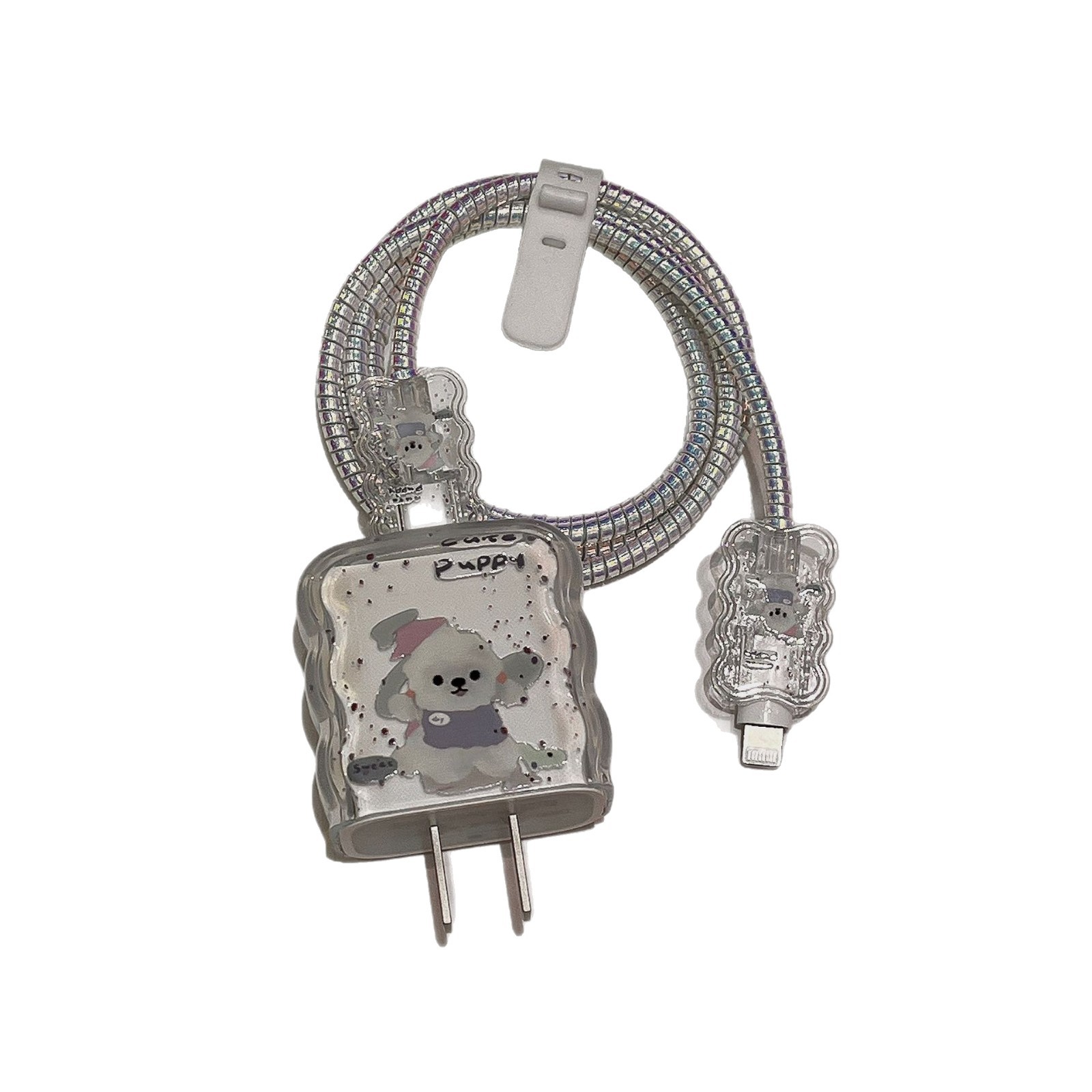 Защитный чехол для зарядного устройства Apple 17 (20 Вт) и кабеля для передачи данных, с рисунком белой собаки, мягкий, ударопрочный, волнообразный