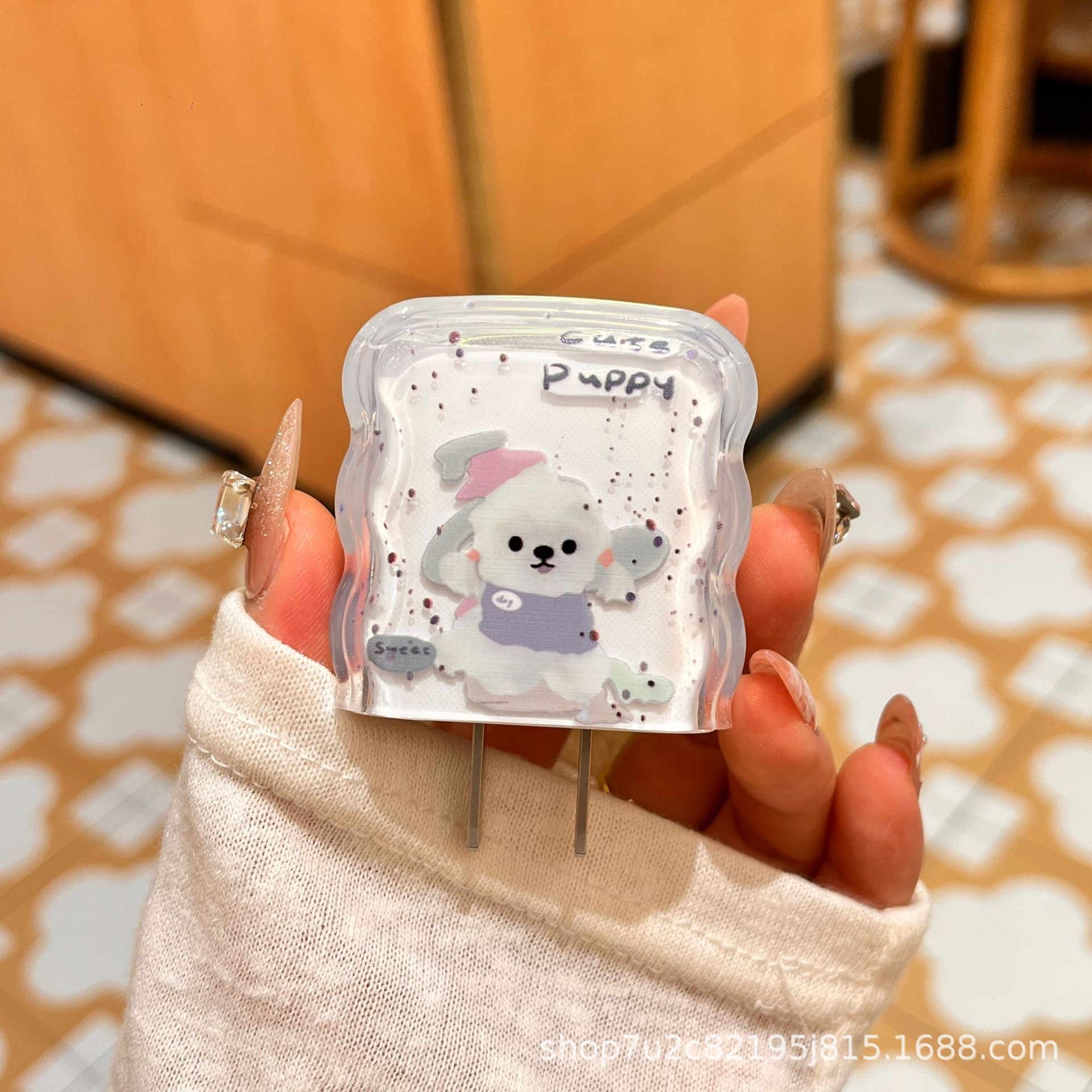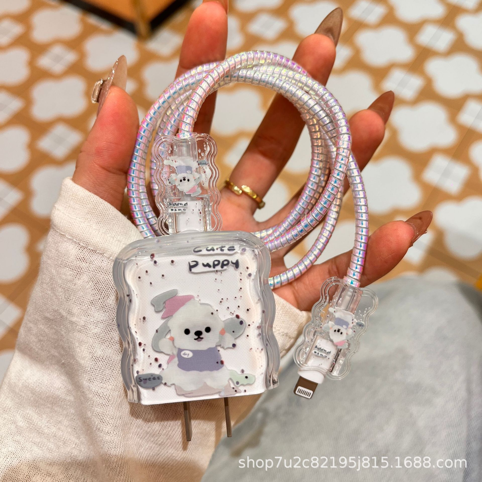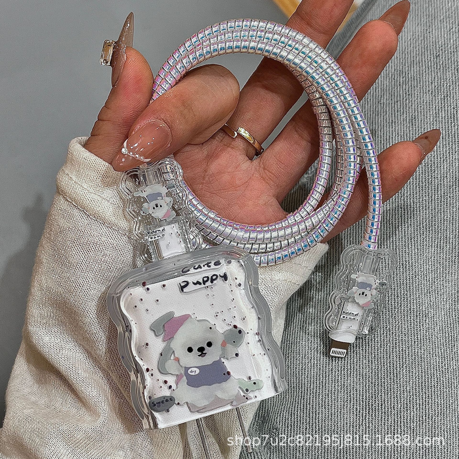 Защитный чехол для зарядного устройства Apple 17 (20 Вт) и кабеля для передачи данных, с рисунком белой собаки, мягкий, ударопрочный, волнообразный