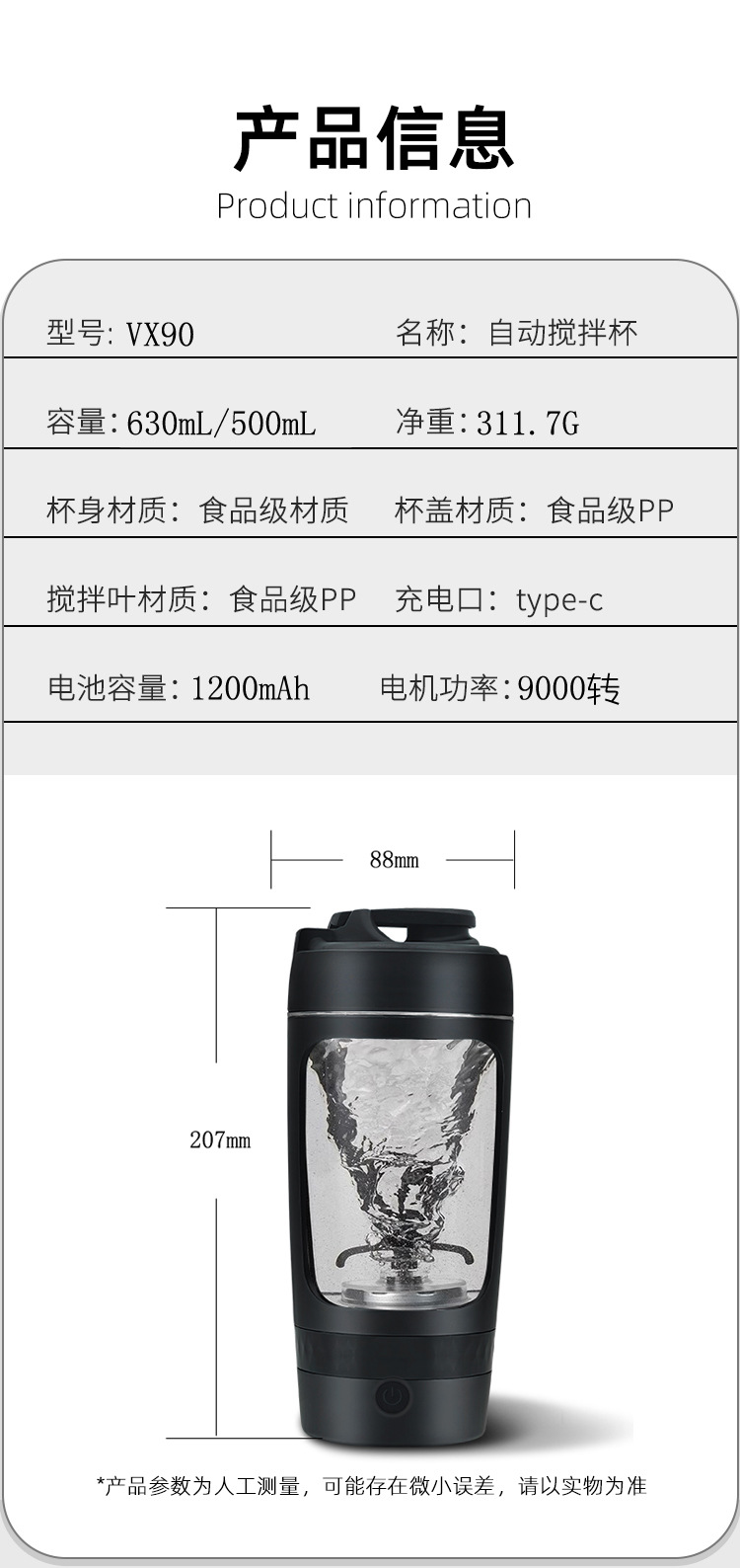 Поставка производителя, цельная чашка из тритана, 630 мл, электрическая чашка для смешивания, автоматическая чашка для смешивания, чашка для смешивания протеинового порошка