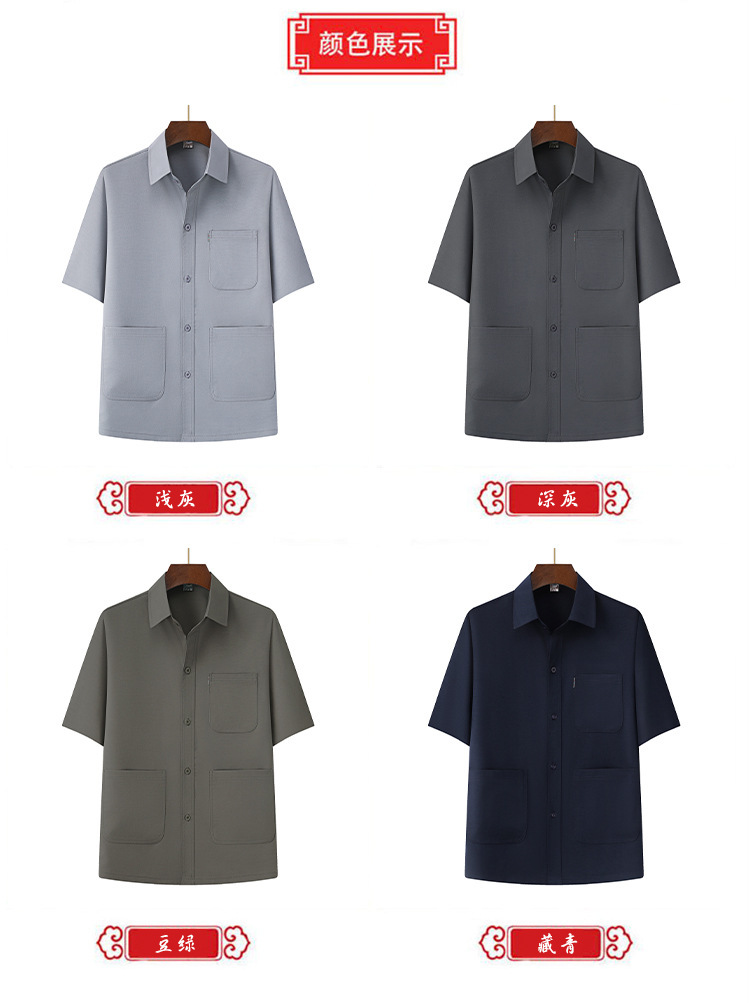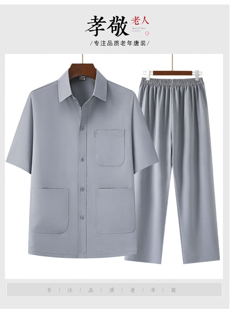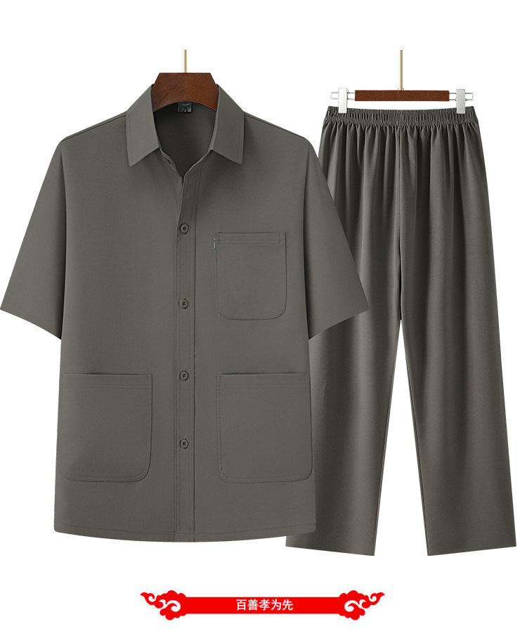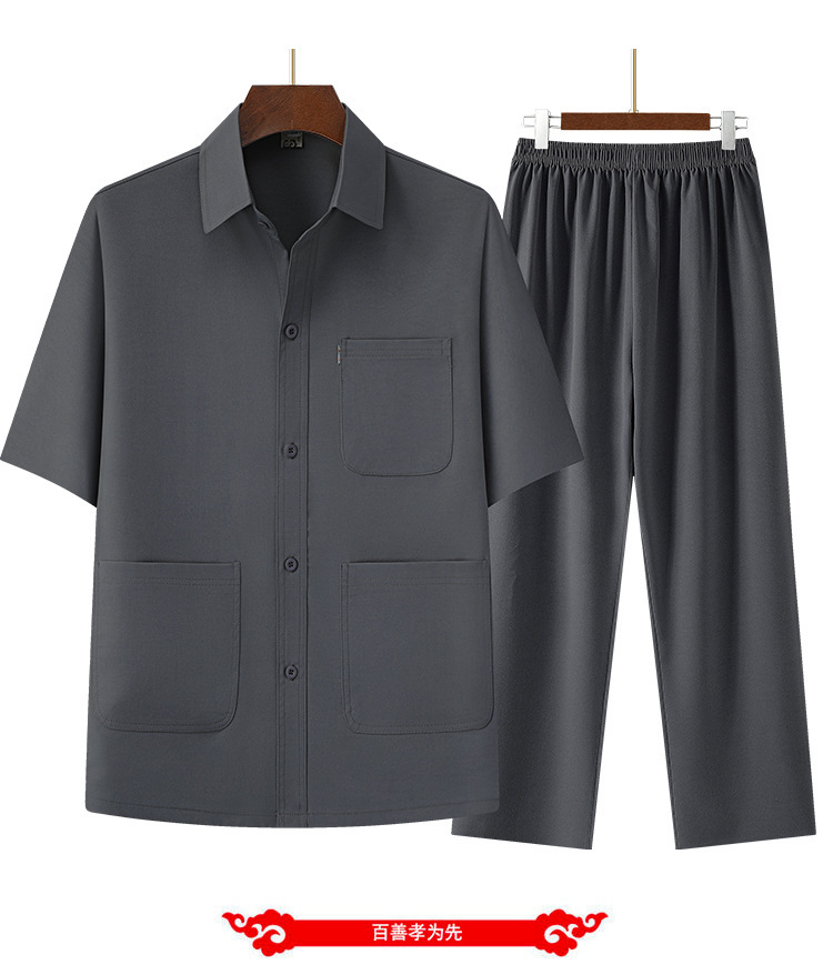 Новый текстурированный топ из двух частей для папы среднего и пожилого возраста, рубашка с лацканами, брюки на резинке, тонкий летний костюм с короткими рукавами.