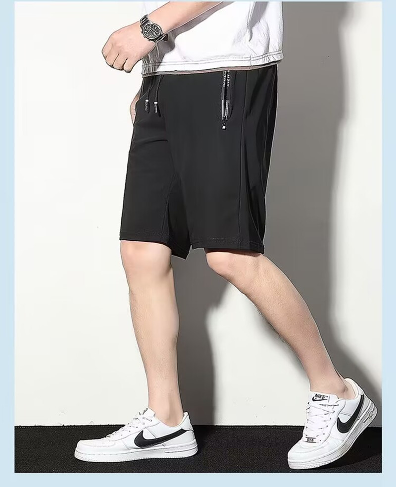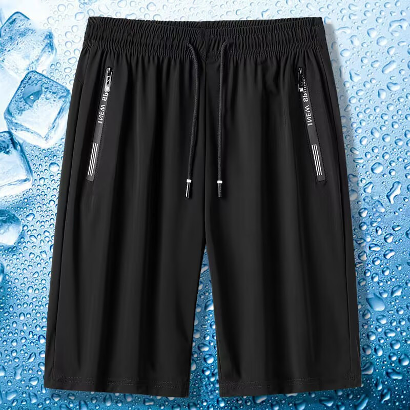 Мужские шорты из ледяного шелка, повседневные спортивные брюки с пятью точками, летние тонкие быстросохнущие пляжные шорты с карманом на молнии, большие шорты
