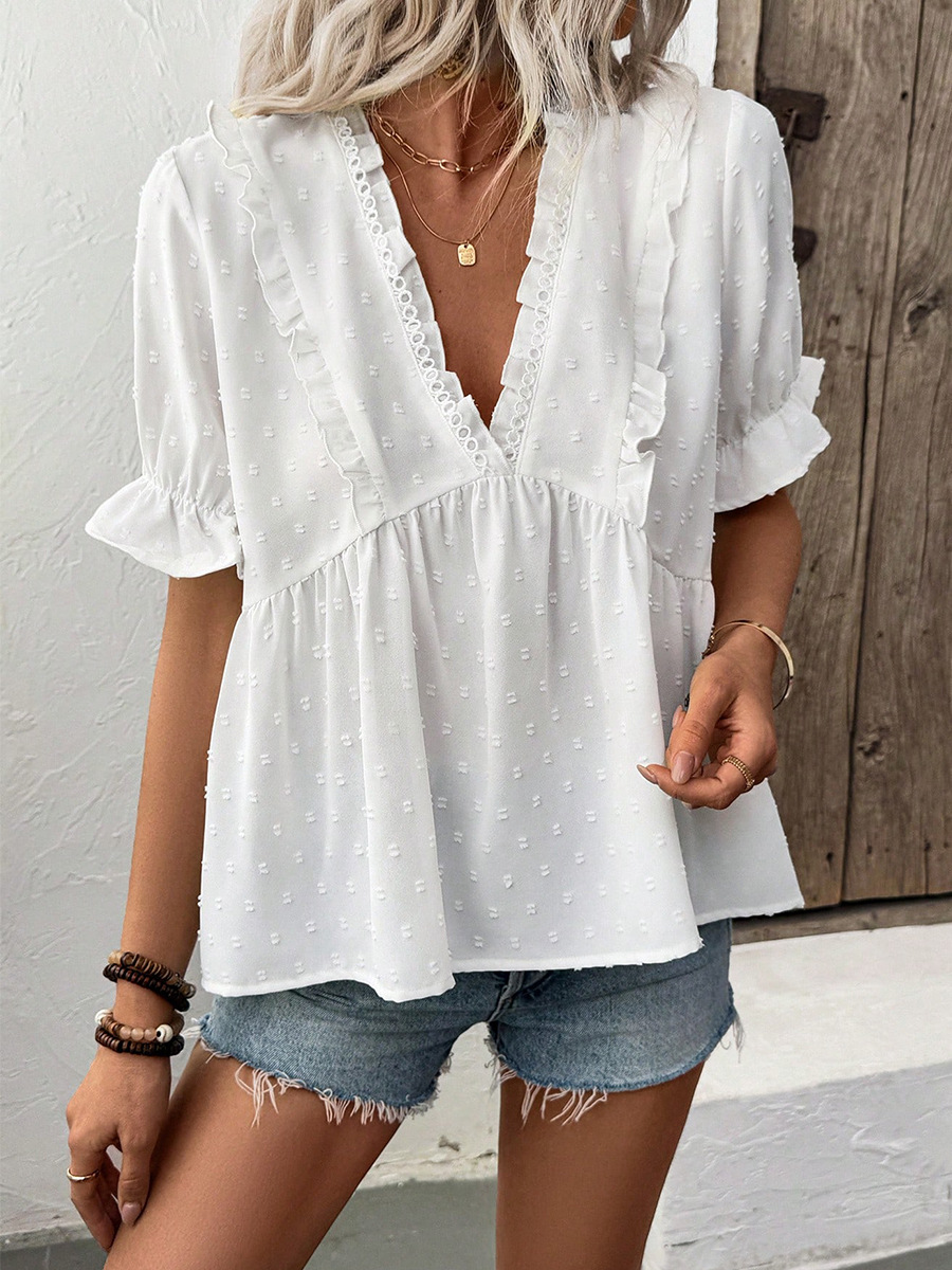 Женская рубашка для трансграничной внешней торговли Amazon, летняя отпускная рубашка в европейском и американском стиле с цветочным принтом, кружевная рубашка с короткими рукавами