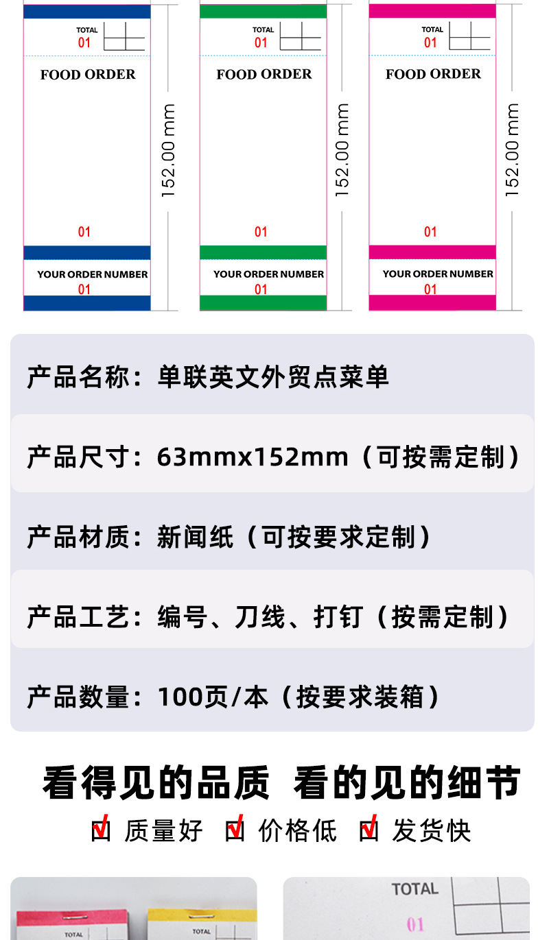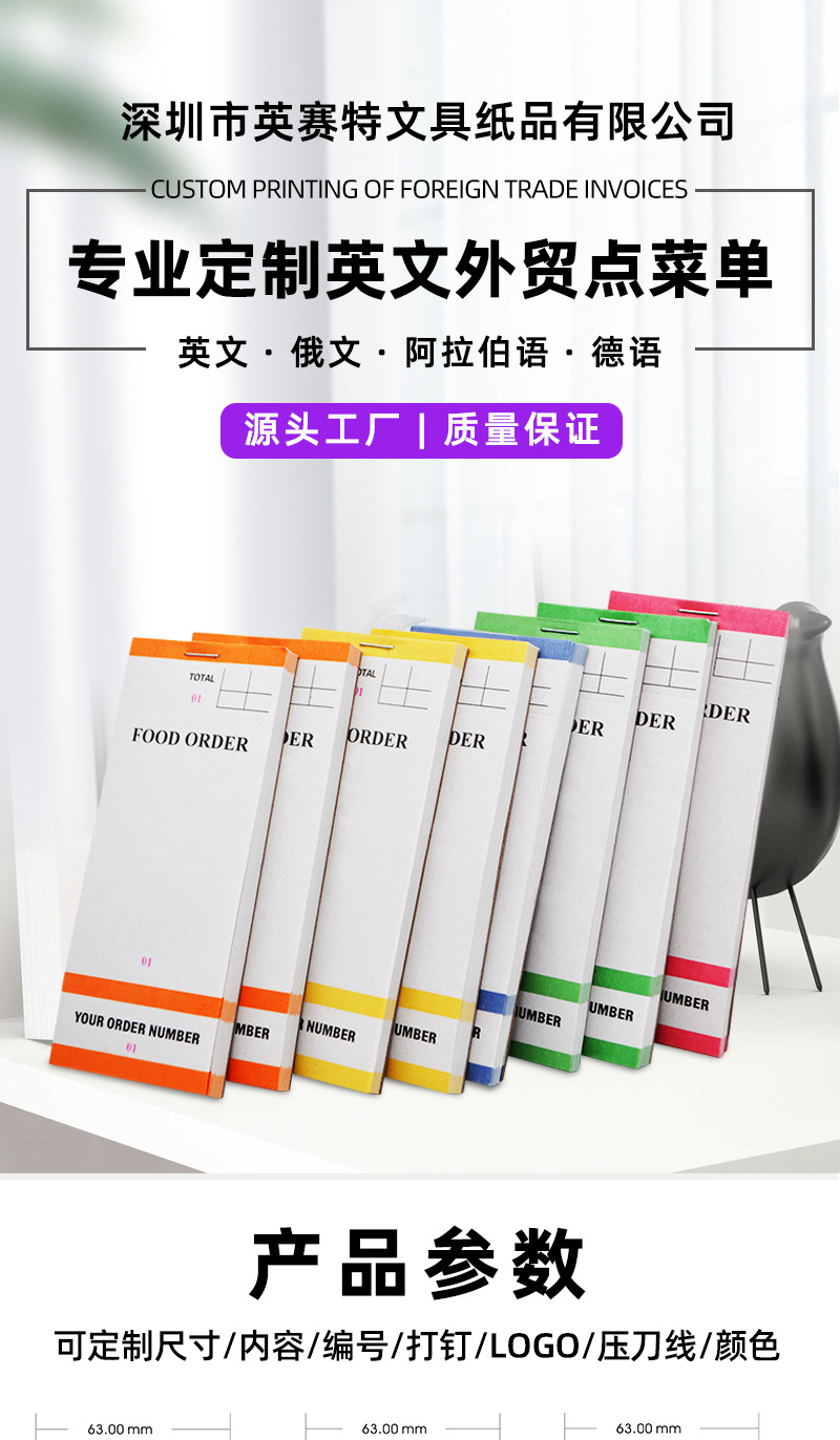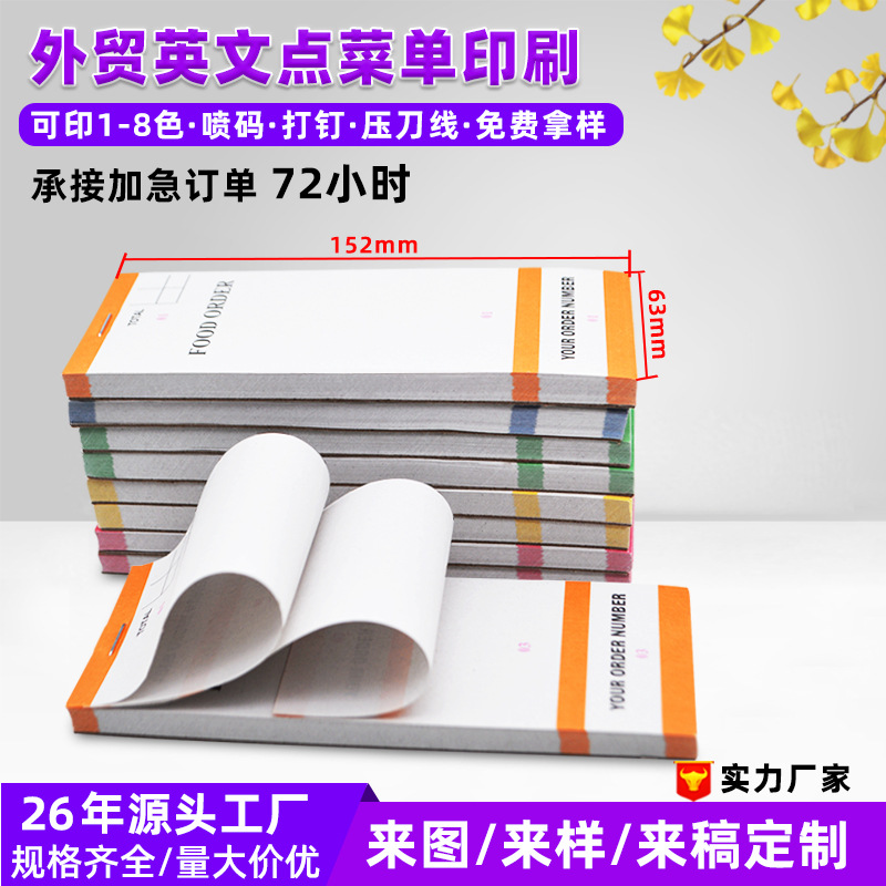 Индивидуальный блокнот для заказов, меню для ресторанов зарубежной кухни, список счетов для клиентов