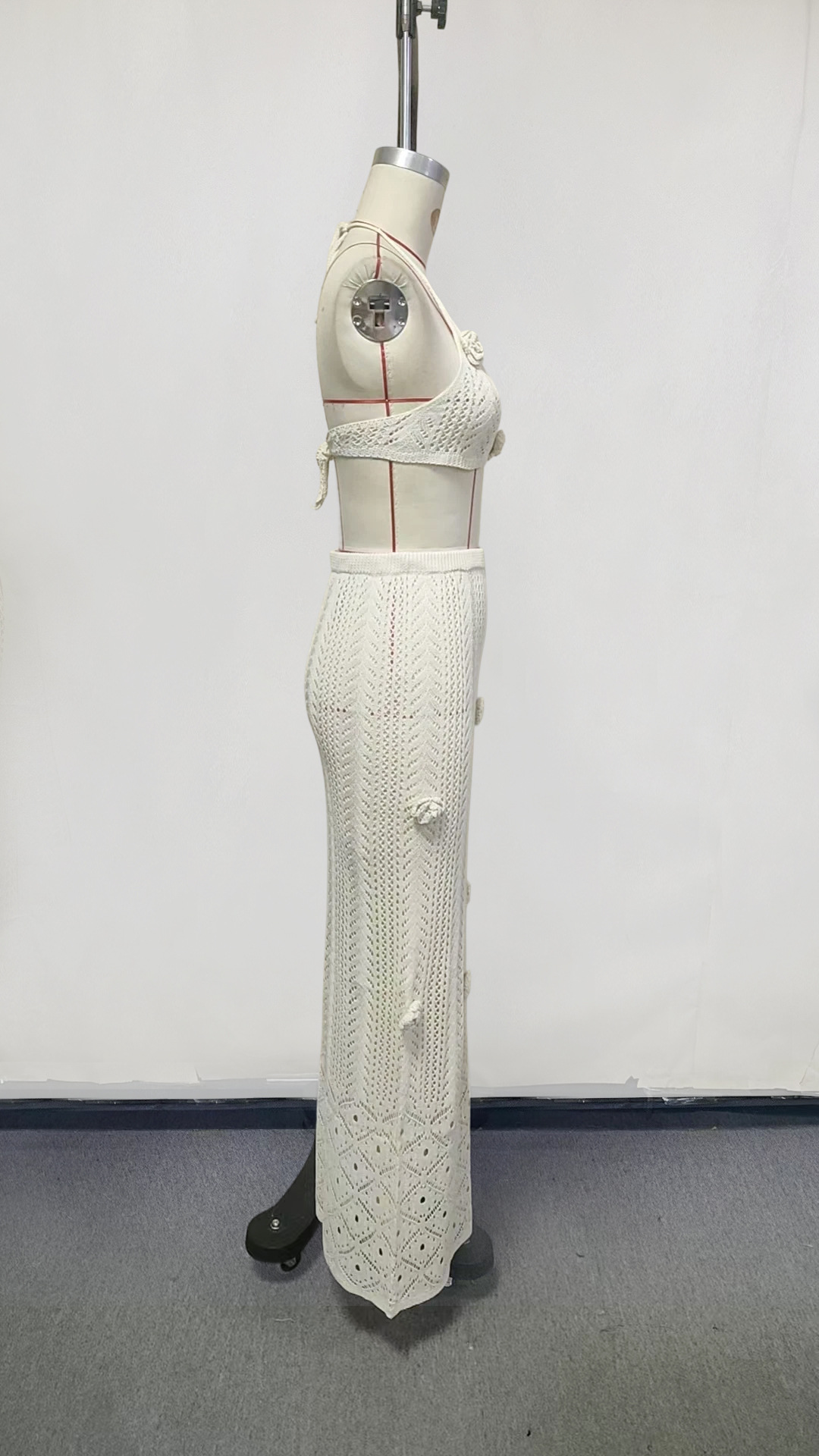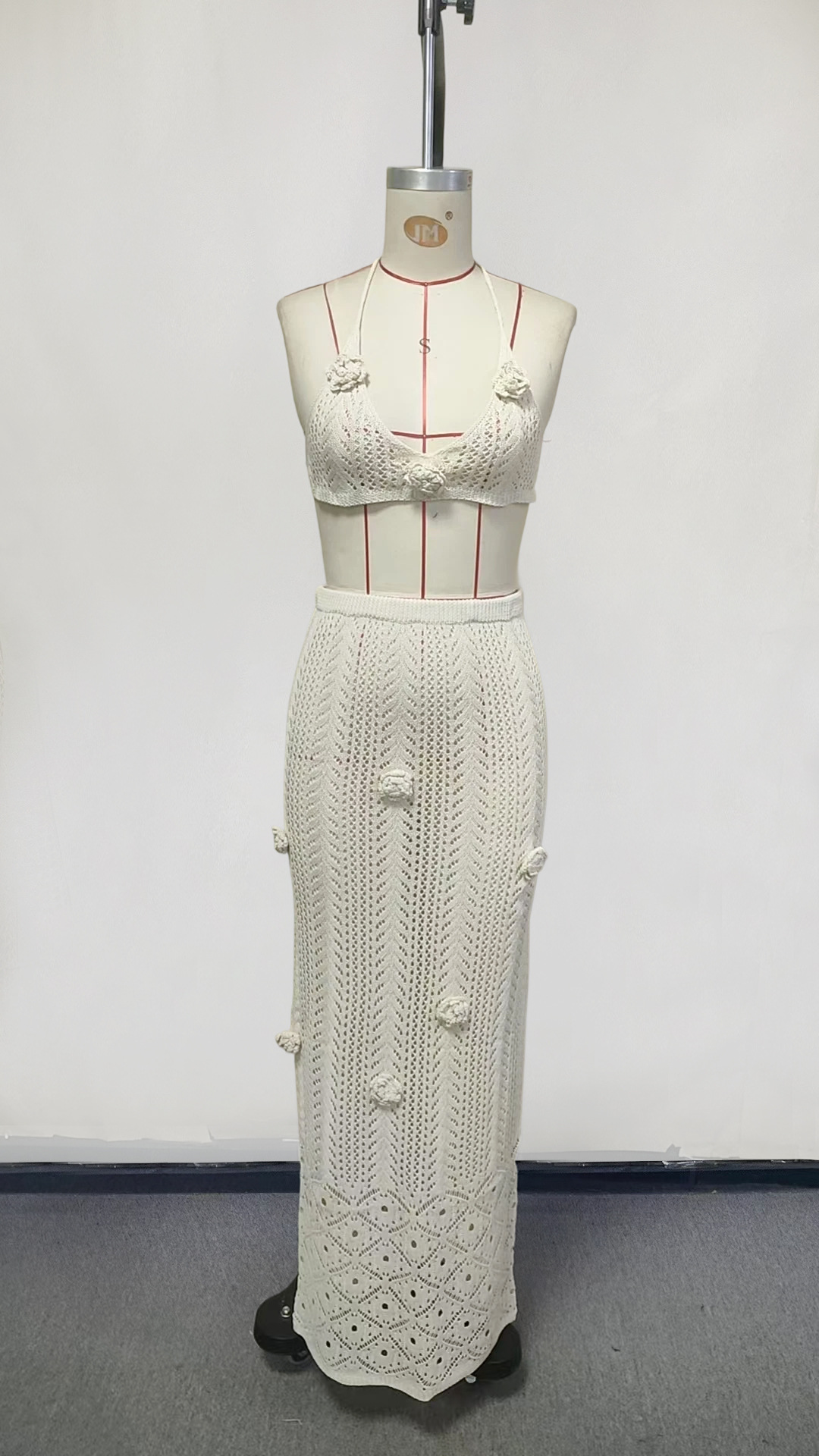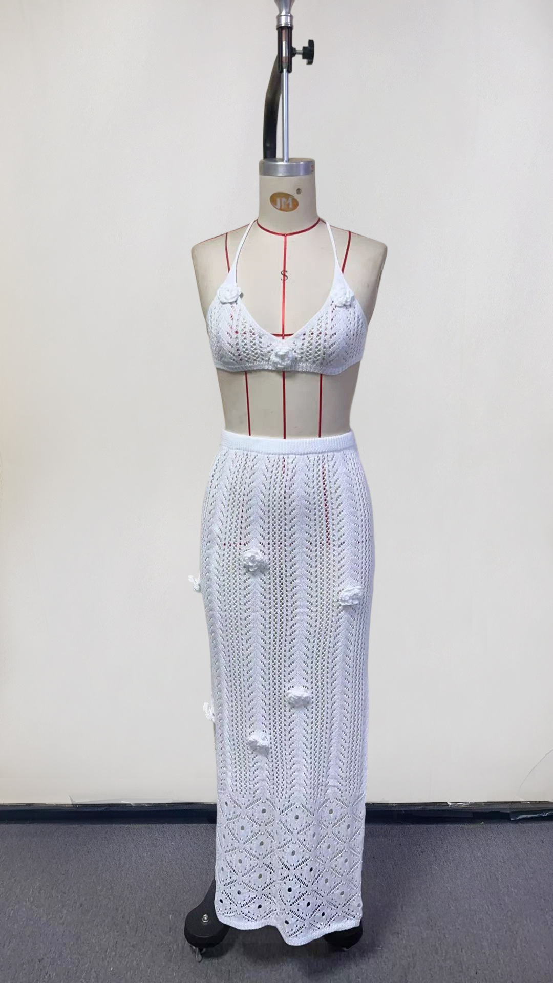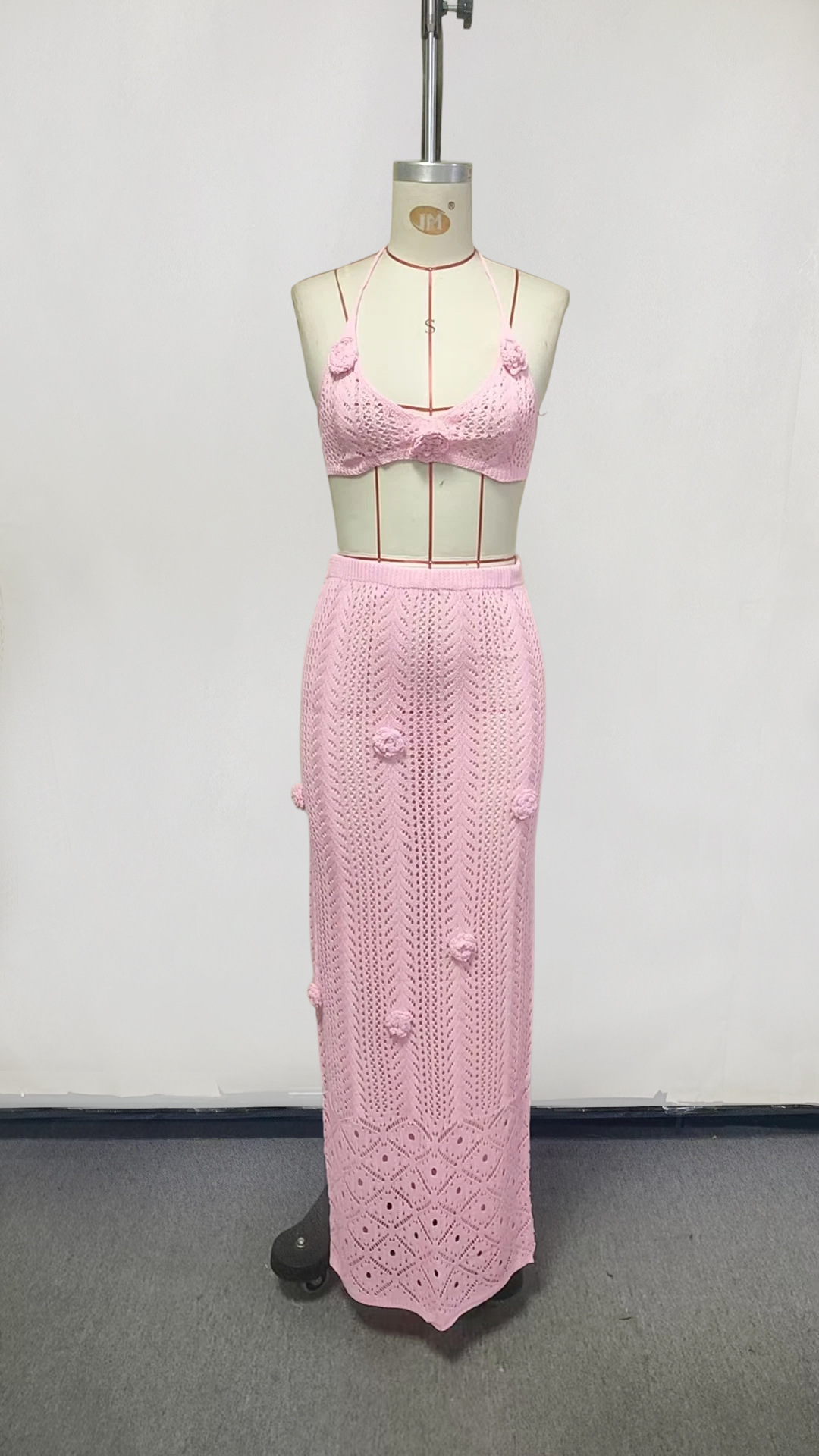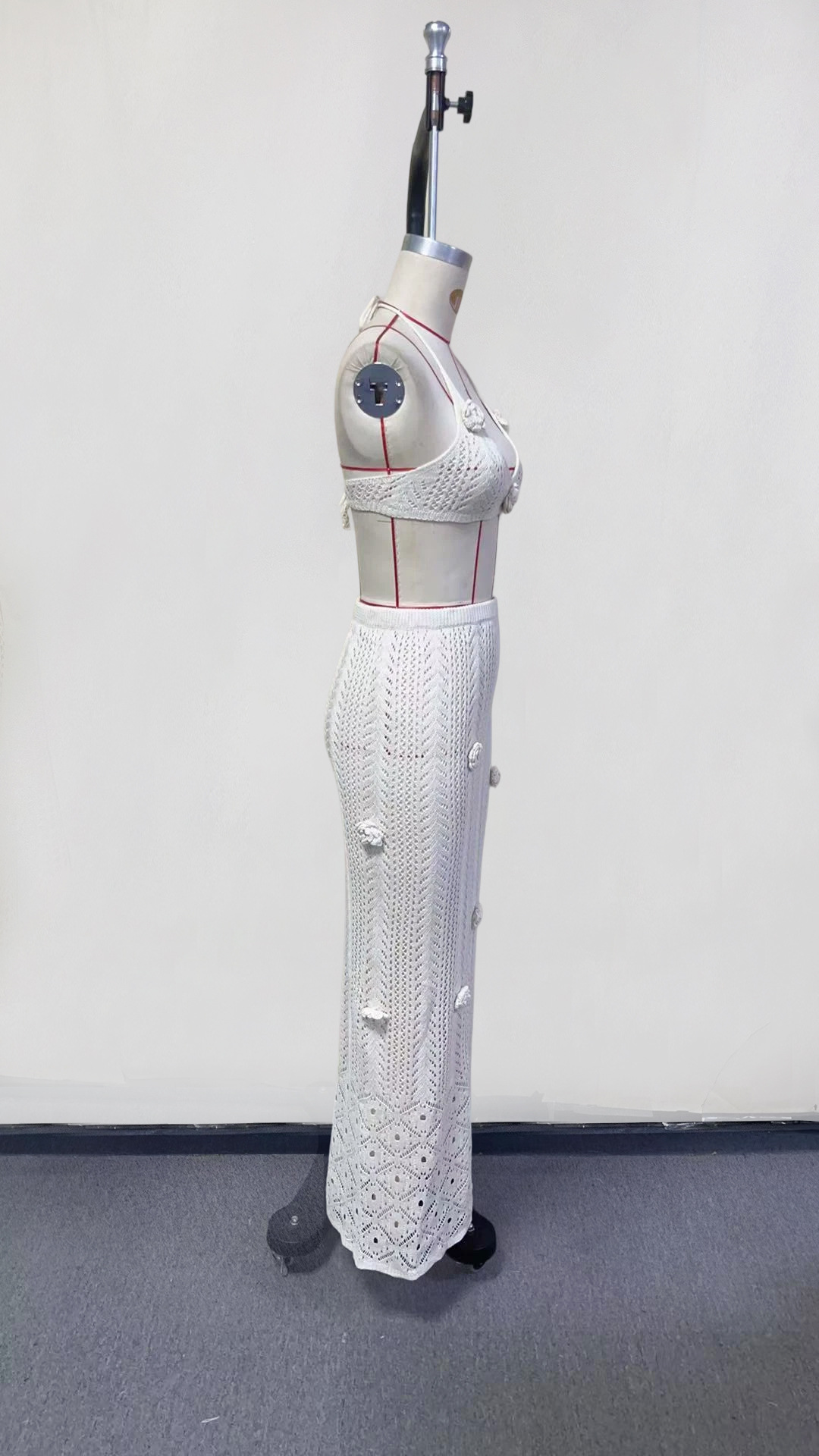 Манга 2025: новый сексуальный купальник с цветочным принтом, талией-корсетом, бретелями-халтером и длинной юбкой, вязаный, для трансграничных европейских и американских рынков.