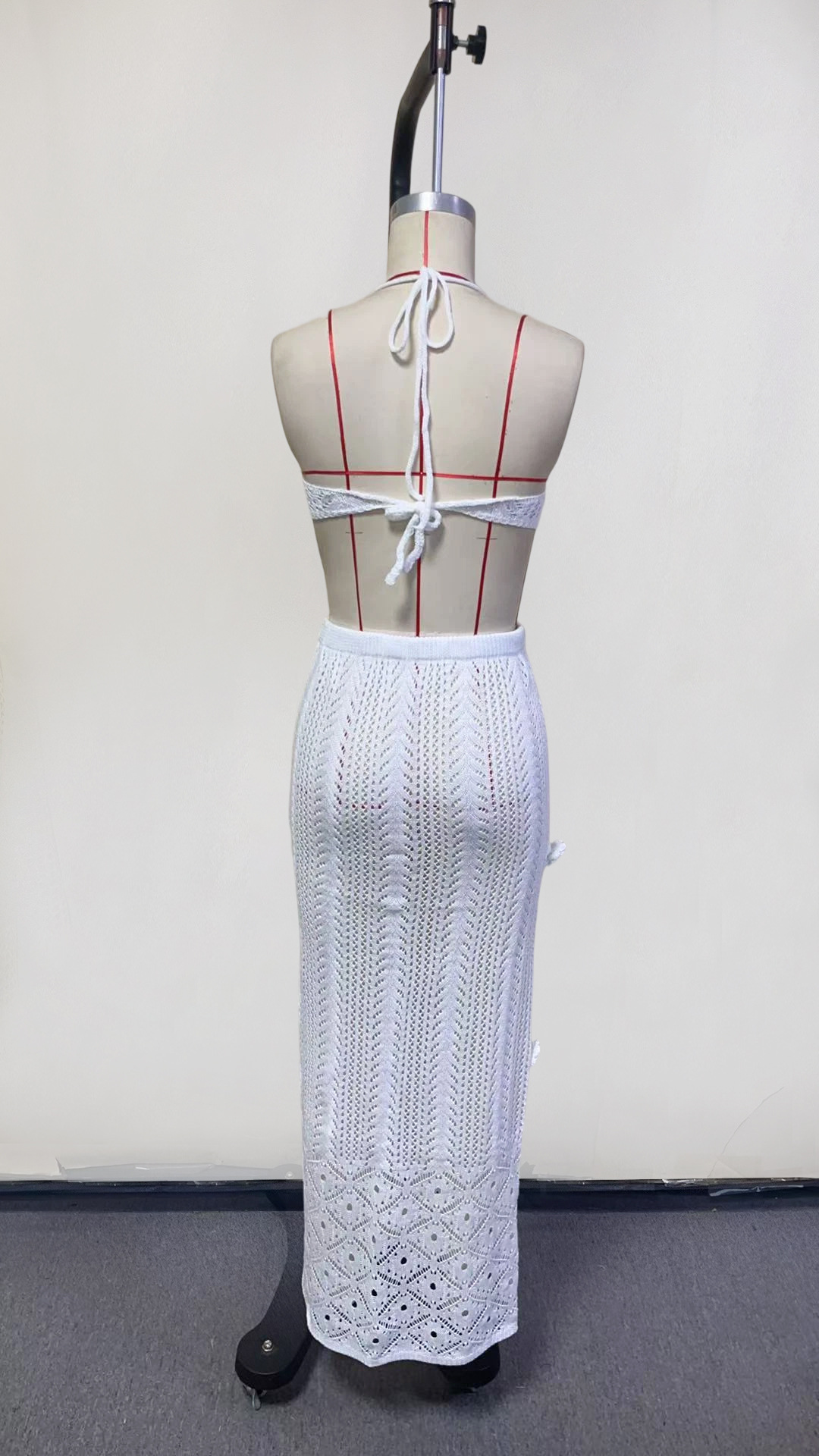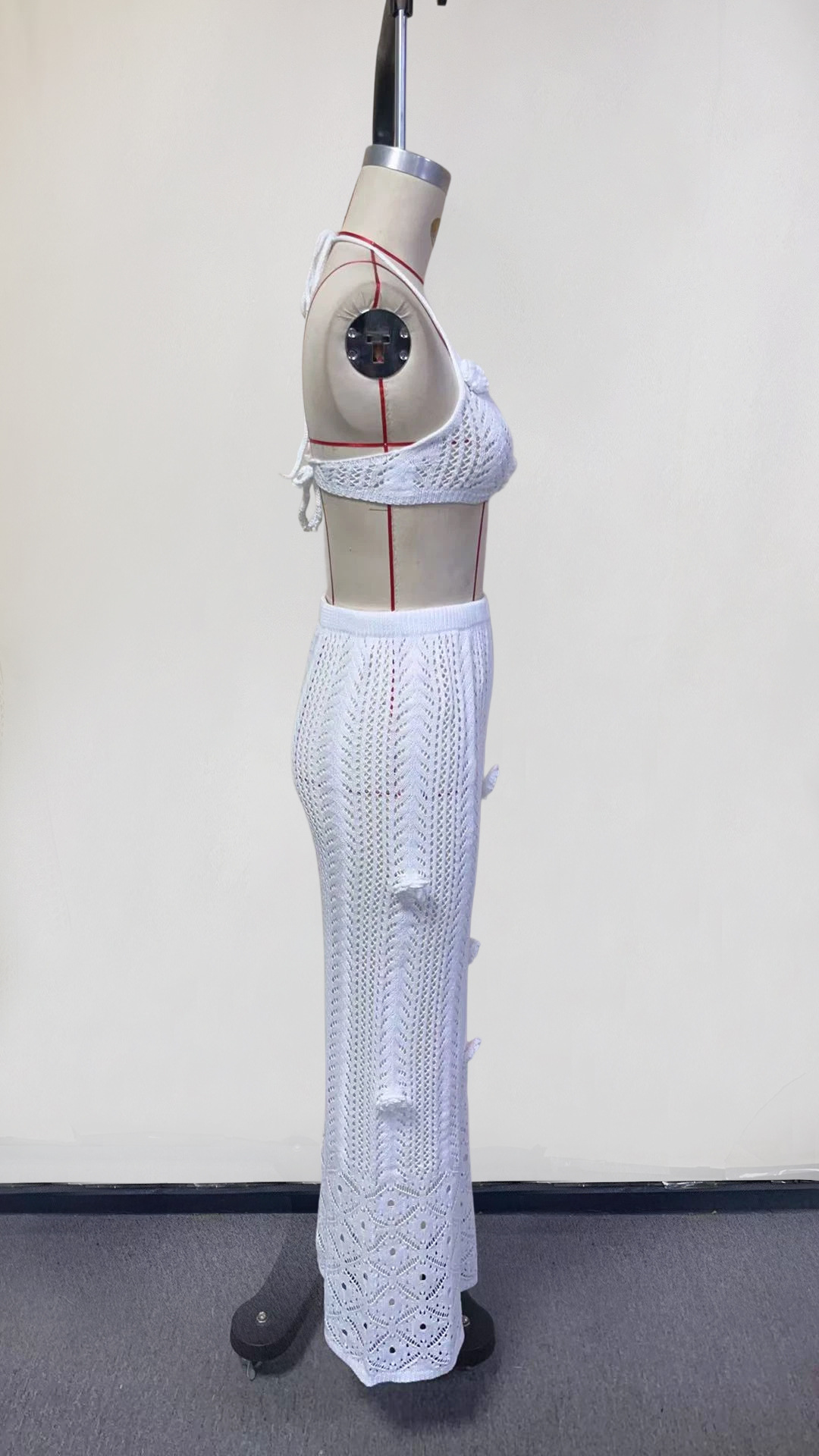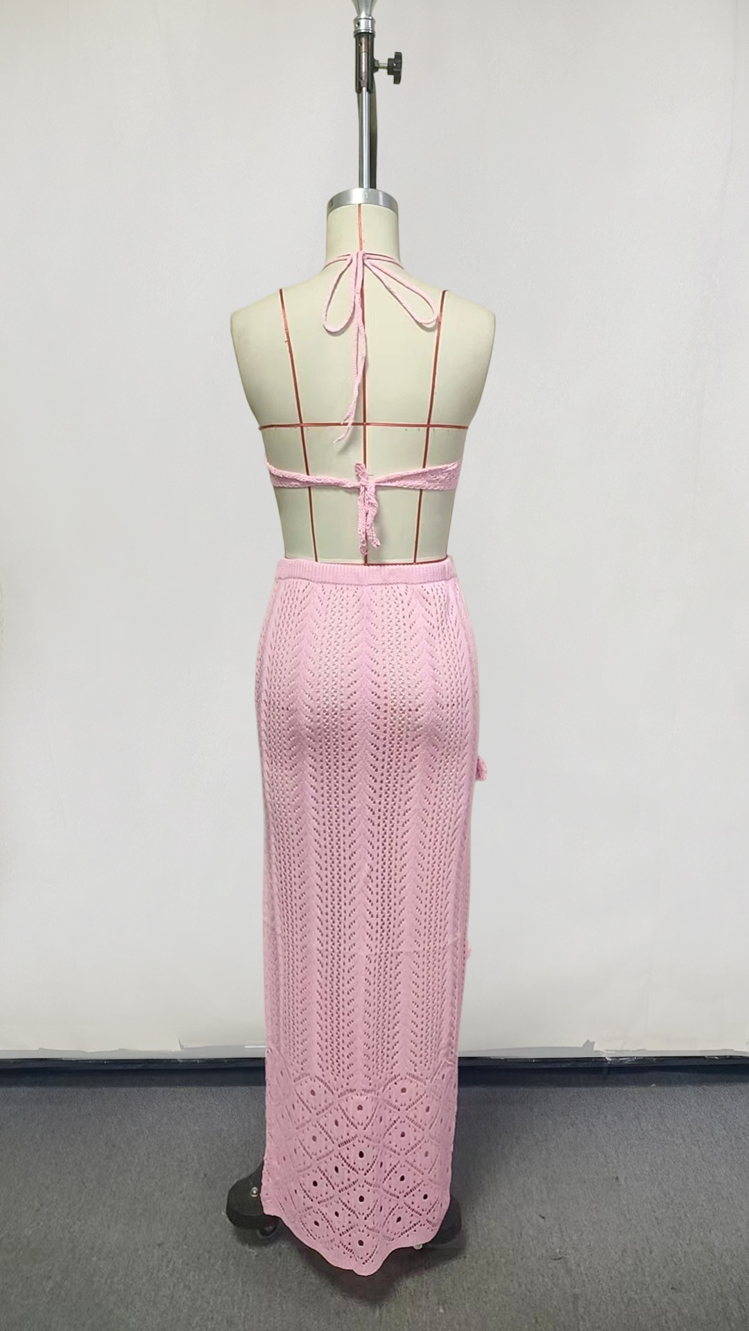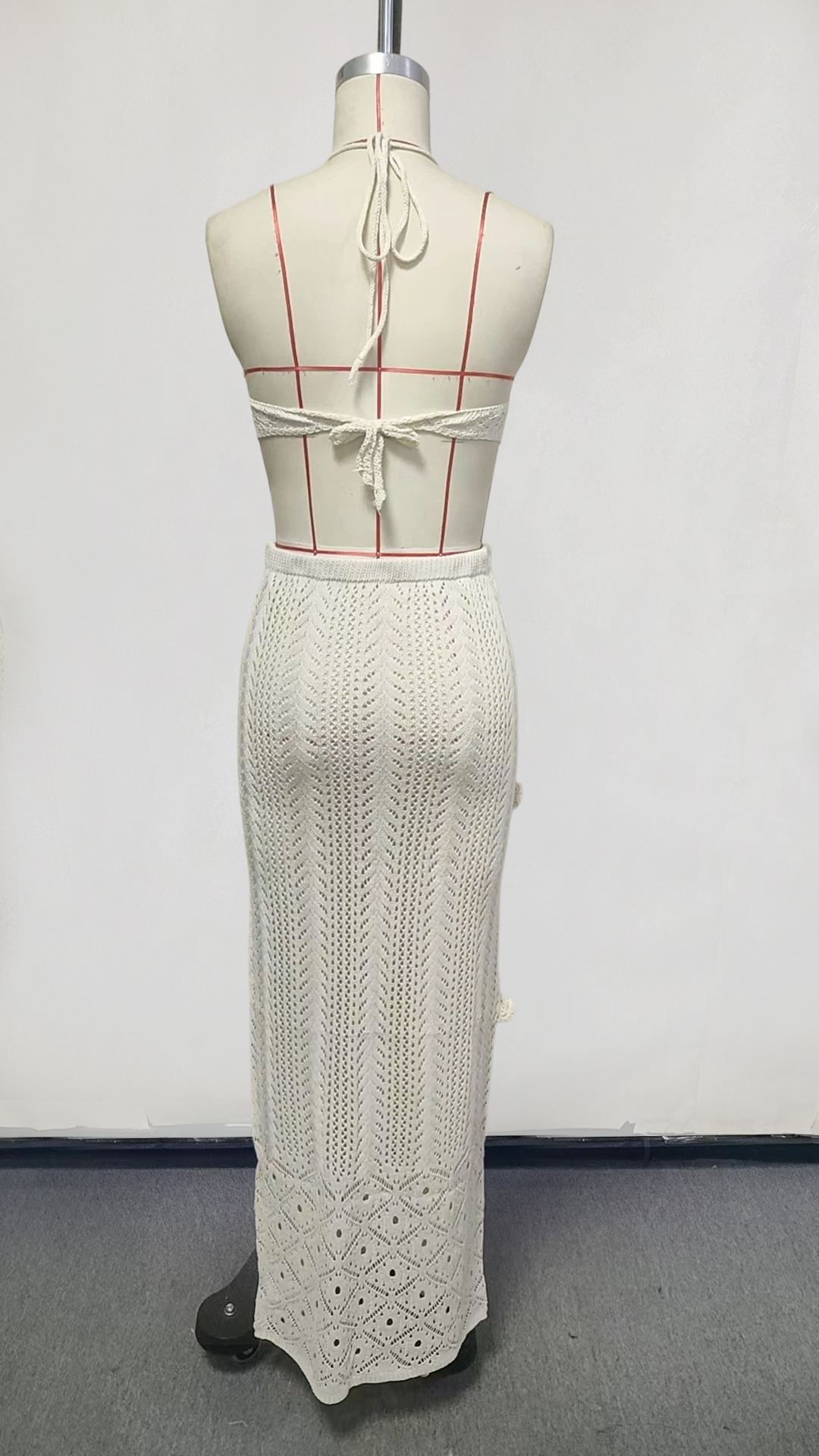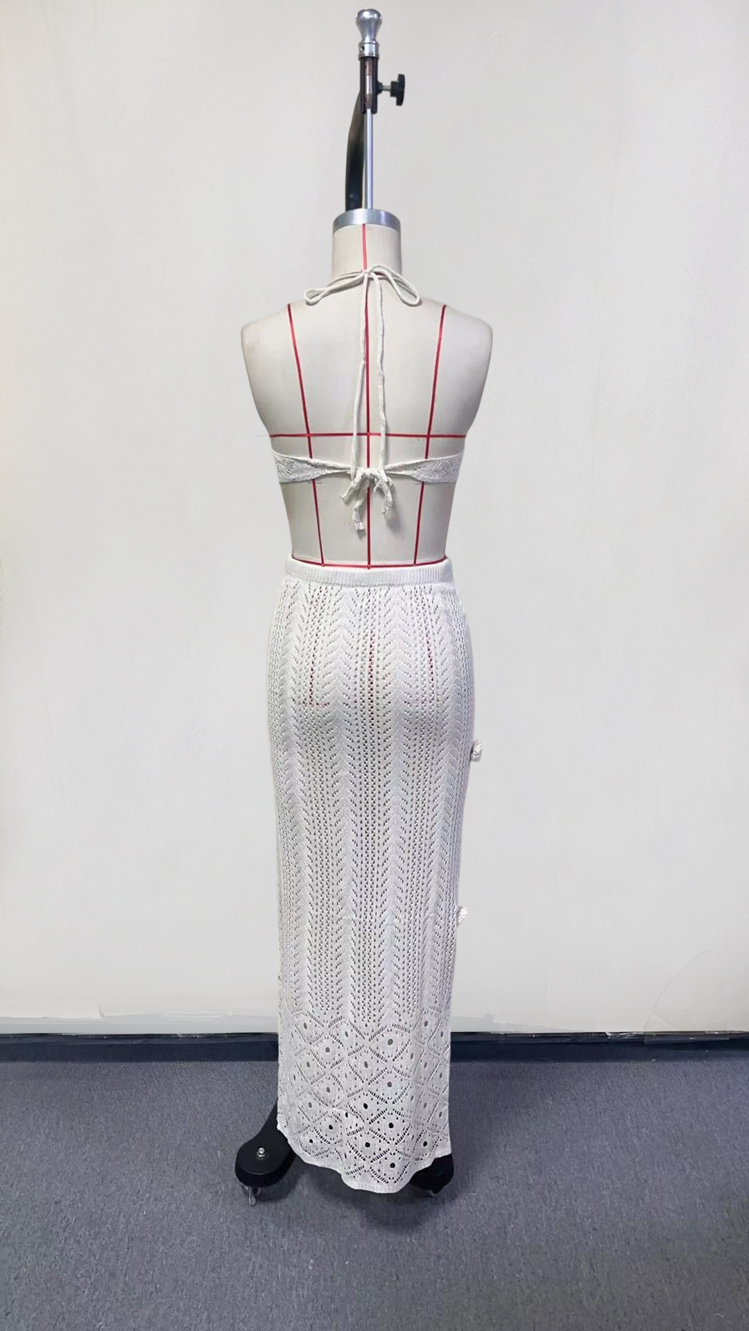 Манга 2025: новый сексуальный купальник с цветочным принтом, талией-корсетом, бретелями-халтером и длинной юбкой, вязаный, для трансграничных европейских и американских рынков.