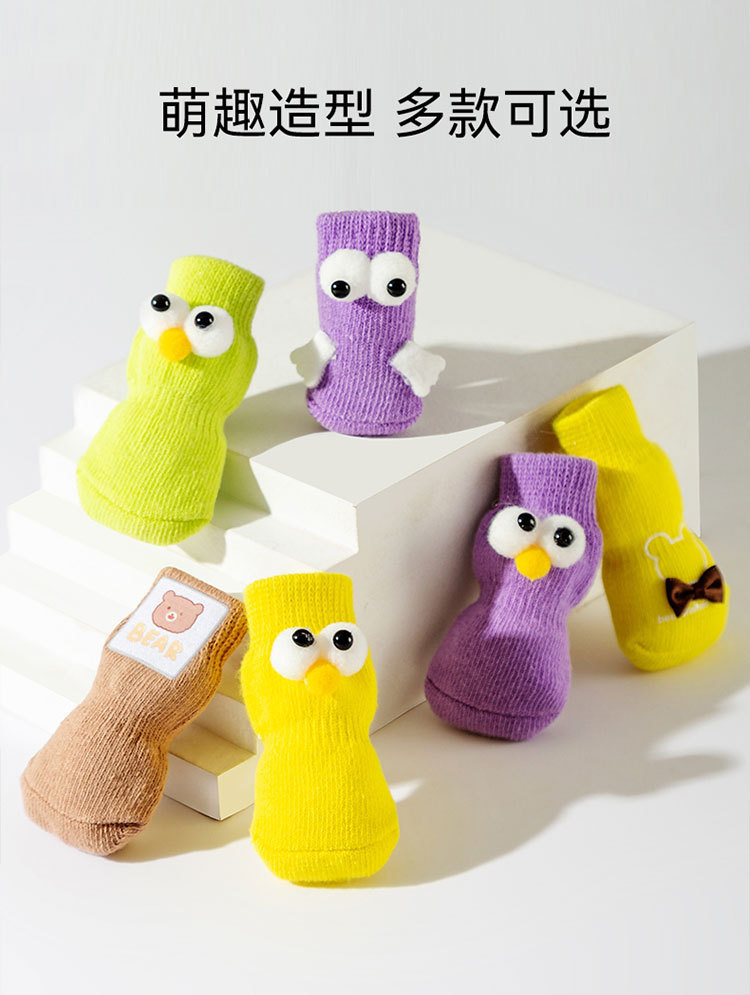 Новые носки для собак на все сезоны, милые вязаные носки с большими глазами для питомцев, теплые хлопковые носки для кошек и собак с противоскользящей подошвой