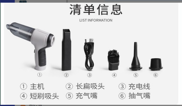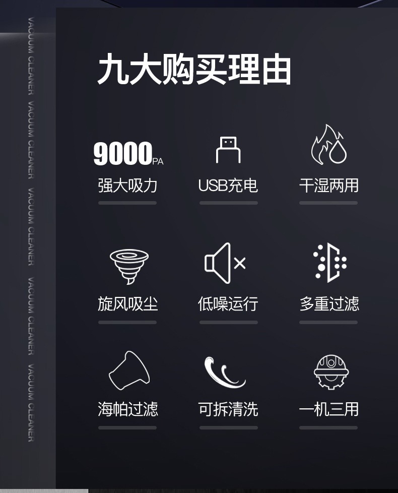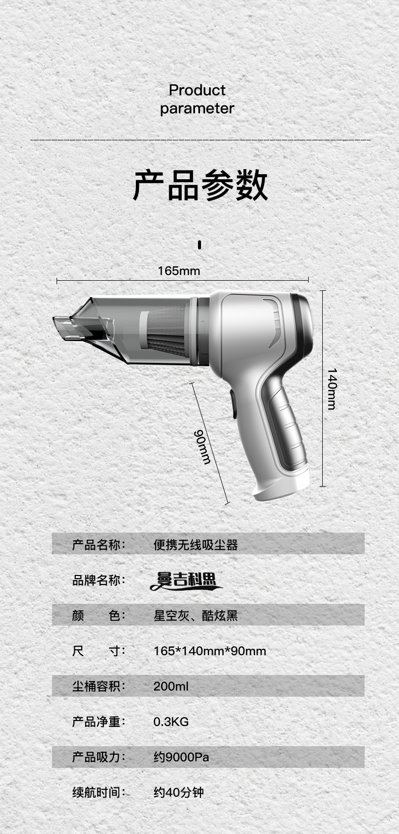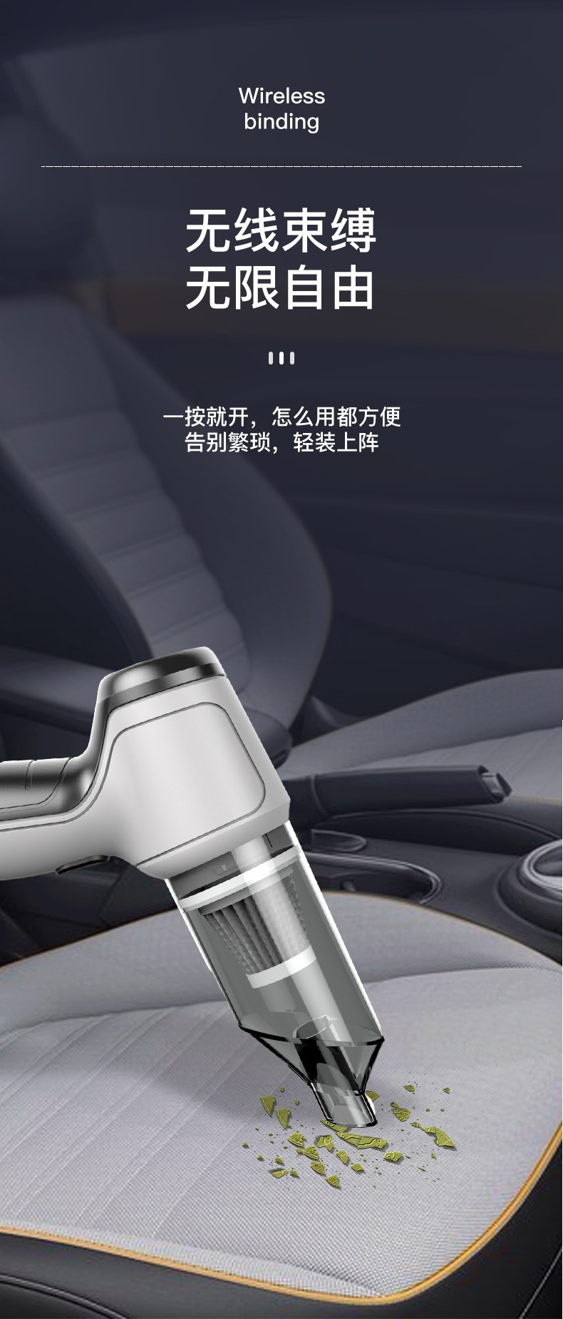 【产品名称】:新款手持式无线充电车家两用干湿两用吸尘器