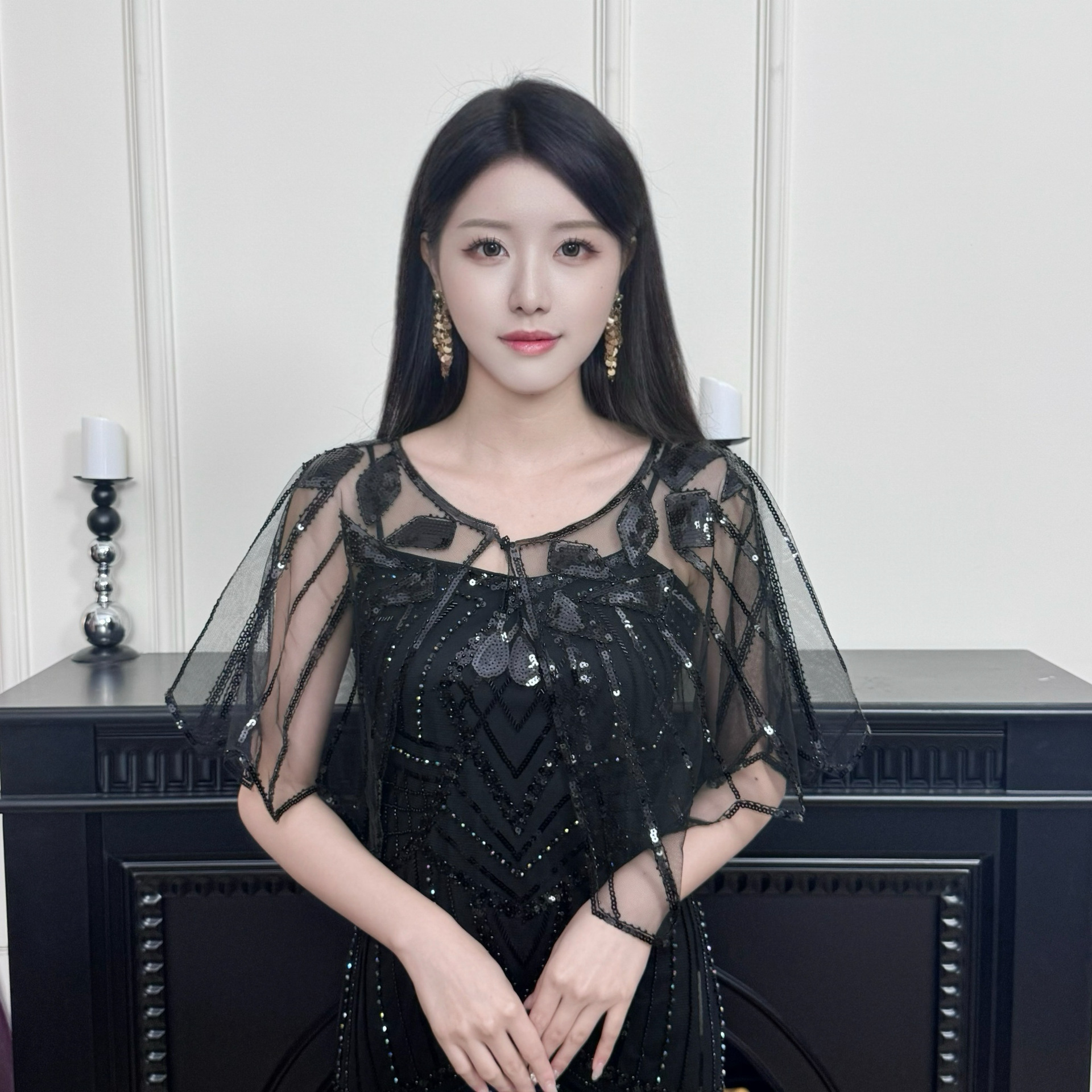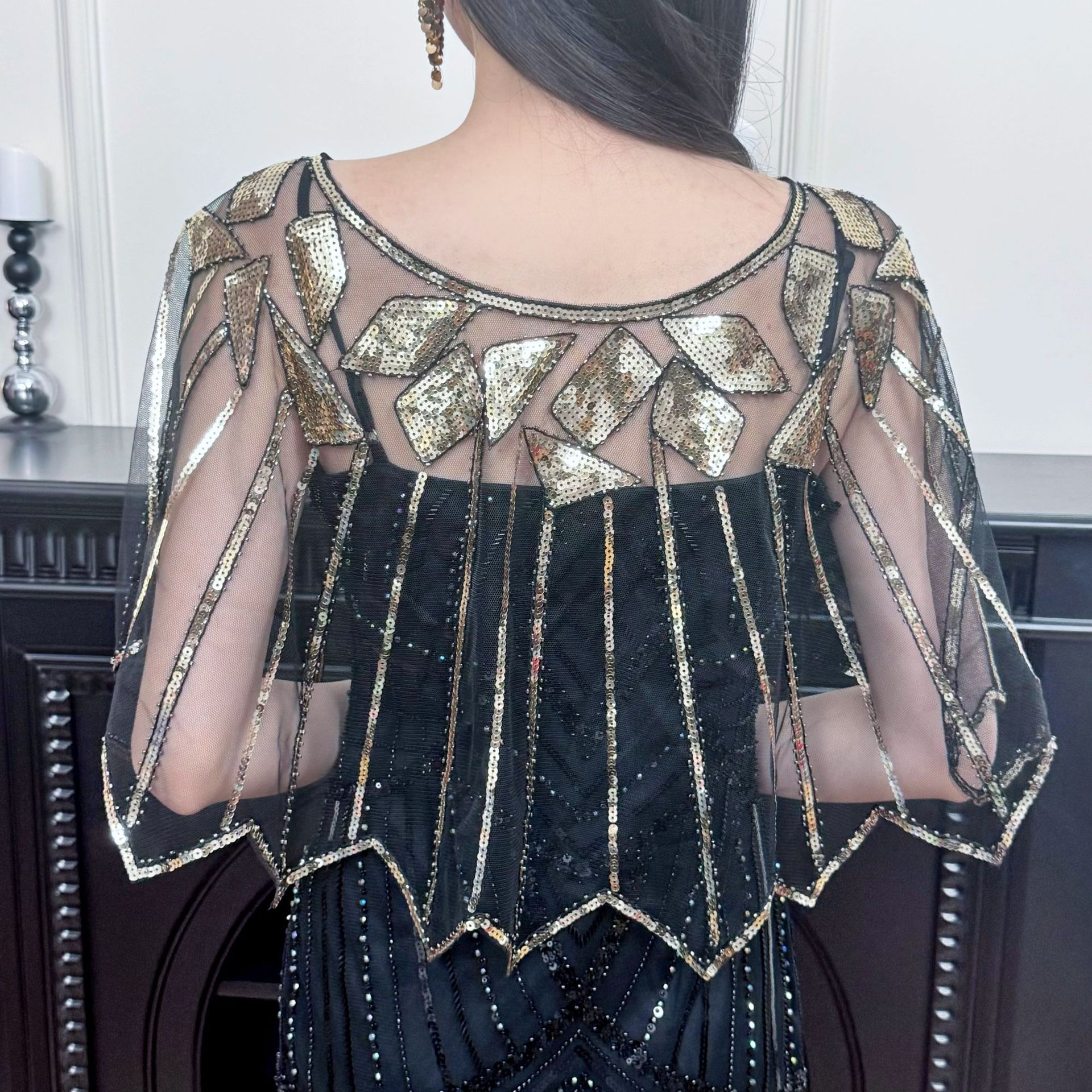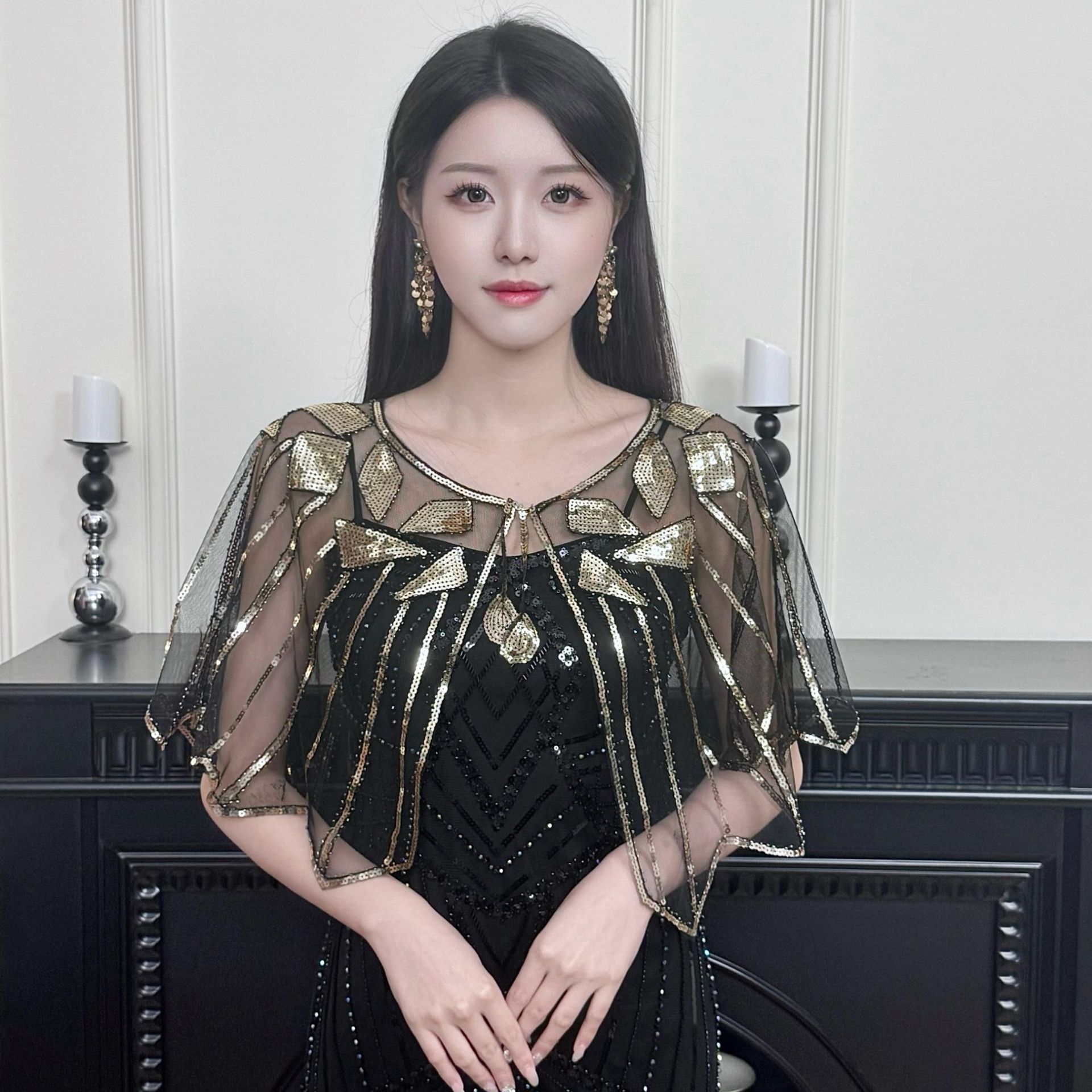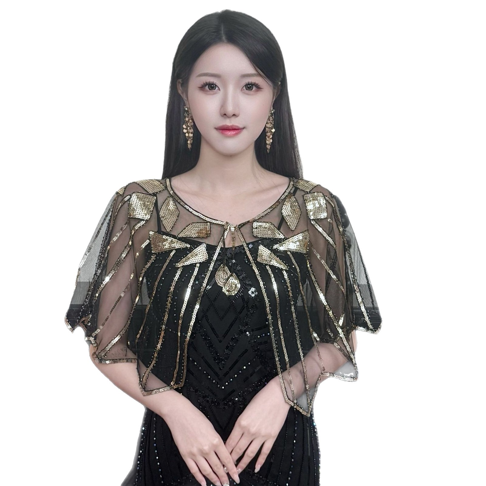 Женская шаль с пайетками Amazon, тонкое европейское и американское кружевное платье, короткий жилет из бисера для верхней одежды.