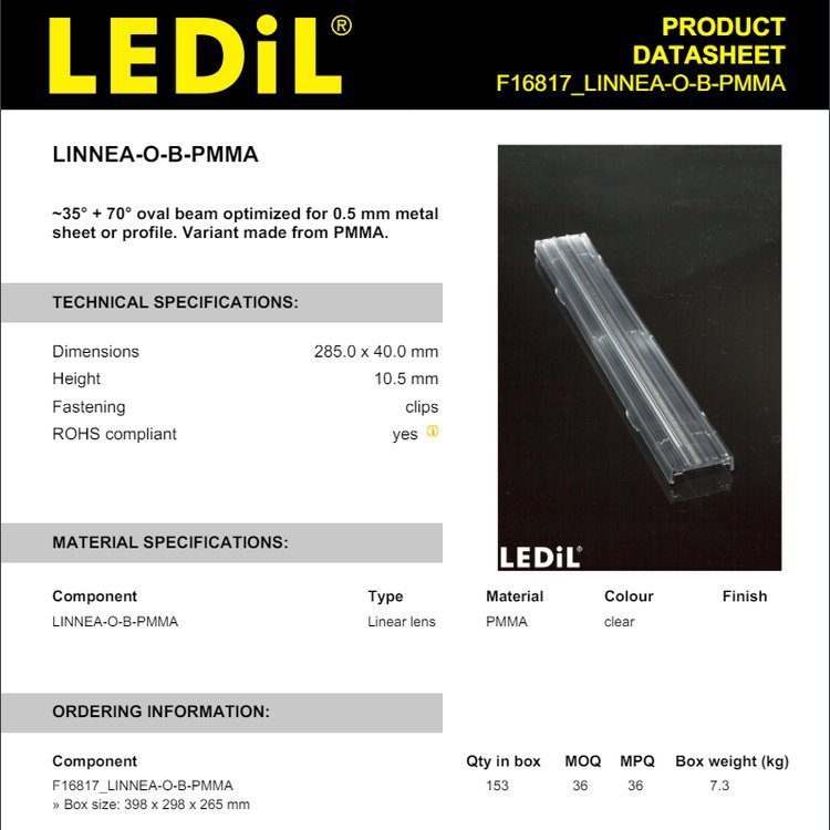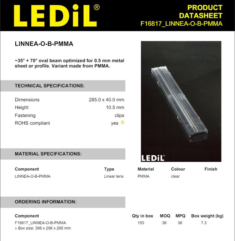 Линза LEDiL F16817_LINNEA-O-B-PMMA Линза для светодиодного освещения 285,0 x 40,0 м