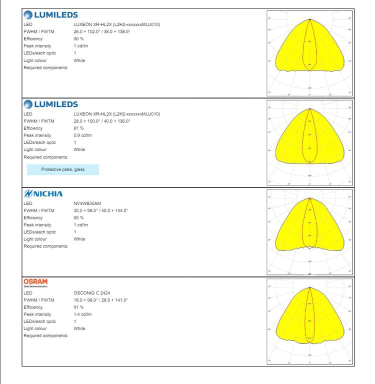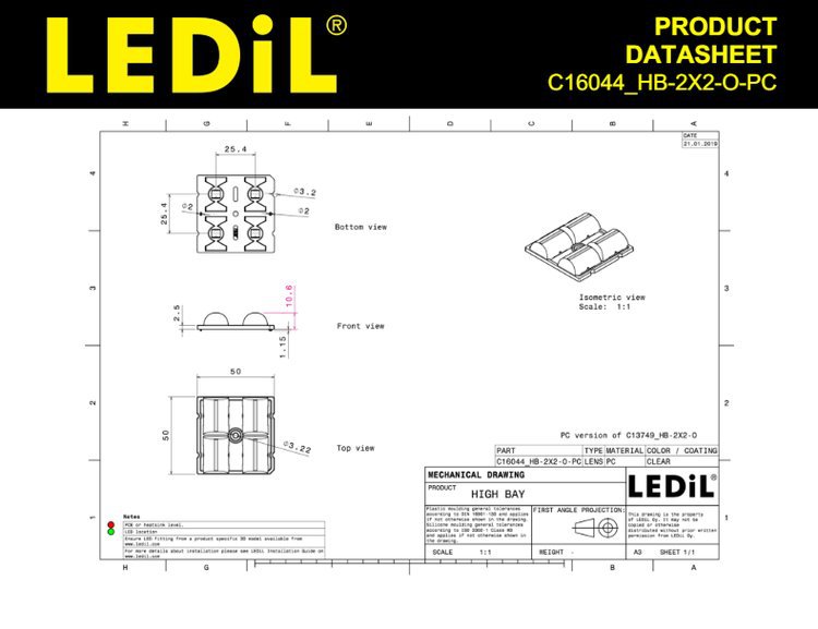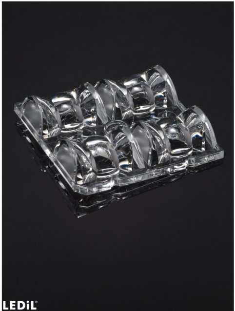 Оптическая линза LEDiL C16044HB2X2O с высокой светопропускной способностью, 50x50 мм, термостойкая, для точного распределения света.