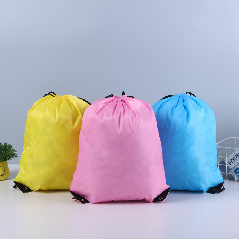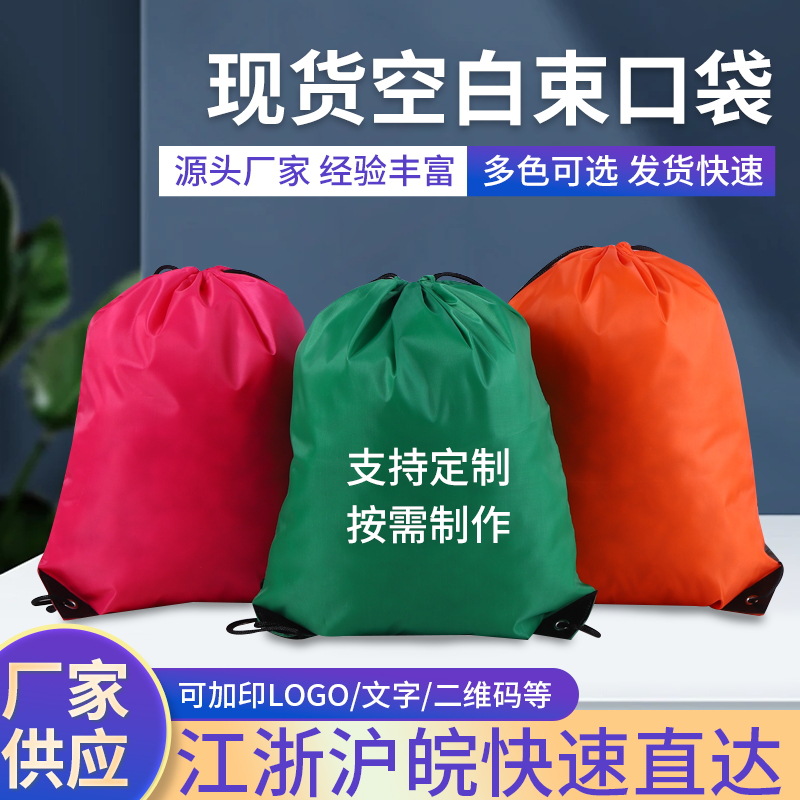 Полиэстеровая сумка 210D с молнией, отверстием для наушников, готовая к прямой доставке, печатная, однотонная, выбор цветов, рюкзак с завязками.