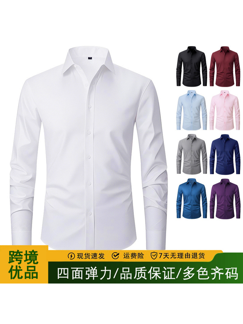 Мужская рубашка большого размера с четырехсторонним стрейчем, однотонная, без утюга, против морщин, деловая, хит продаж, европейские и американские рубашки Amazon