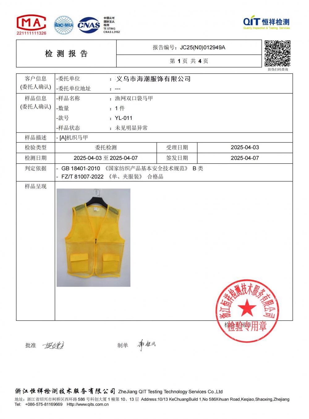 Есть ли отчет о проверке качества?: