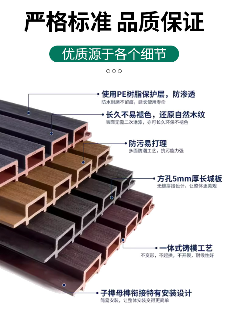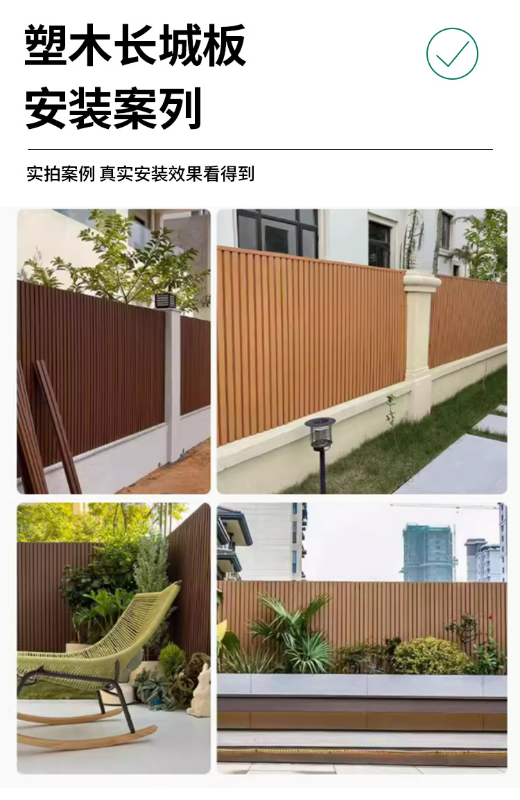 Пластиковая древесина Доска «Великая стена» Коэкструдированная пластиковая древесная доска для улицы Водонепроницаемая решетчатая доска Заборная стеновая доска WPC Влагостойкая пластиковая древесная доска