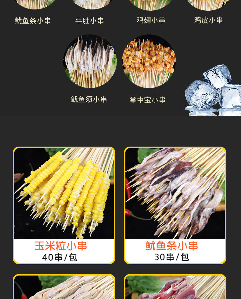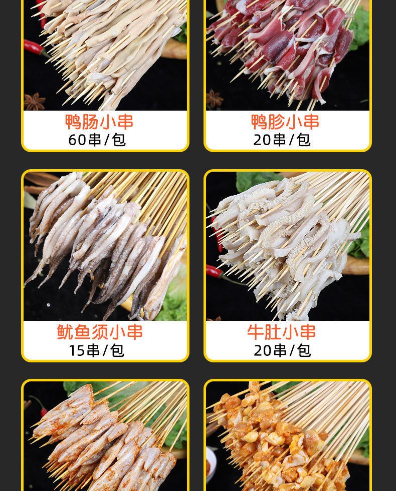 Оптовые ингредиенты для шашлыка: популярные маленькие шампуры из железной пластины, утиные кишки, семейные наборы для хот-пота, замороженные полуфабрикаты для жарки.