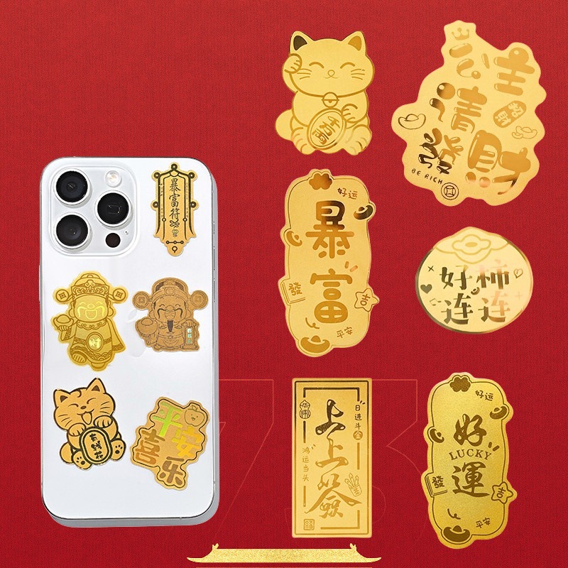 Наклейка на телефон из чистого золота 999 пробы «Год Змеи», золотая фольга «Принцесса», приносящая богатство и процветание, подарок на Новый год, золотые зерна, чистое золото