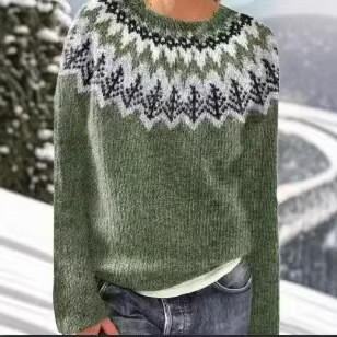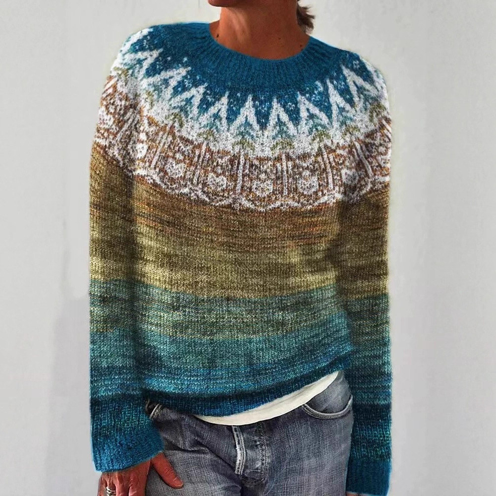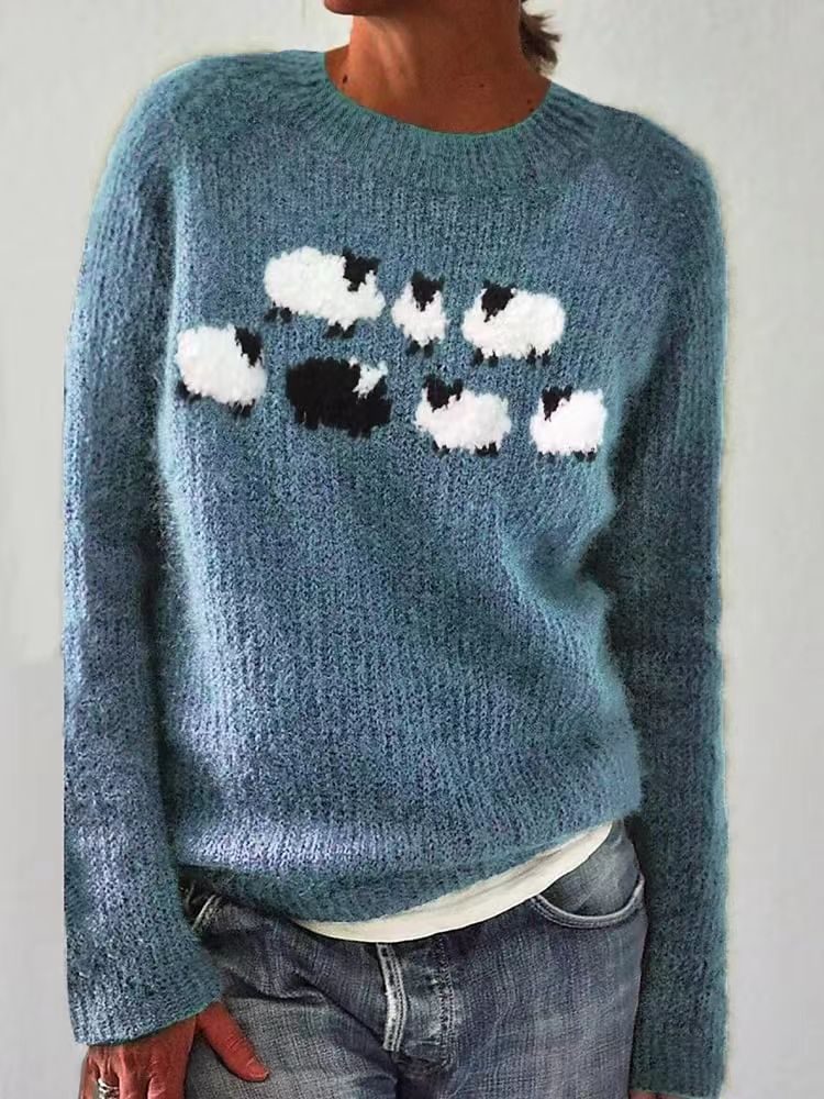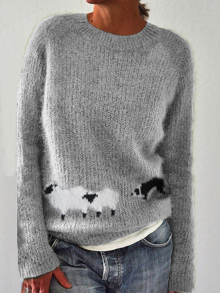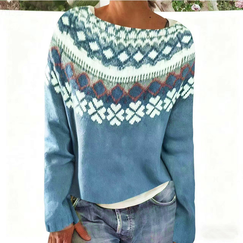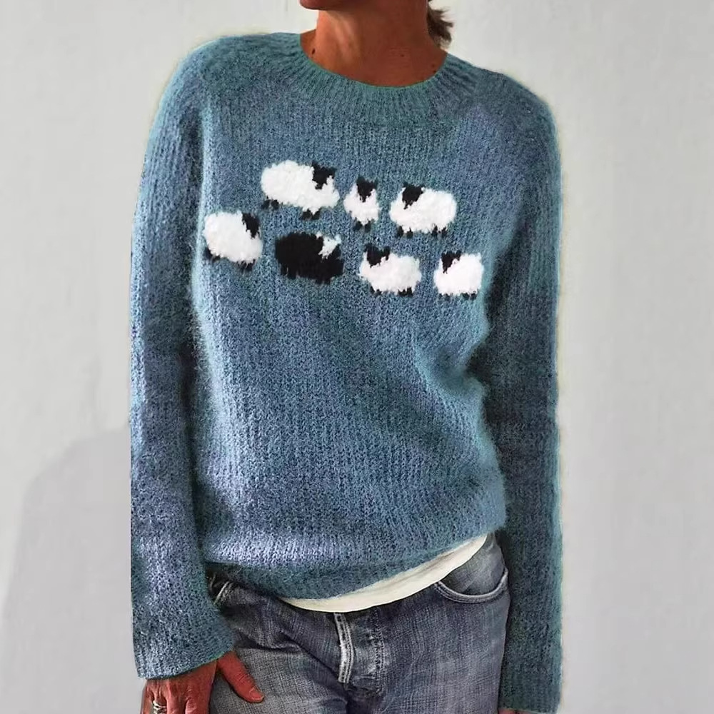 Amazon Европейский и американский новый трикотаж для женщин, популярный свободный модный пуловер с круглым вырезом в тон, трикотаж