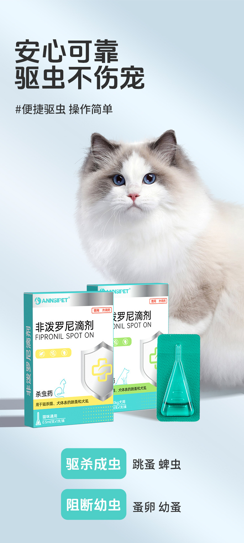 Капли для животных Anshi Fipronil, 1 тюбик/упаковка, препарат для наружной дезинфиляции от глистов для собак и кошек, лекарство от блох и клещей.