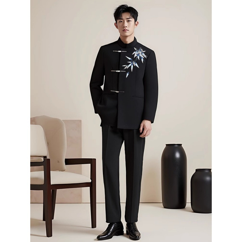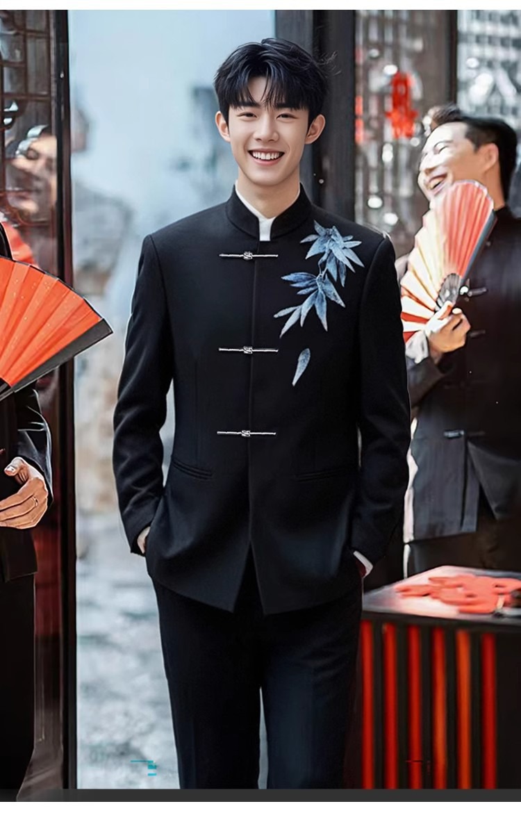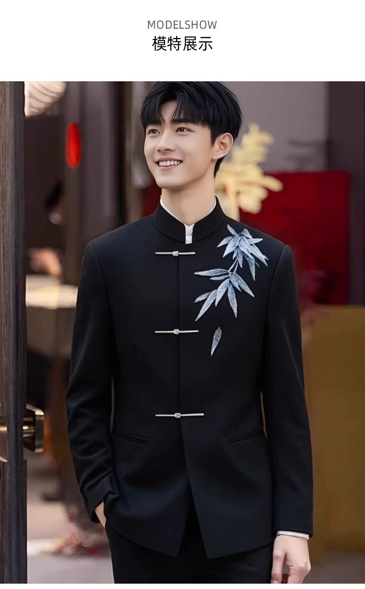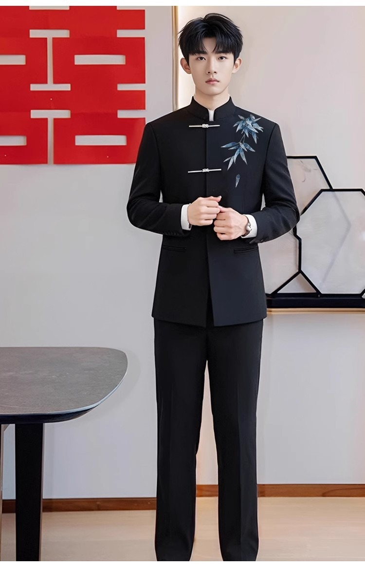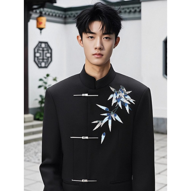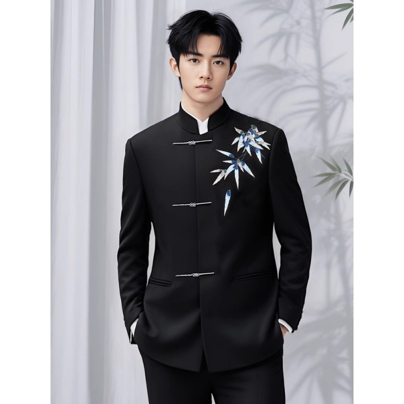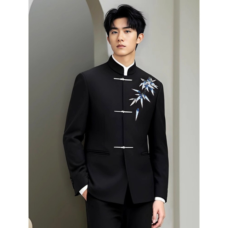 Новая мужская одежда в китайском стиле, свободный костюм из бамбука с подплечниками, мужской костюм, костюм с верхом и воротником-стойкой