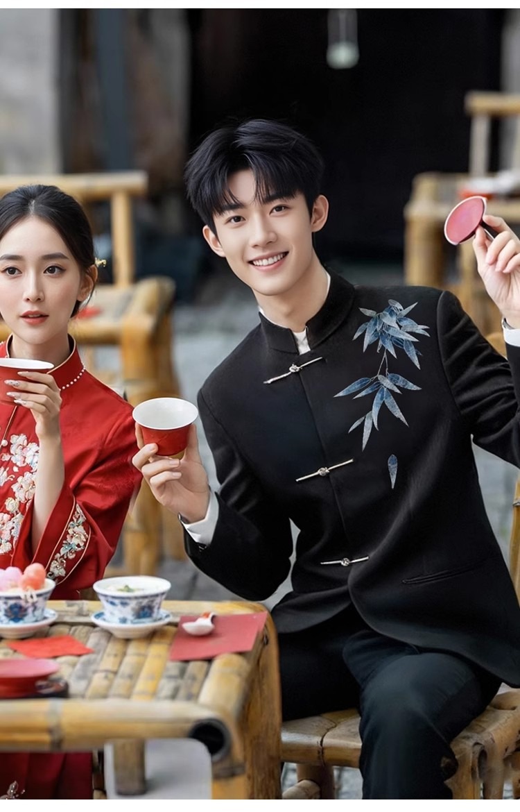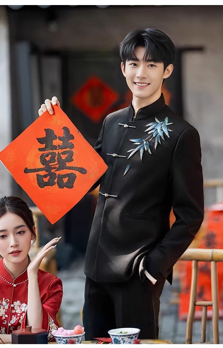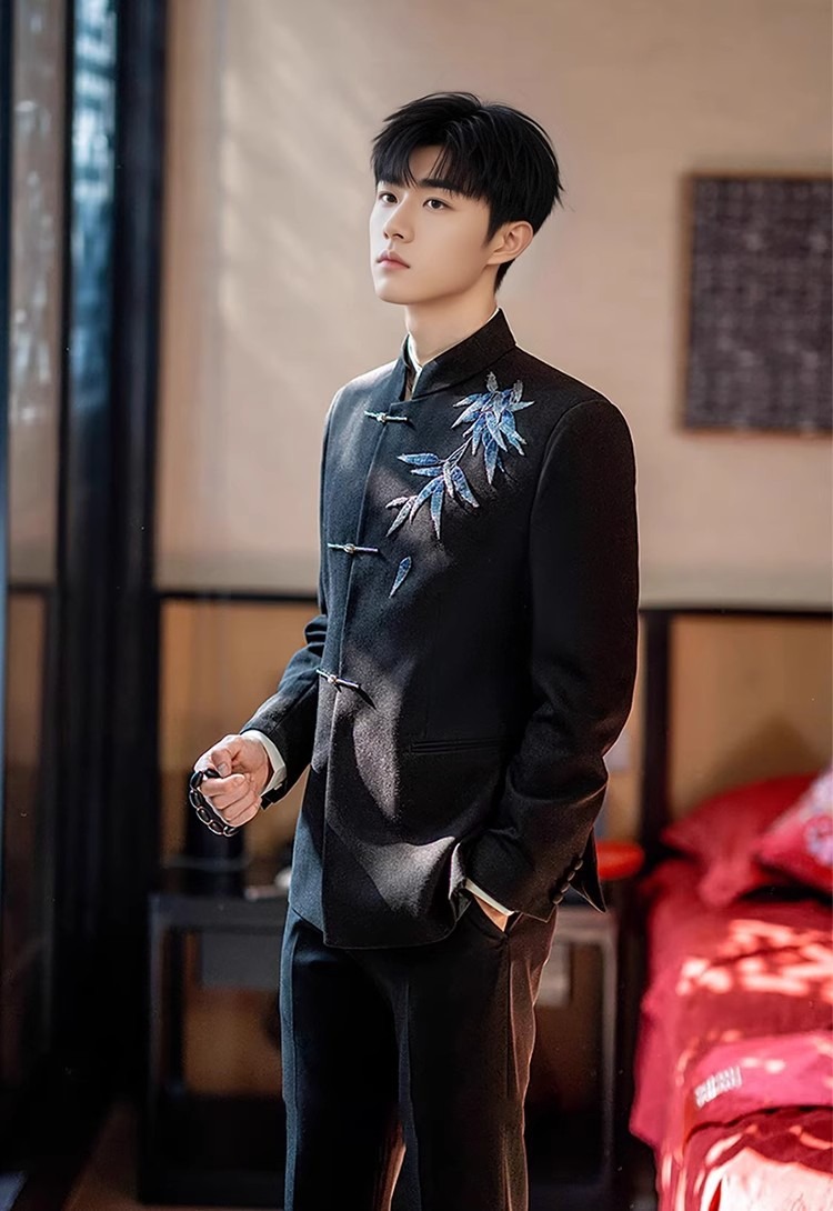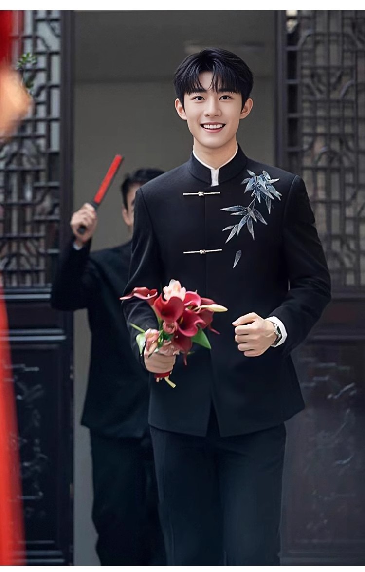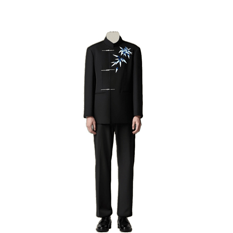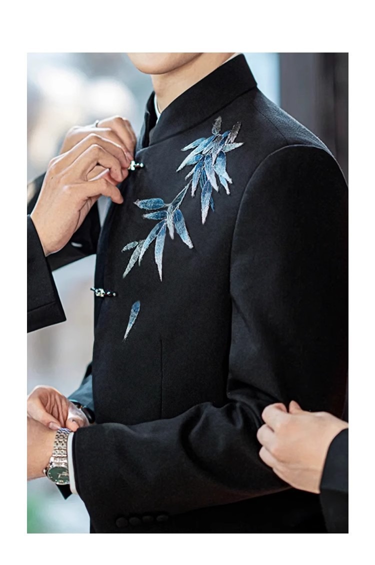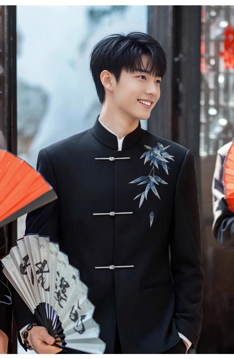 Новая мужская одежда в китайском стиле, свободный костюм из бамбука с подплечниками, мужской костюм, костюм с верхом и воротником-стойкой