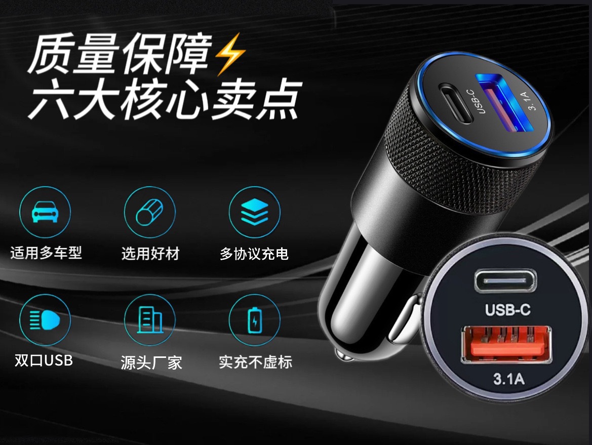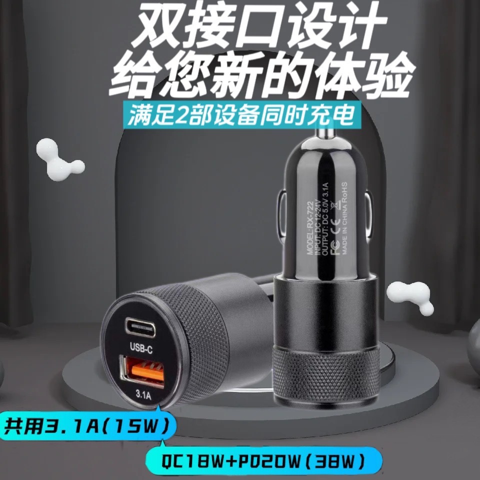 Оптовое зарядное устройство для автомобиля 38 Вт, металлическое, компактное, 15 Вт, USB+PD, быстрая зарядка