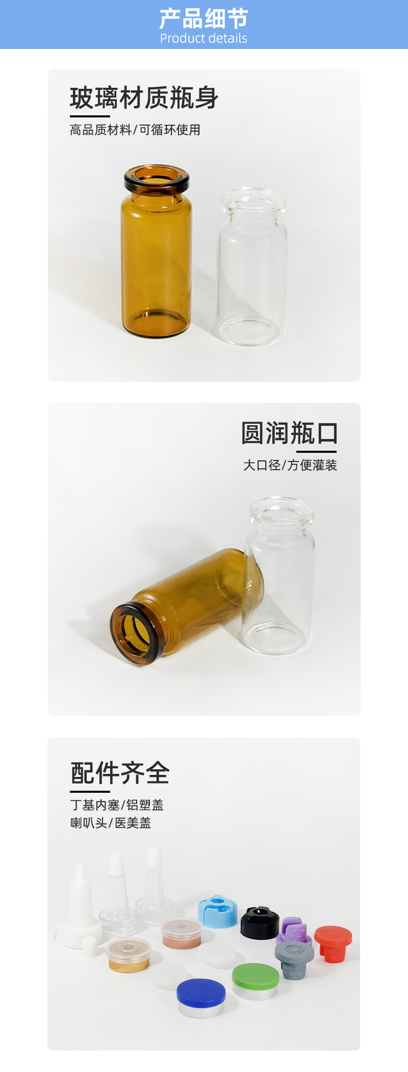 5ml(22*33); 3ml(16*35); 15ml(22*62mm); 20ml(24*65mm); 10ml(22*50mm); 7ml(22*40mm); 8ml(22*45mm); 5ml(16*45); 4ml(22*27); 6ml(22*35); 2ml(16*31); 30ml(27*79mm)