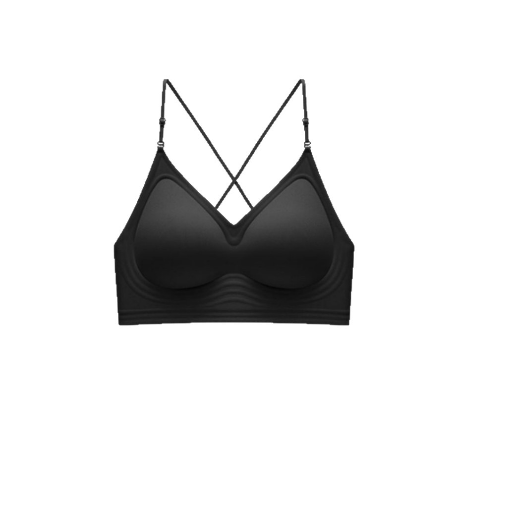 Черный бюстгальтер-топ с лямкой через шею для женщин с маленькой грудью, с эффектом пуш-ап, с перекрестными лямками на спине, без спинки, невидимый и бесшовный.