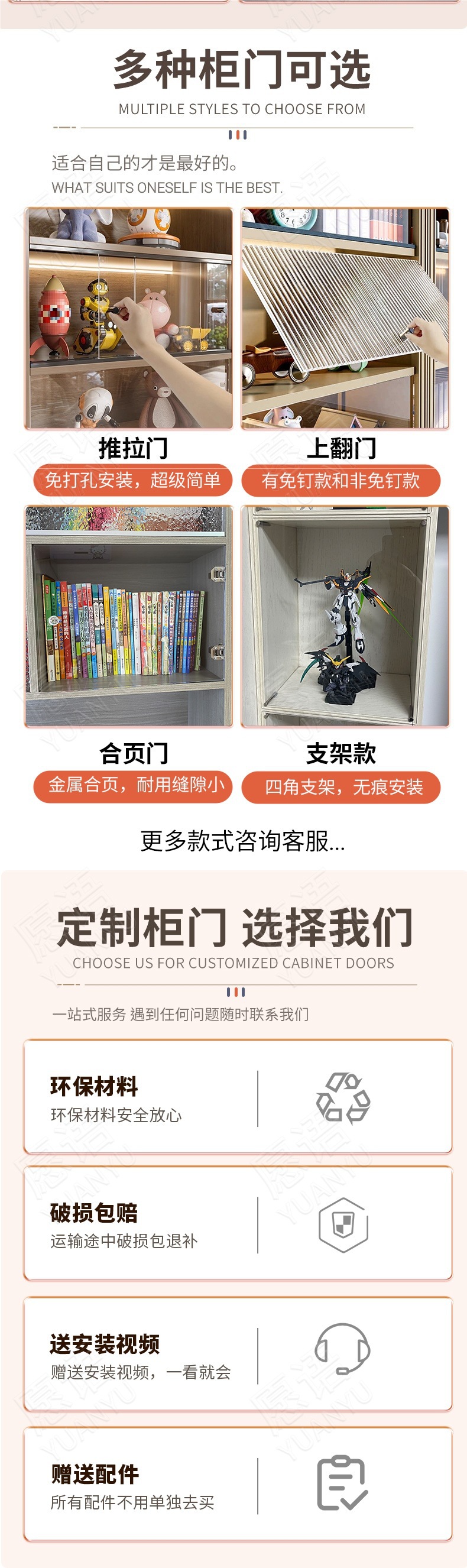 Акриловая дверь шкафа, самоклеящаяся дверь шкафа, стеклянная закаленная пылезащитная дверная панель, прозрачная откидная книга для шкафа, маленькая
