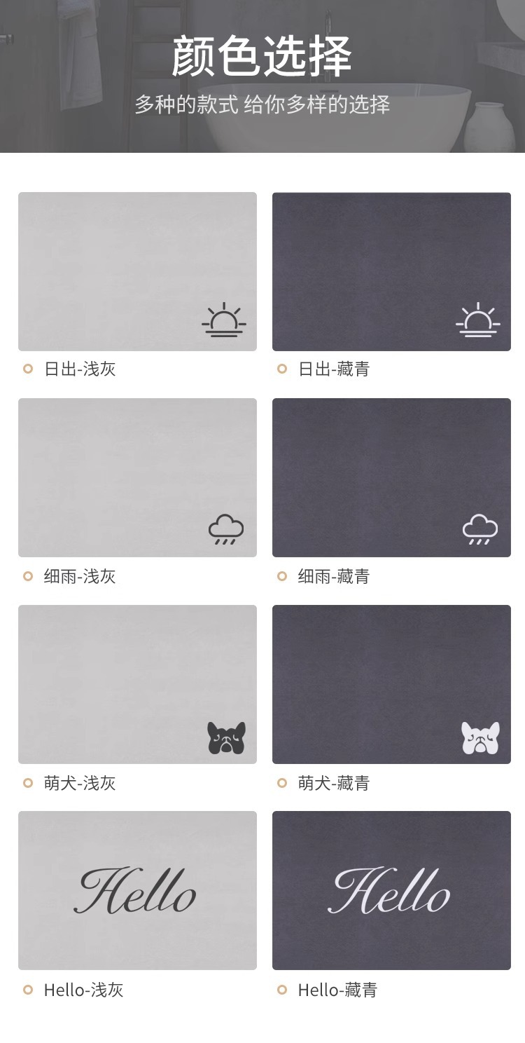Восход солнца – светло-серый; Восход-Темно-синий; Время купания – светло-серый; Ванна Time-Темно-синий; Добро пожаловать домой - светло-серый; Добро пожаловать домой-Тяньцинь; Милая собака-светло-серая; Милая собачка-Темно-синий; Сплошной цвет - светло-серый.; Сплошной цвет-темно-синий; привет-светло-серый; привет-Темно-синий; Дрессируйте - светло-серый; Дриззл-Темно-синий; Красивая семья-светло-серый; Красивая семья-тибетский синий; Чудесные моменты-светло-серый; Чудесные моменты-темно-синий; Момент сердцебиения-светло-серый; Момент сердцебиения-Темно-синий